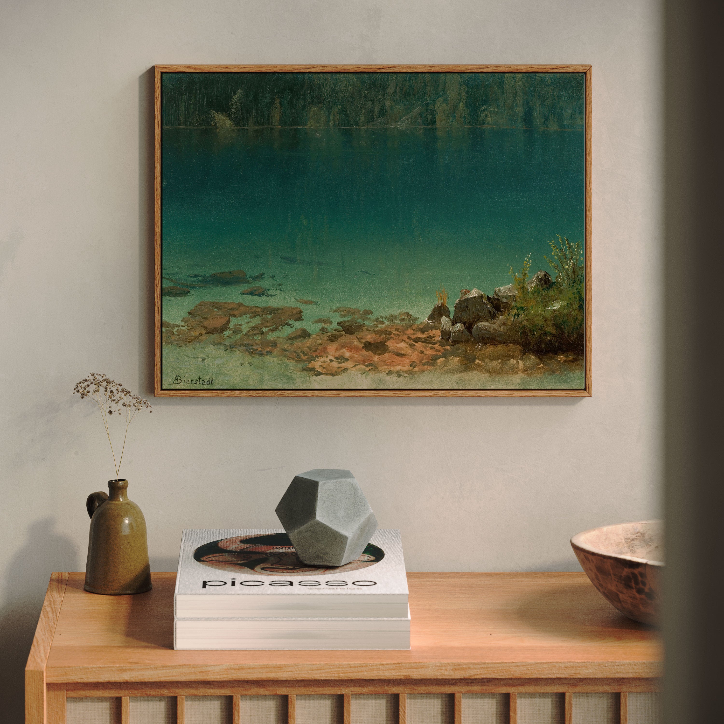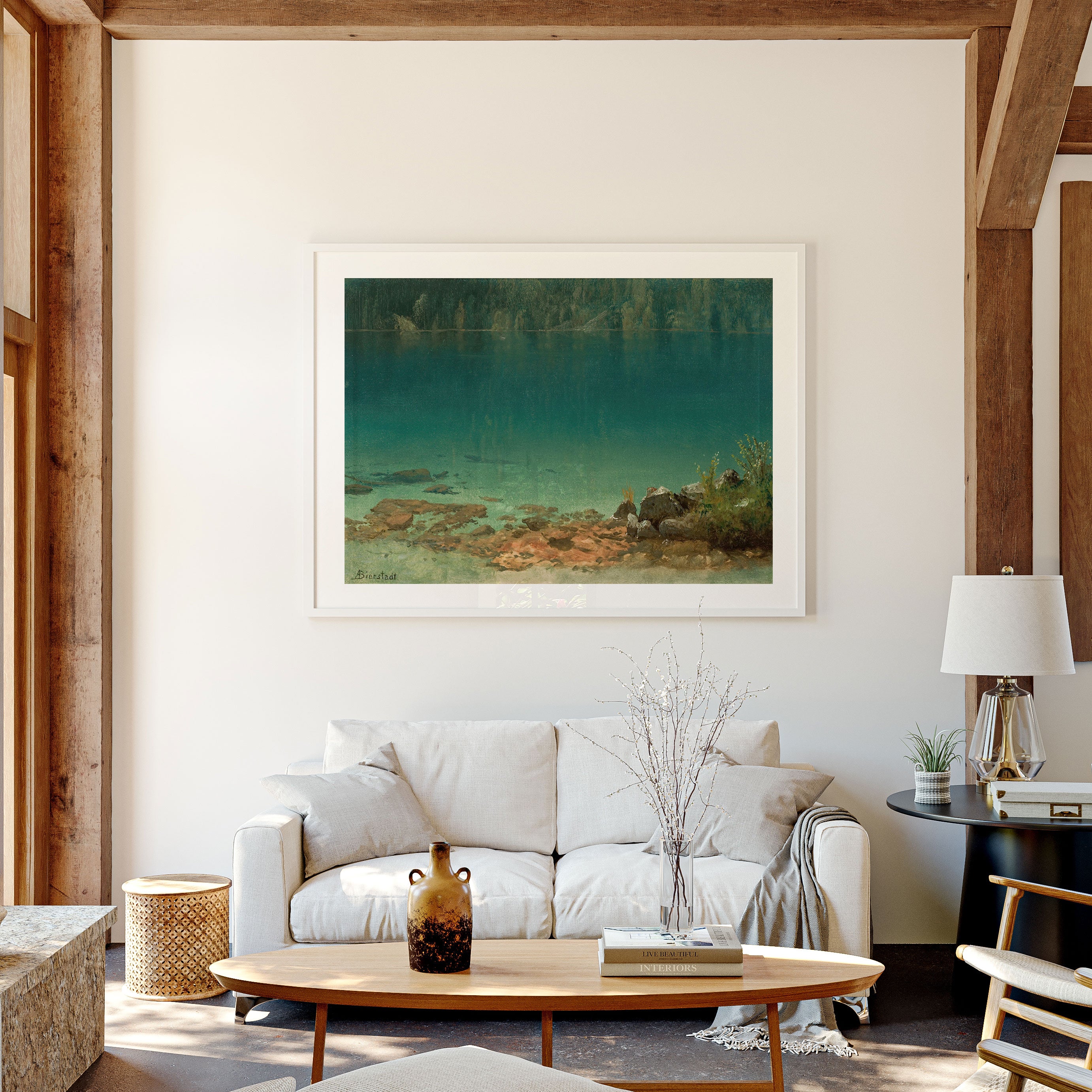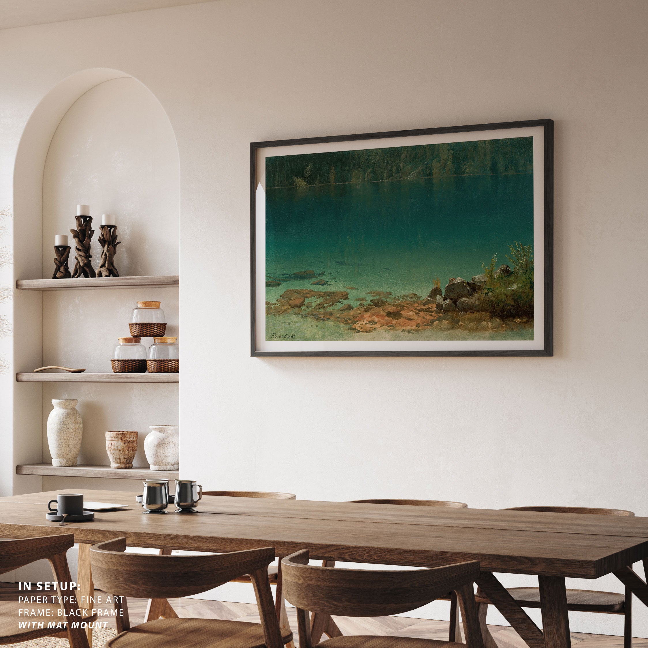 Bring elegance and harmony into your space with this beautiful artwork, Lake Scene, from our Art Prints Collection. Inspired by the majestic vision of Albert Bierstadt, each piece reveals the breathtaking grandeur of unspoiled landscapes through radiant light, sweeping horizons, and meticulously rendered natural detail. Whether capturing misty mountain passes, serene lakes glowing with reflected sky, or forests illuminated beneath dramatic clouds, these paintings fill any interior with a sense of tranquility, wonder, and timeless refinement perfect for creating an inviting, artful atmosphere in your home.