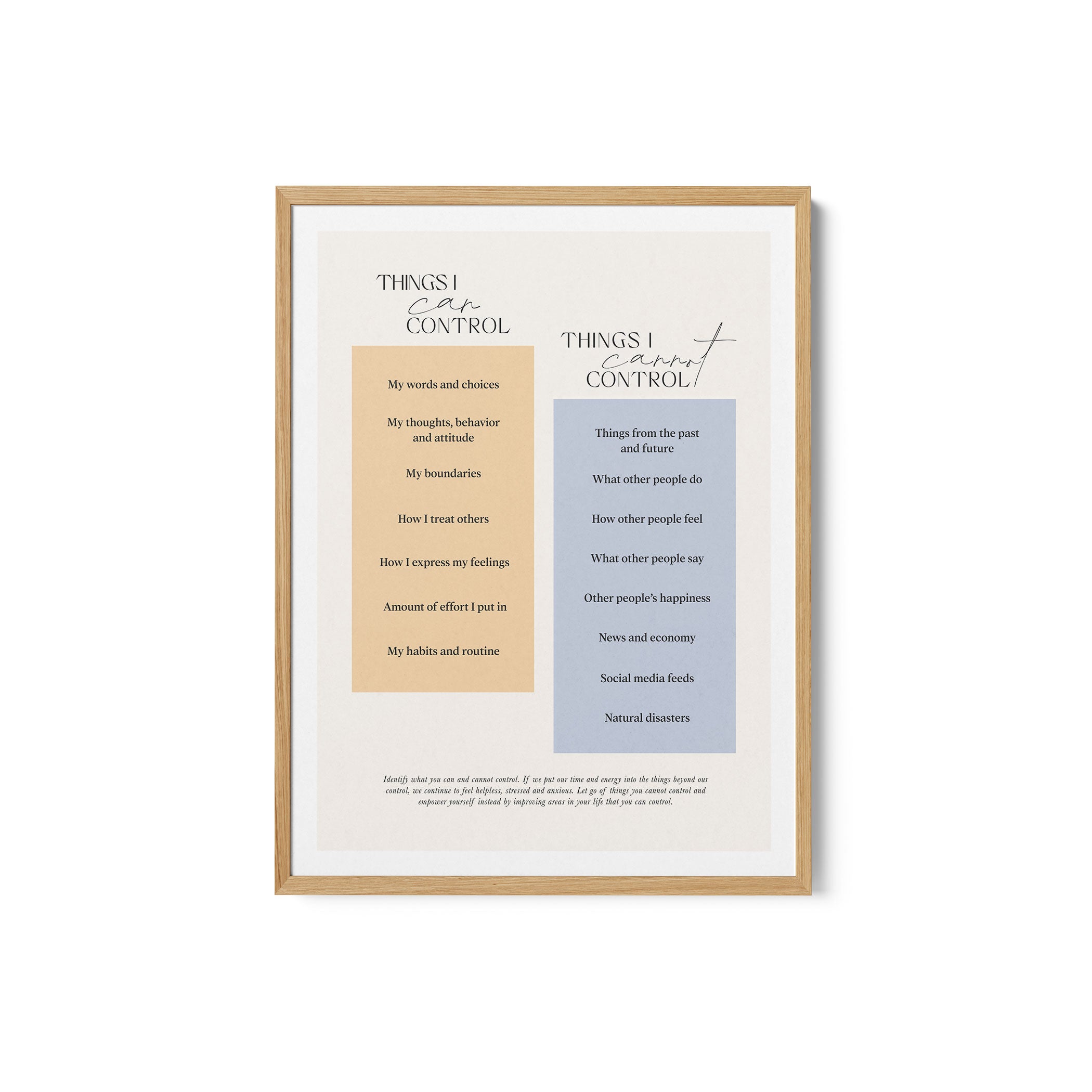 Transport your space to a simpler, quieter era with this quote art print. Control from our Quotes and Text Collection, reimagined as a poetic visual expression. Picture bold, elegant lettering framed against a soft, minimal backdrop, warm tones blending with faded hues. The message feels peaceful and timeless, as if you’re looking through a window to another place and day.