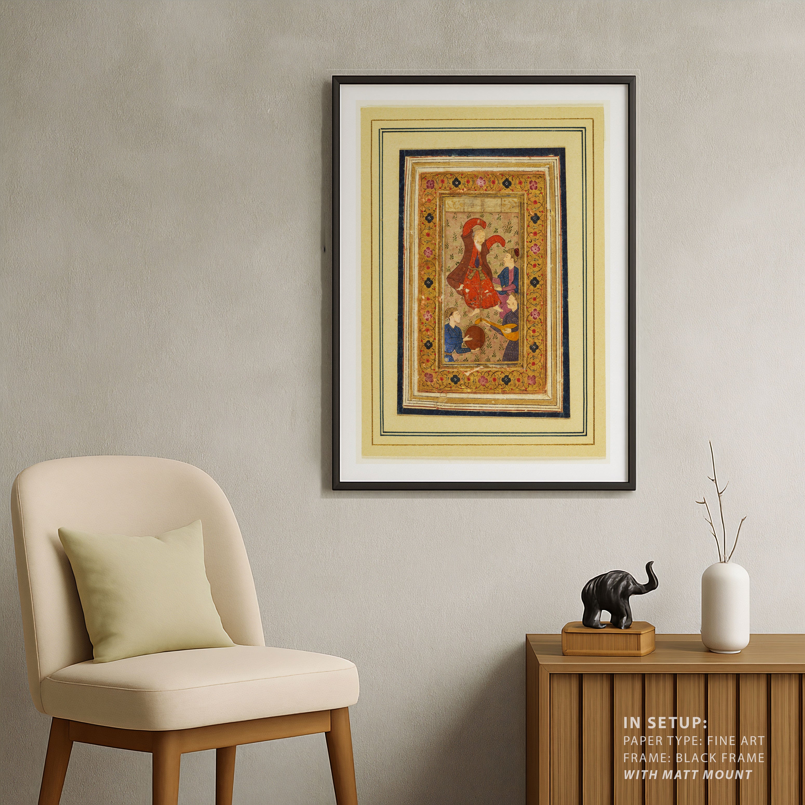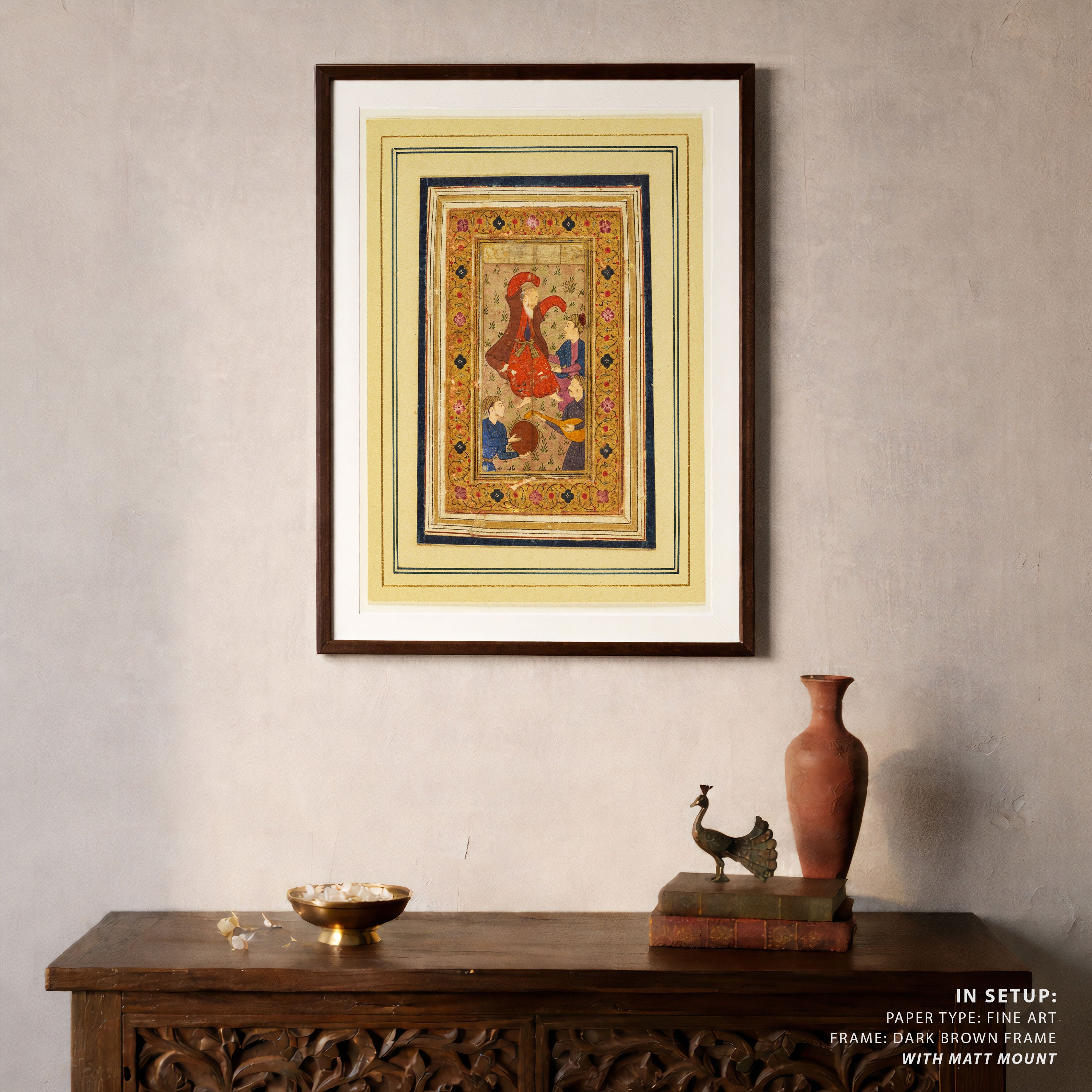 Bring elegance and cultural harmony into your space with this beautiful artwork, Dancing Dervish with Musicians, from our Classical Indian Art Collection. This timeless artwork features expressive figures, symbolic motifs, intricate detailing, and harmonious compositions inspired by India’s rich artistic traditions. Perfect for traditional, heritage, eclectic, and contemporary interiors, Indian folk and classical wall art adds depth, warmth, and a sense of history and storytelling to every interior.