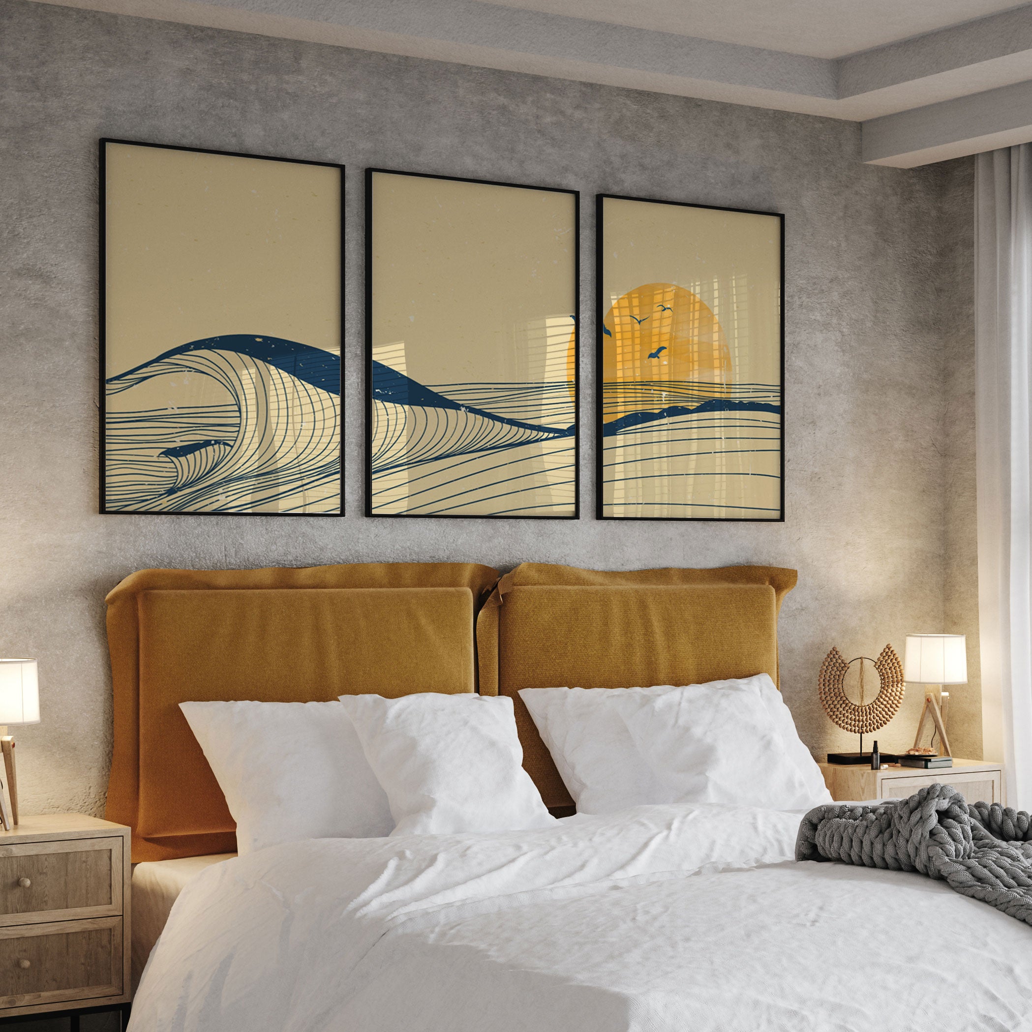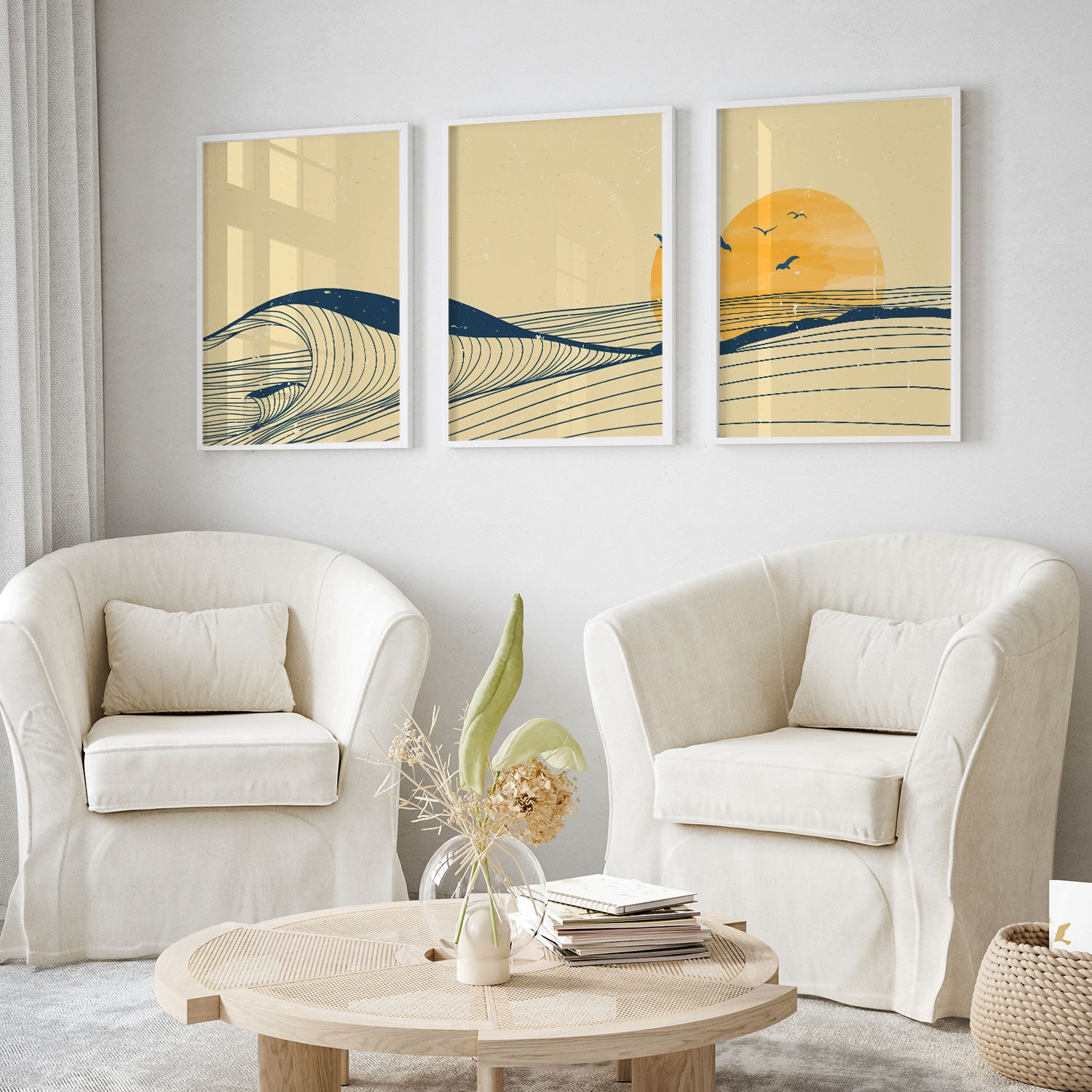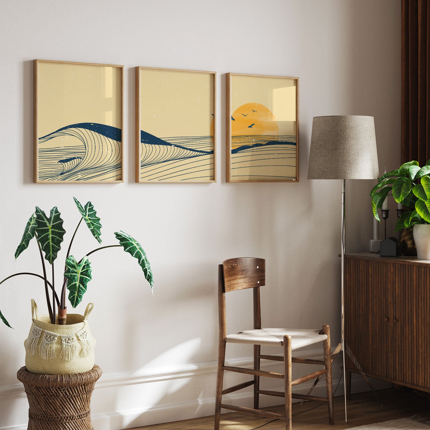 Ocean Wave Landscape - from our Set of 3 Art Prints Collection is printed on premium-quality canvas or fine art paper with a smooth matte finish and vibrant, long-lasting colors that bring each detail to life. These Set of 3 Wall Art Prints are made with exceptional color clarity and precision, following the same high standards used by professional galleries and art studios. Perfect for art lovers or anyone looking to add a touch of modern botanical elegance to their space, these prints look stunning in any bedroom, living room, bathroom, balcony, or office. Get inspired by our designer-curated art sets, and complete your space with handmade, custom frames crafted in-house for a beautifully finished look.