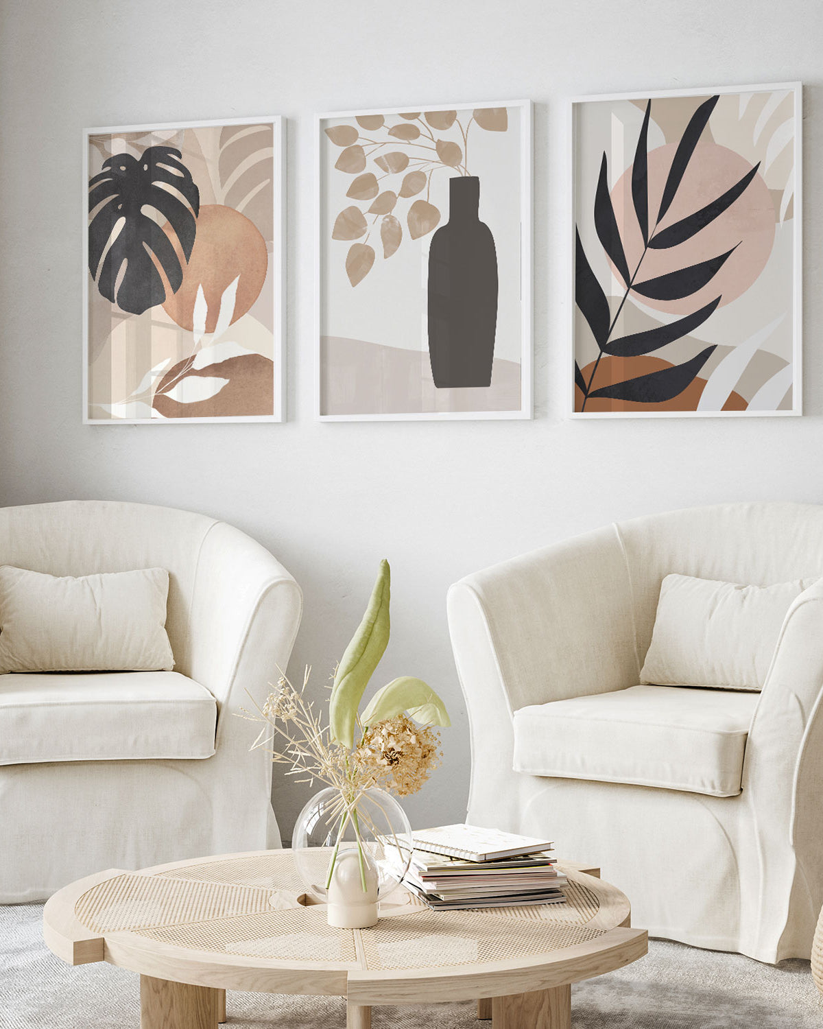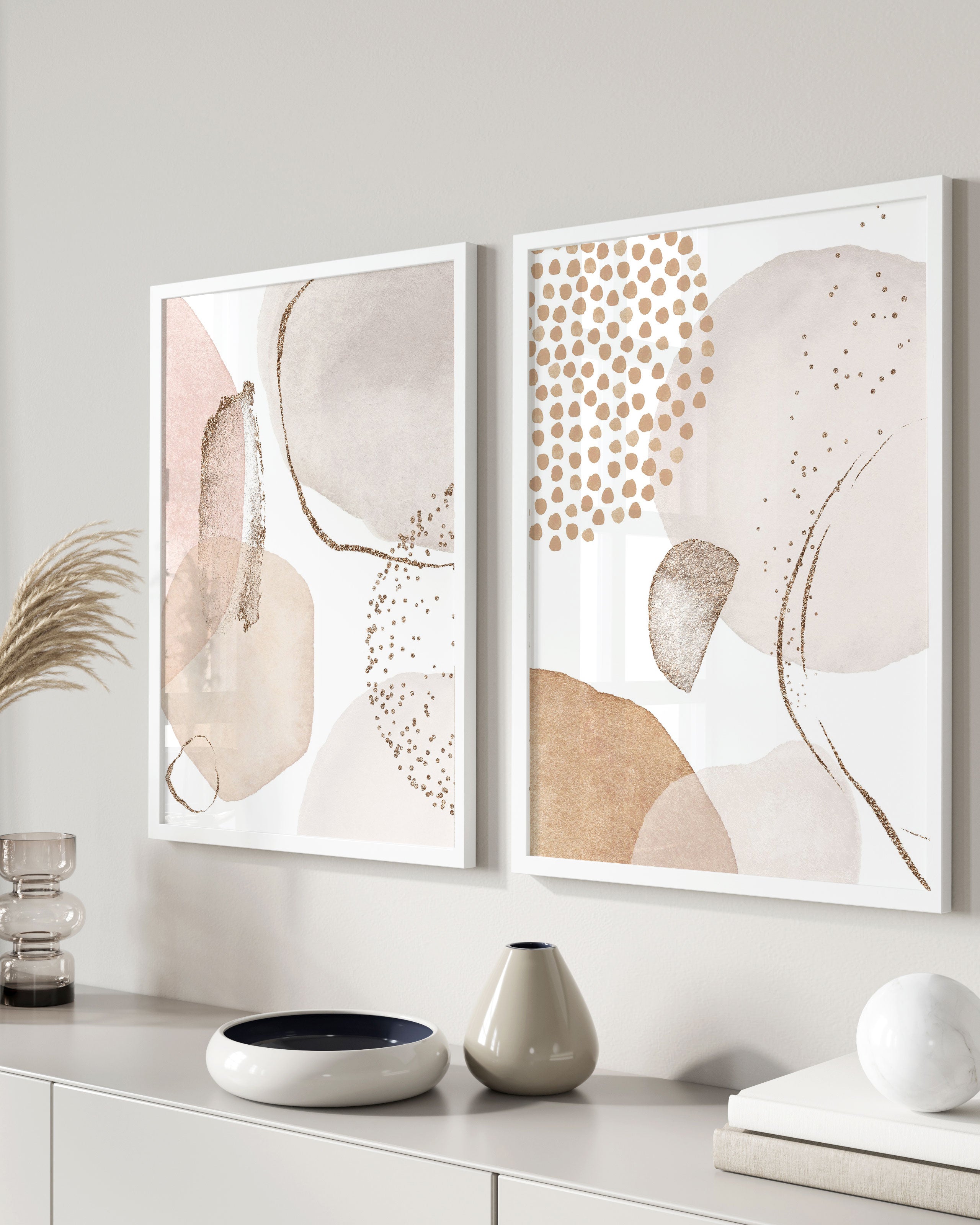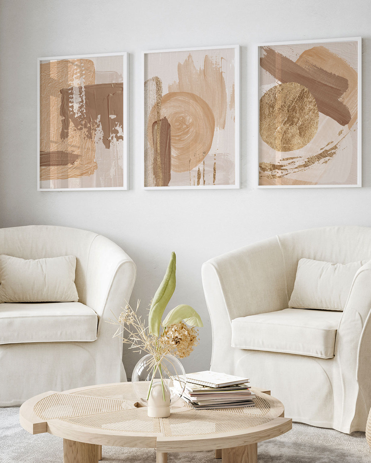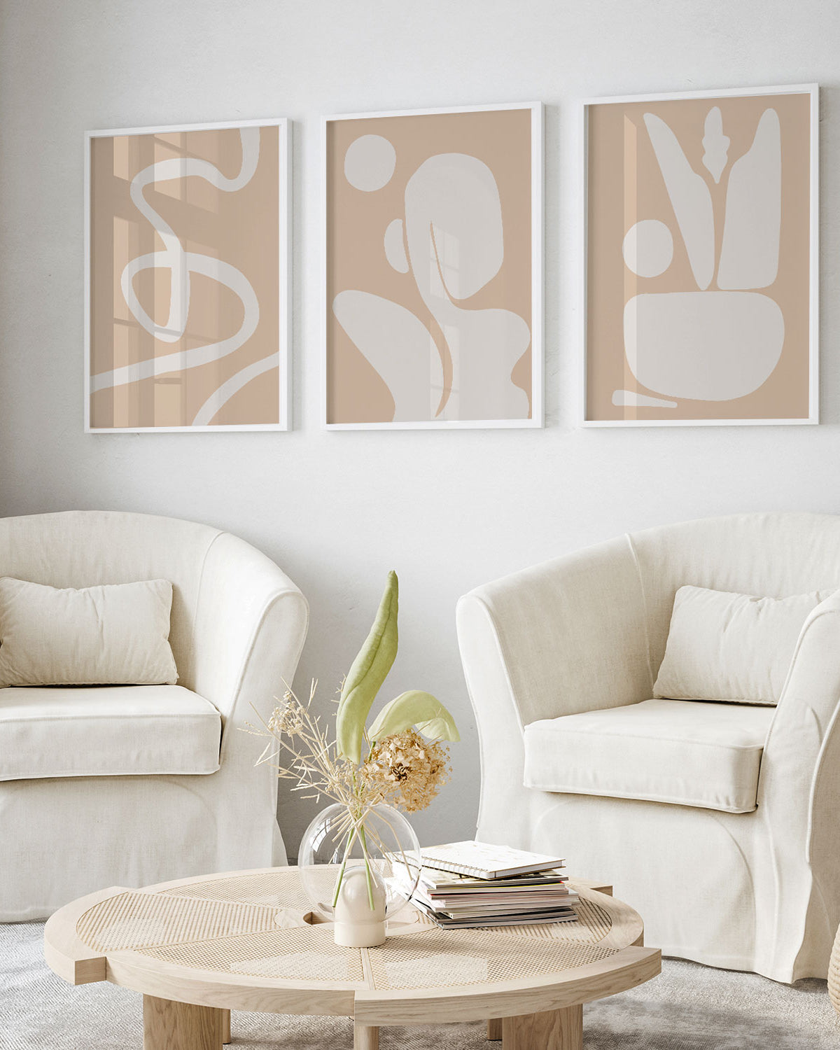 Choose framed beige art prints for a clean, gallery-style look or unframed prints for flexible, minimalist styling.