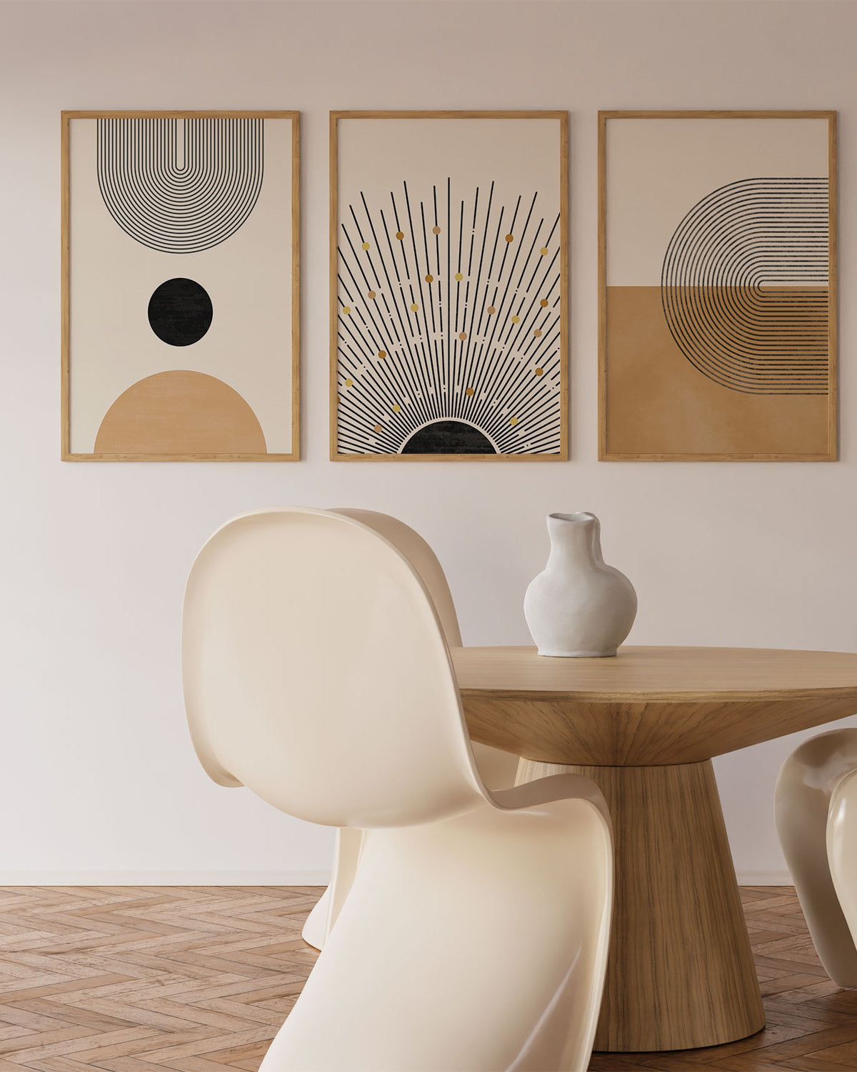 Beige plays a central role in Scandinavian and Nordic interior design, where simplicity, light, and natural elements are key. Beige art prints complement light walls, wooden furniture, linen textures, and muted colour palettes commonly found in these interiors.