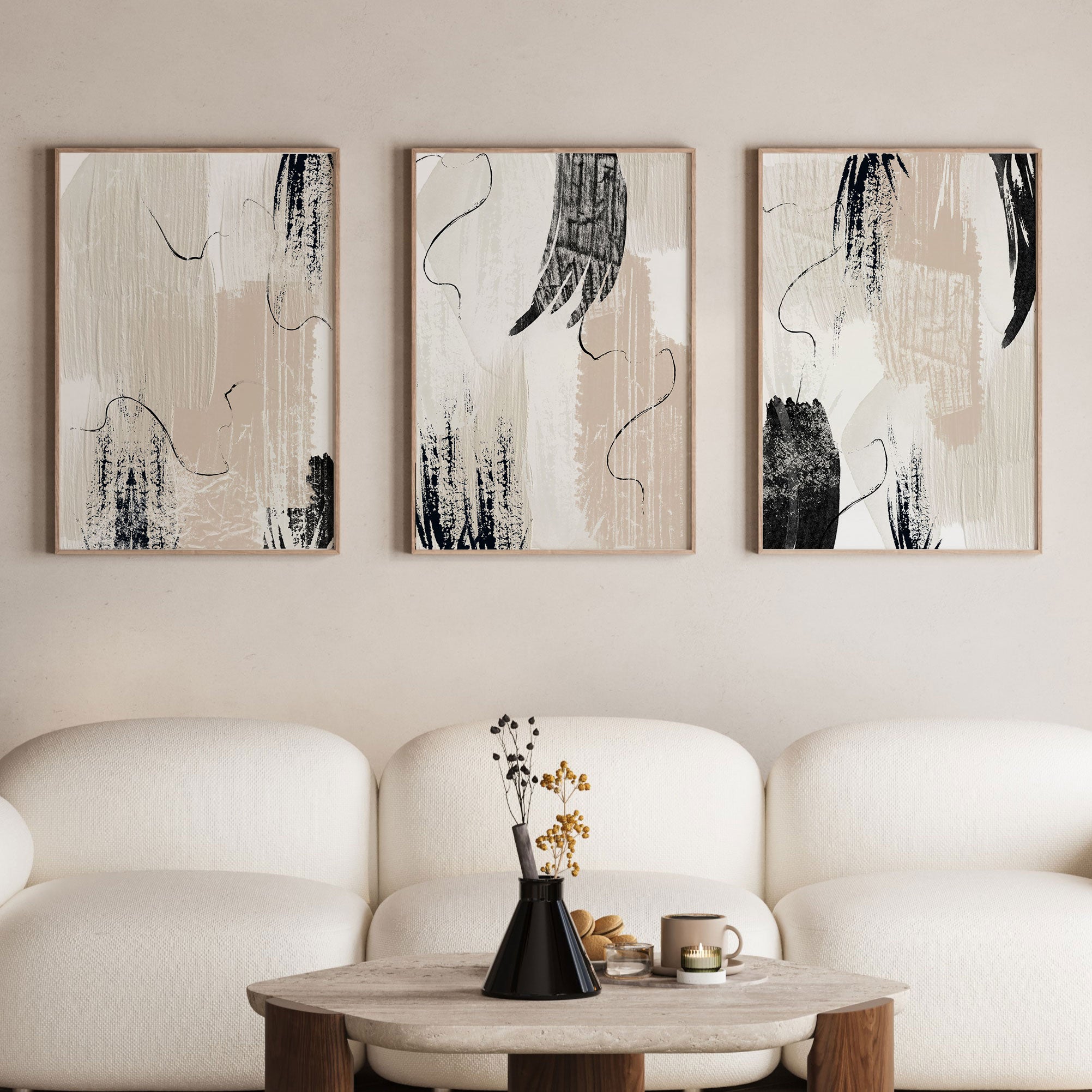Choose framed beige art prints for a clean, gallery-style look or unframed prints for flexible, minimalist styling.
