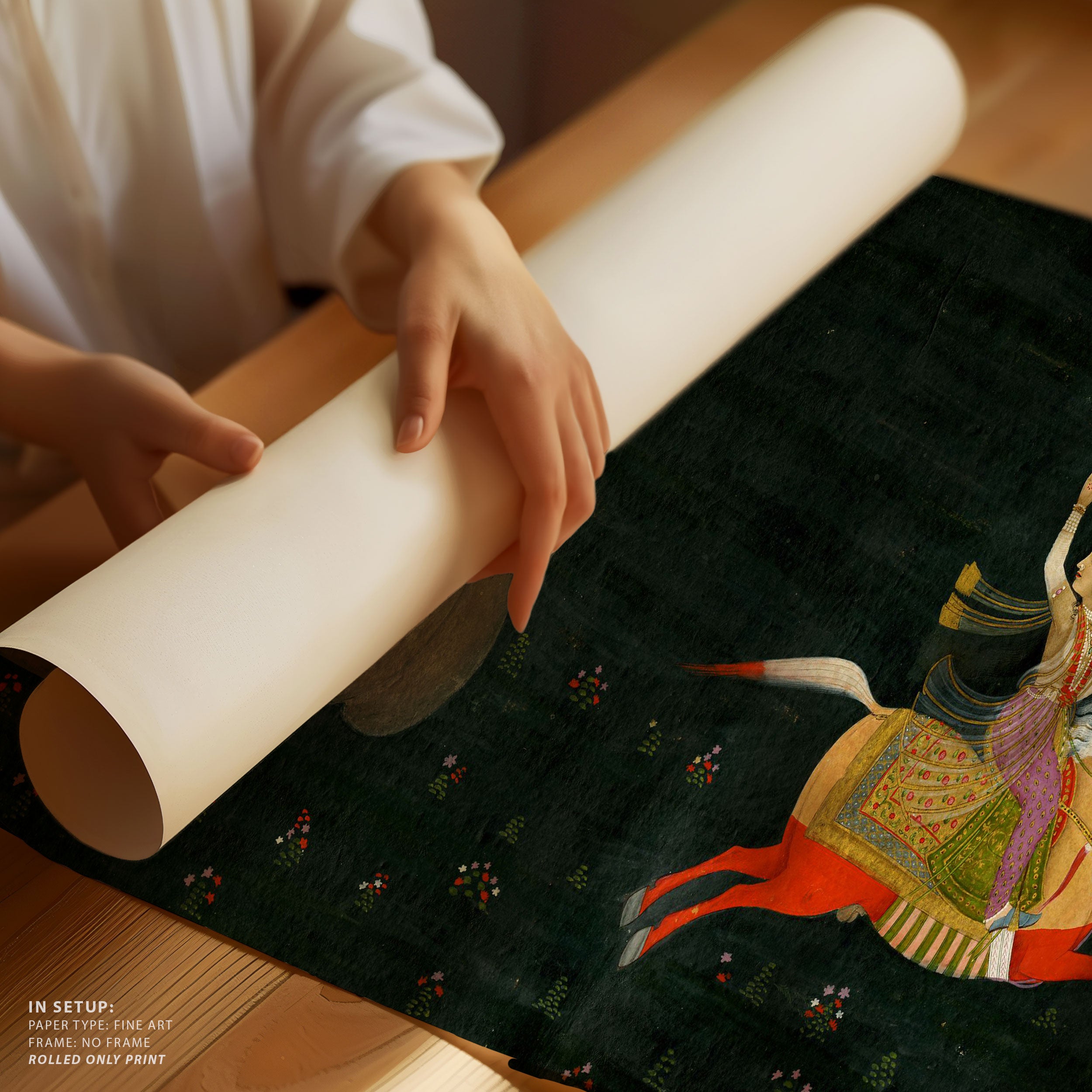 Through meticulous brushwork, balanced composition, and a sophisticated interplay of color and form, Indian Tales artworks convey emotion, rhythm, and layered narratives inspired by mythology, folklore, and everyday life. Each piece invites mindful contemplation, encouraging viewers to pause and engage with subtle expressions, gentle movement, and harmonious settings that celebrate presence, reflection, and the enduring poetry of India’s artistic legacy.
