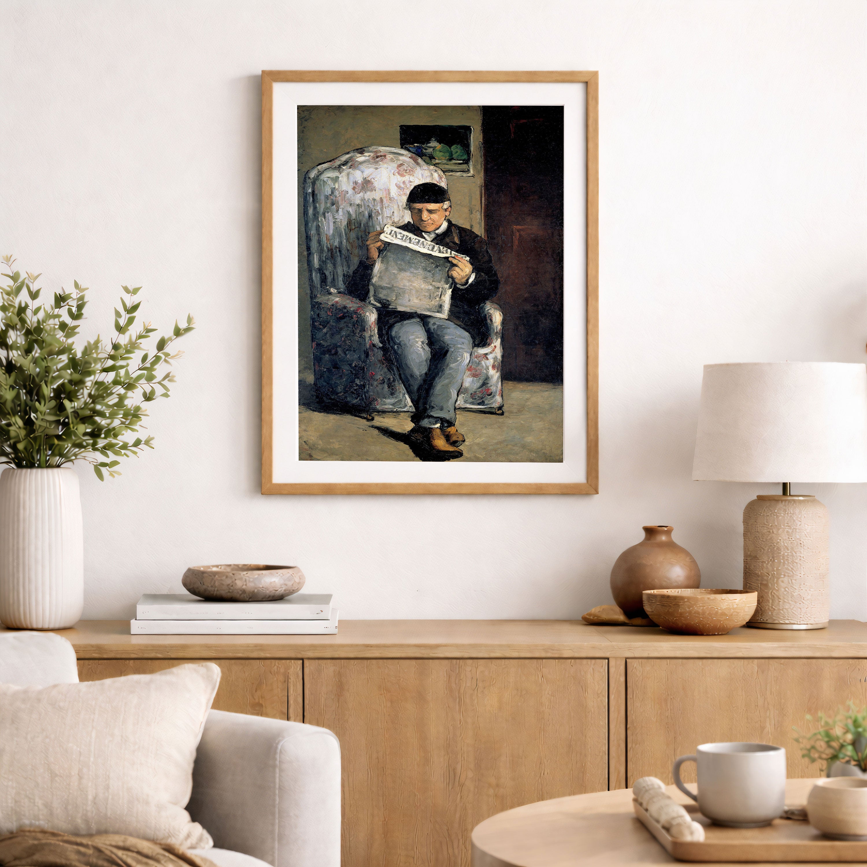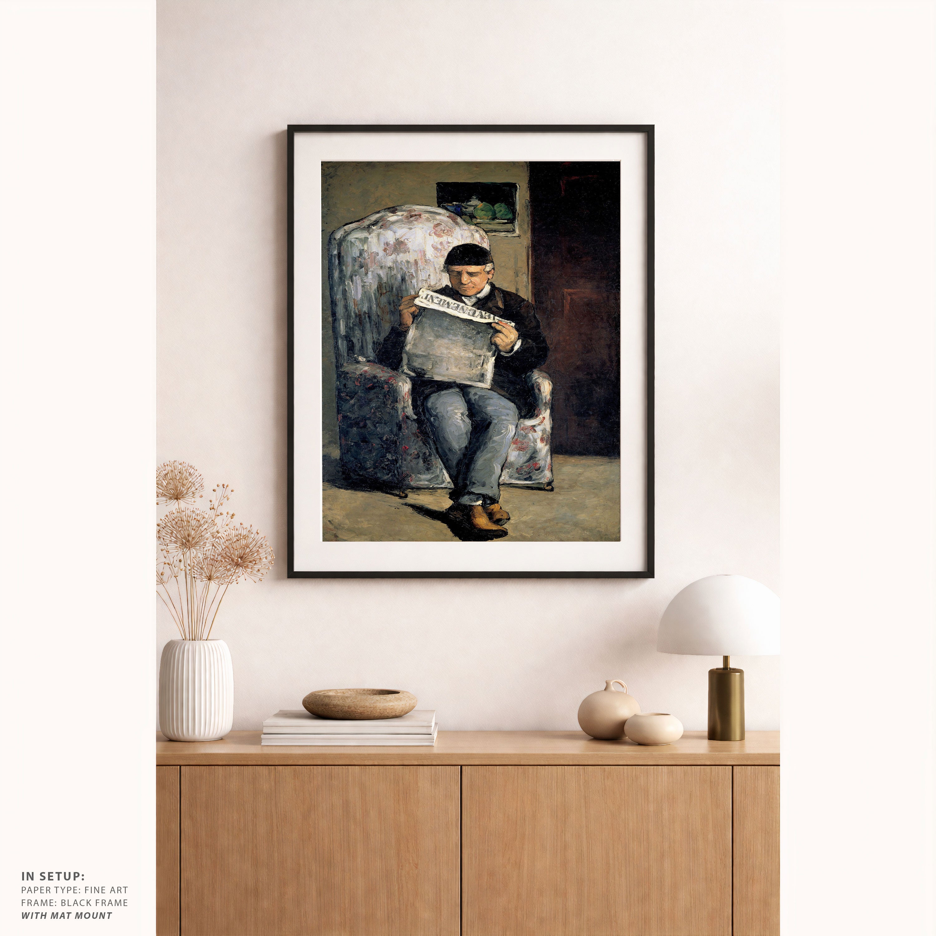 Bring elegance and harmony into your space with this beautiful artwork, The Artist’s Father Reading L’Événement, from our Paul Cézanne Painting Prints Collection. This piece reveals a quiet yet compelling interplay of rich tones, structured forms, and expressive brushwork that captures both warmth and depth. Subtle painting details, classic fine-art textures, and thoughtfully layered color transitions enhance its enduring charm. Its balanced composition and contemplative atmosphere introduce a refined and artistic presence to any interior, enriching your space with the timeless poetry and distinctive vision of this iconic Cézanne-inspired artistic style.