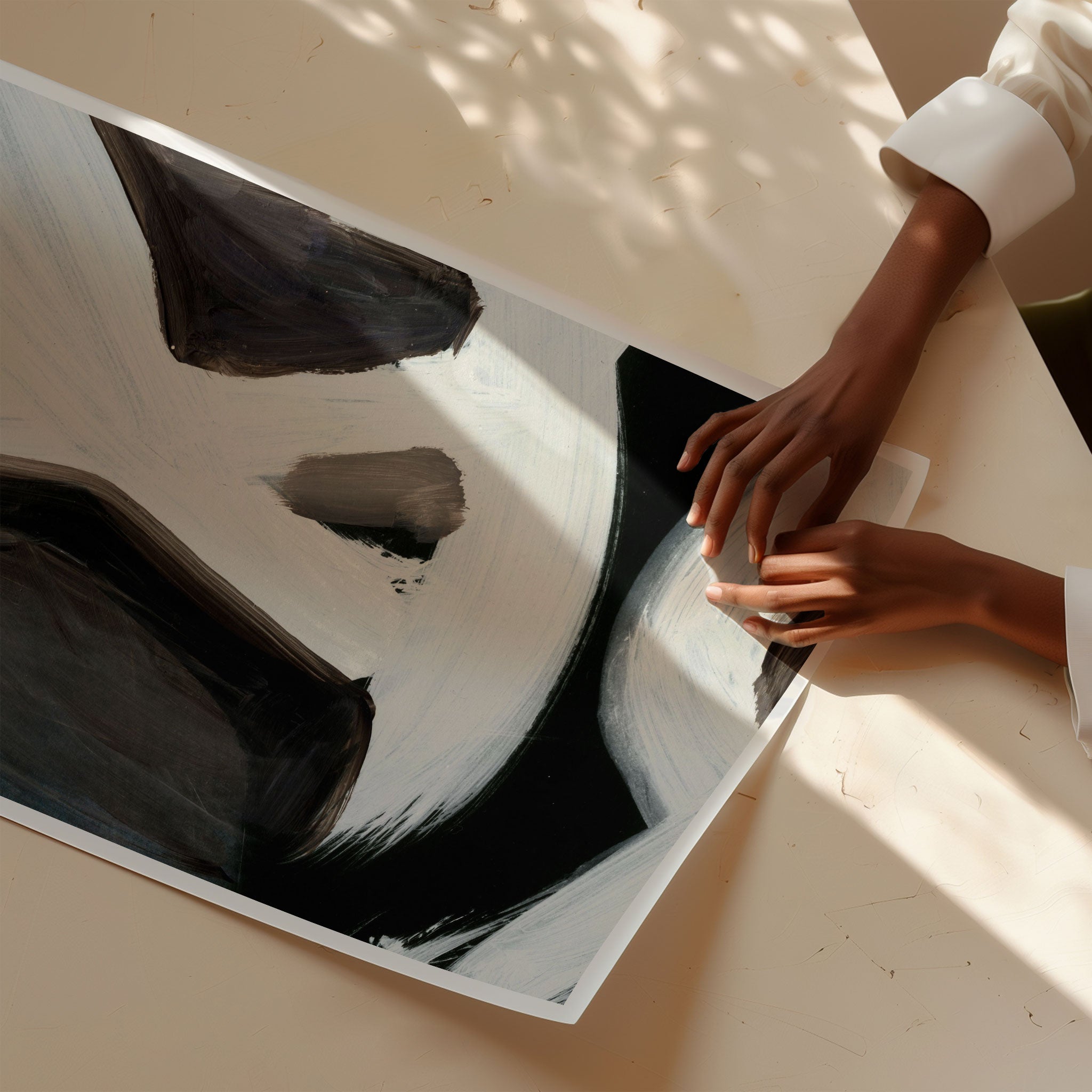 Black art prints act as strong statement pieces while remaining effortlessly elegant.