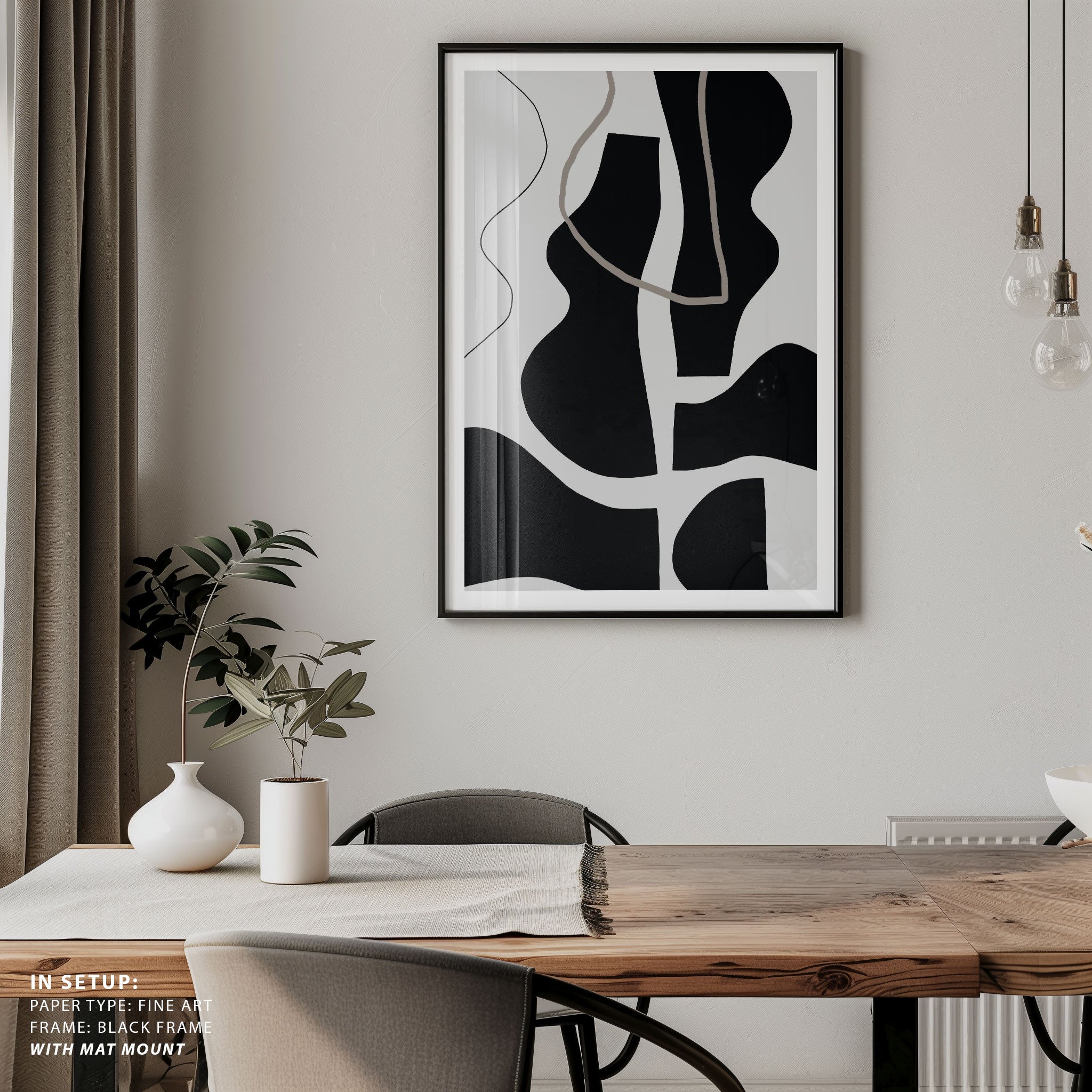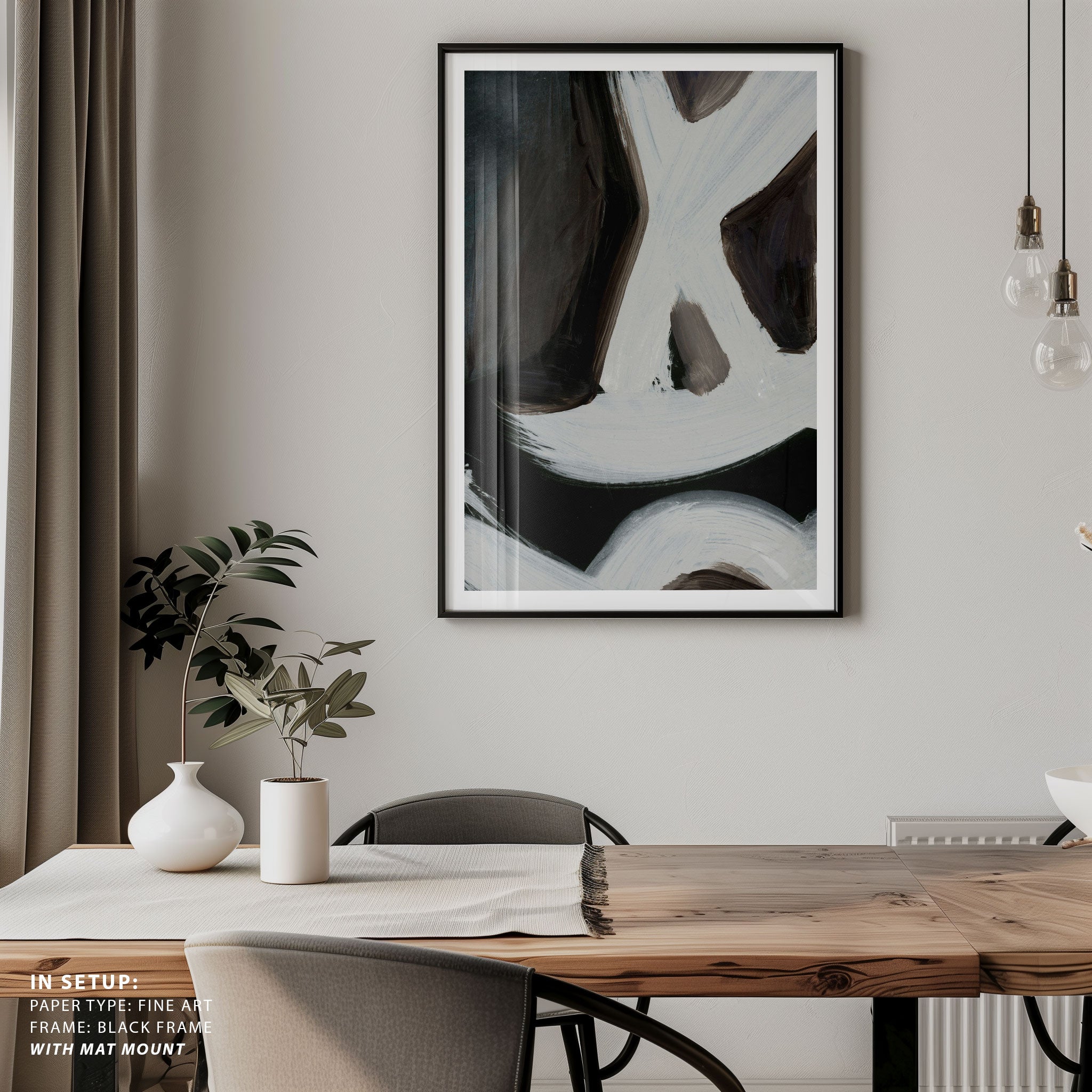 Choose framed black art prints for a bold, polished look or unframed prints for clean, modern styling.