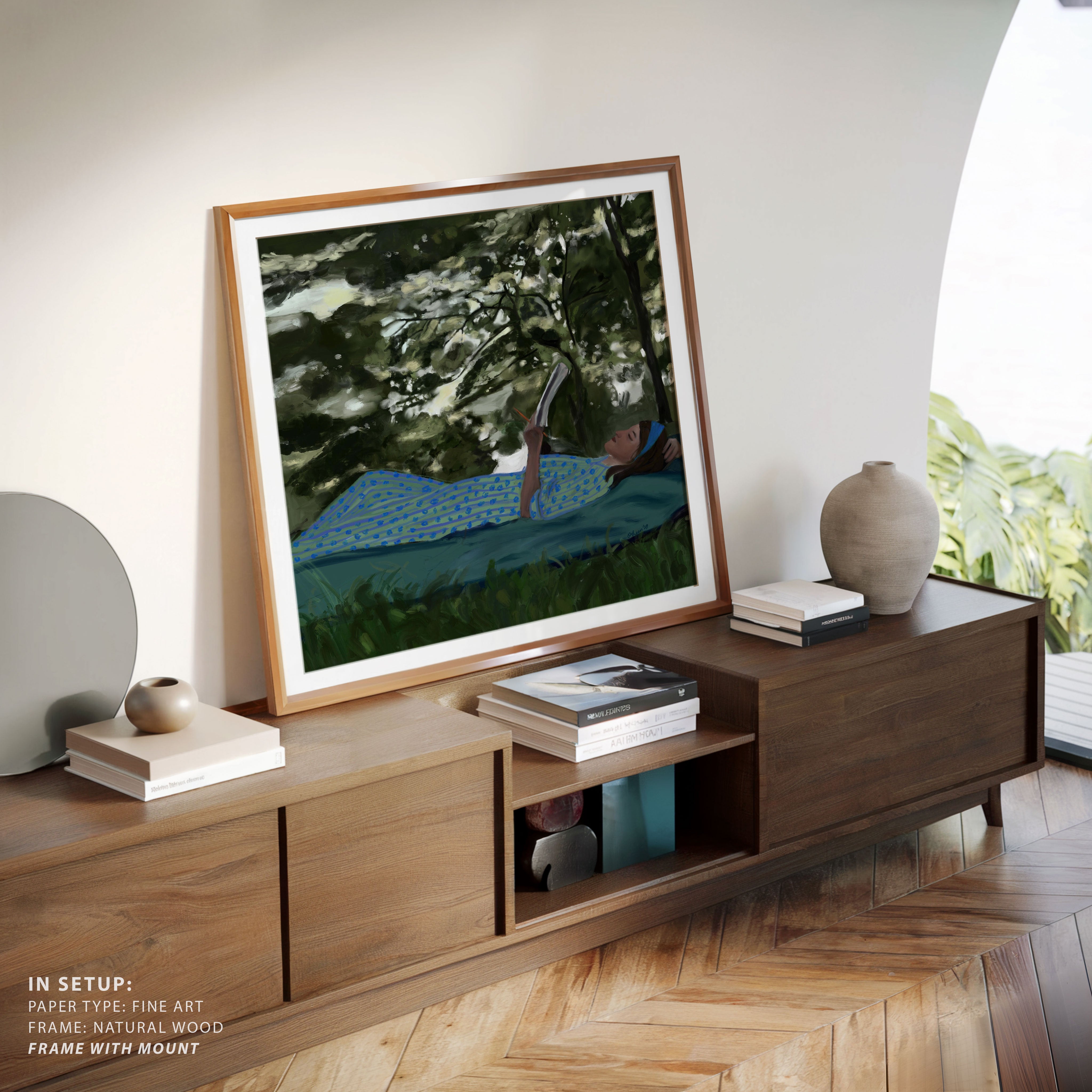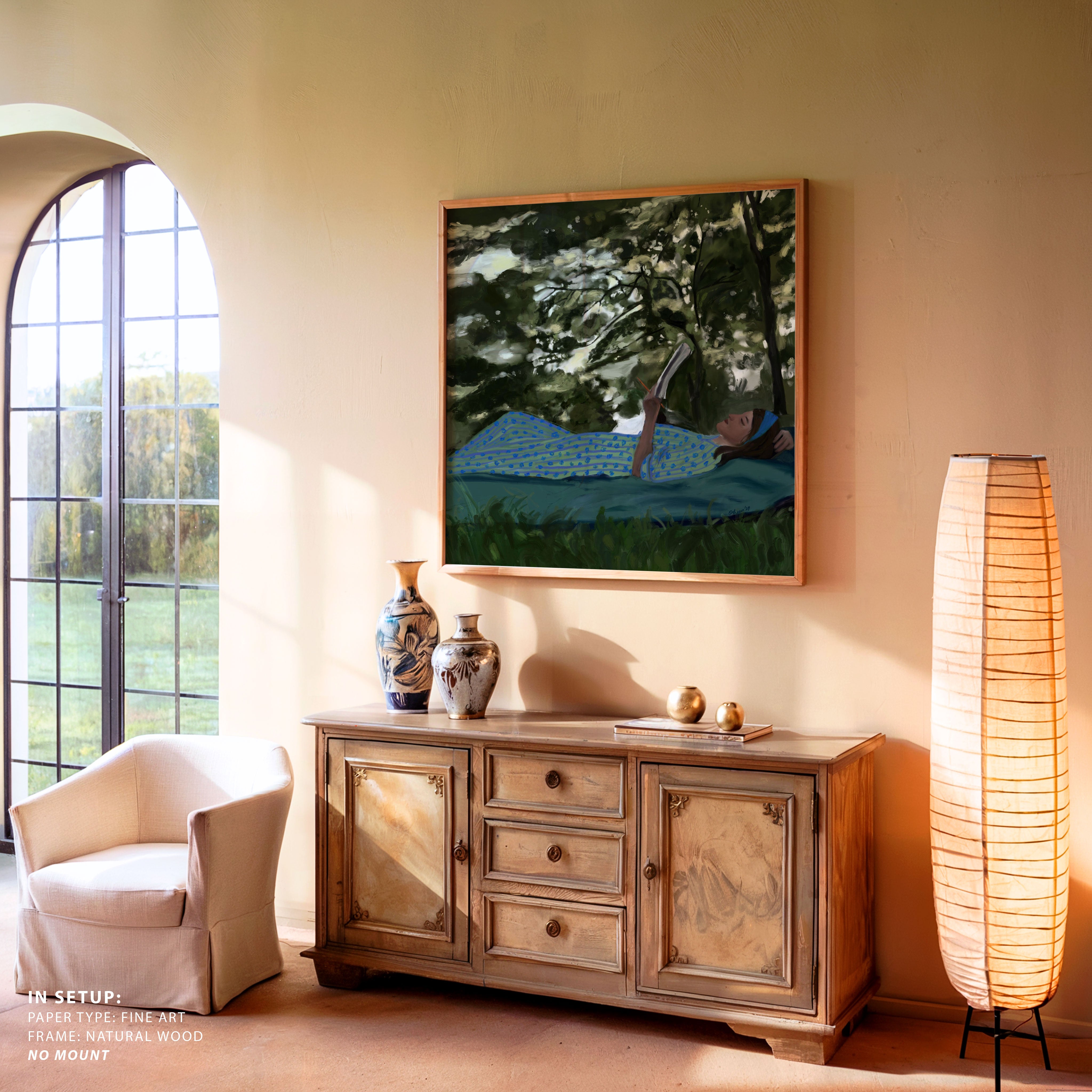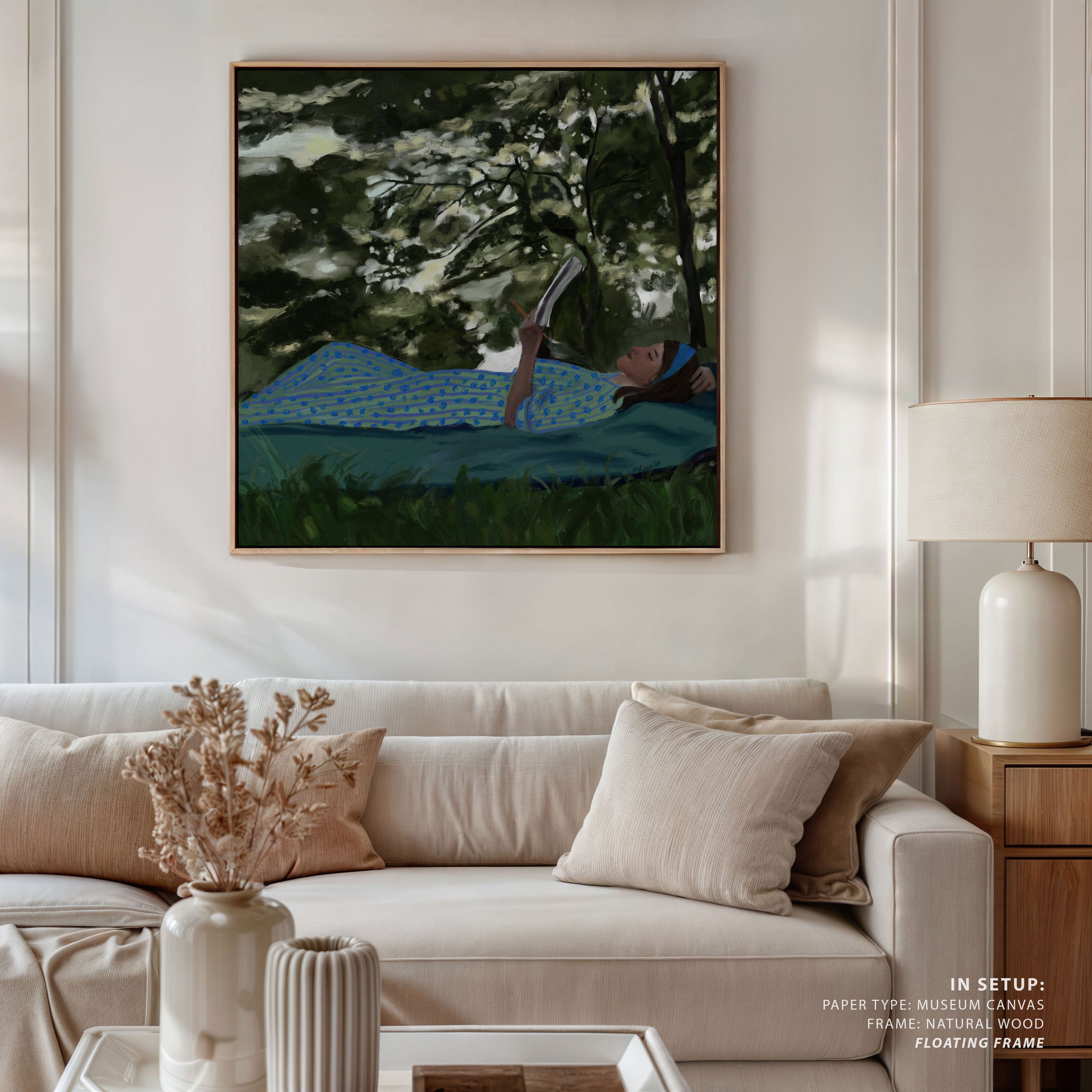 Bring a sense of intimacy and reflective calm into your space with this captivating artwork, A Summer Daydream, by Osheen. Drawing inspiration from quiet moments, human connection with nature, and the subtleties of everyday life, each piece reflects the artist’s profound appreciation for stillness and observation.