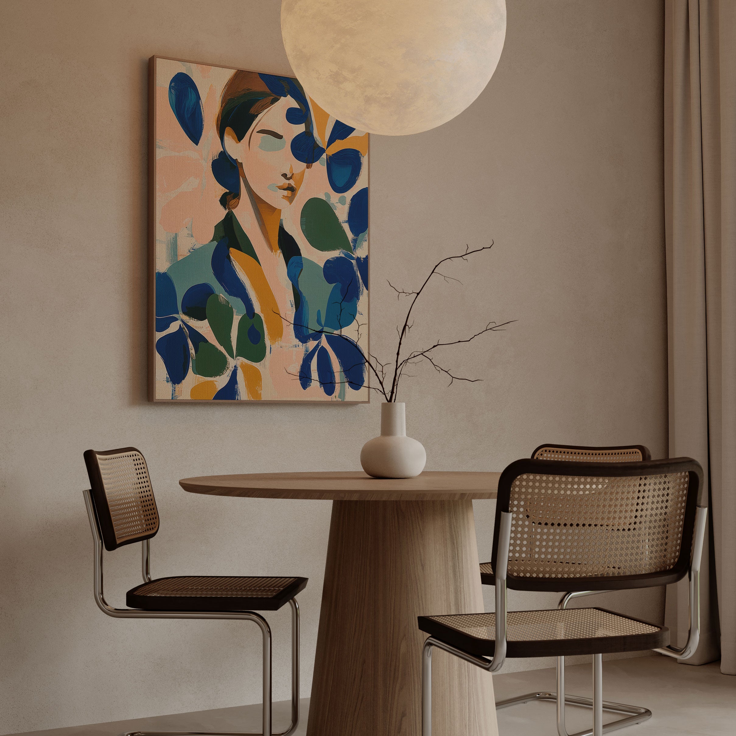 Through layered shapes, soft transitions, and a confident interplay of color, line, and negative space, this illustrated artwork evokes introspection, movement, and emotional balance. Each piece invites open interpretation and visual connection, transforming everyday walls into curated art statements that celebrate creativity, individuality, and timeless contemporary expression.