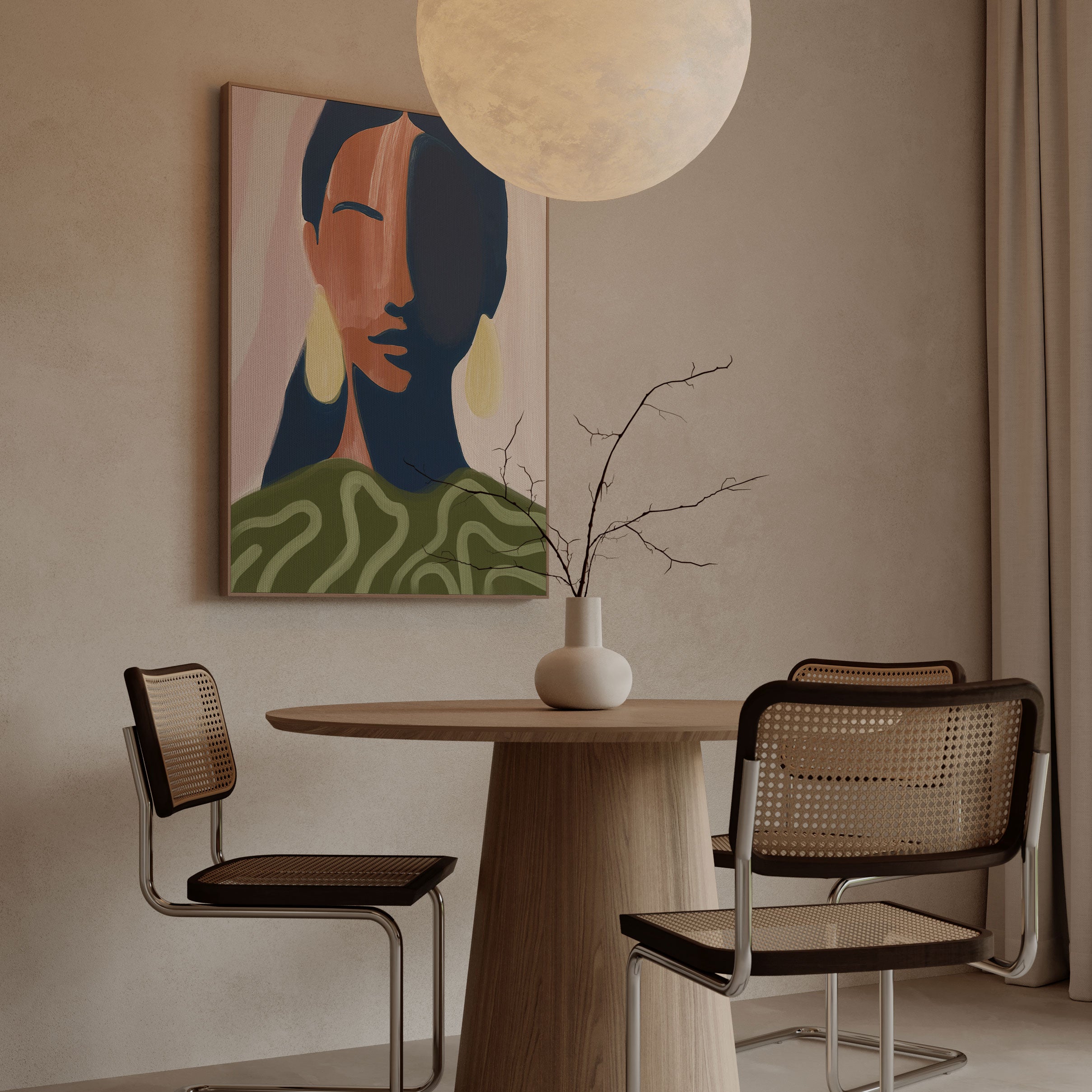 Through layered shapes, soft transitions, and a confident interplay of color, line, and negative space, this illustrated artwork evokes introspection, movement, and emotional balance. Each piece invites open interpretation and visual connection, transforming everyday walls into curated art statements that celebrate creativity, individuality, and timeless contemporary expression.