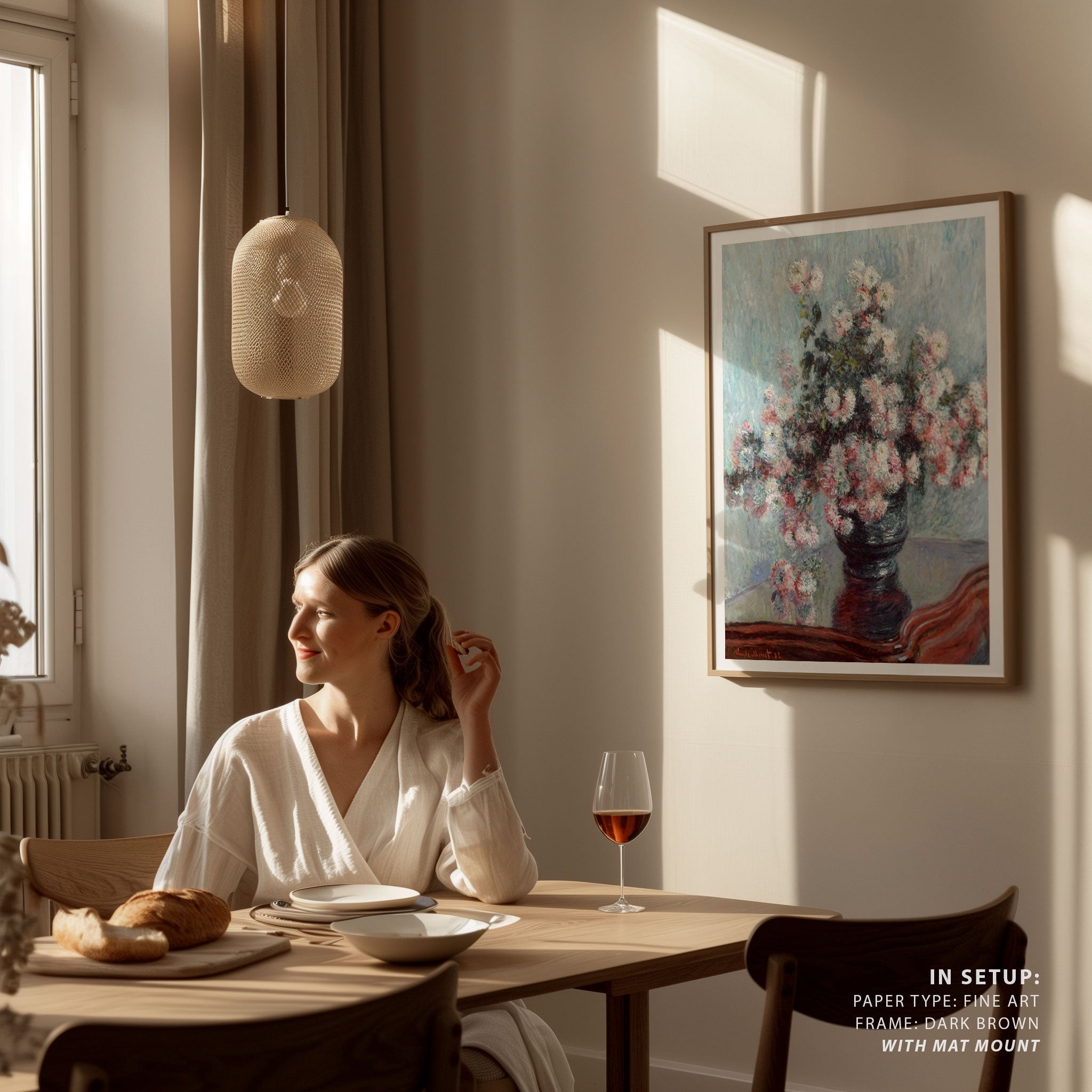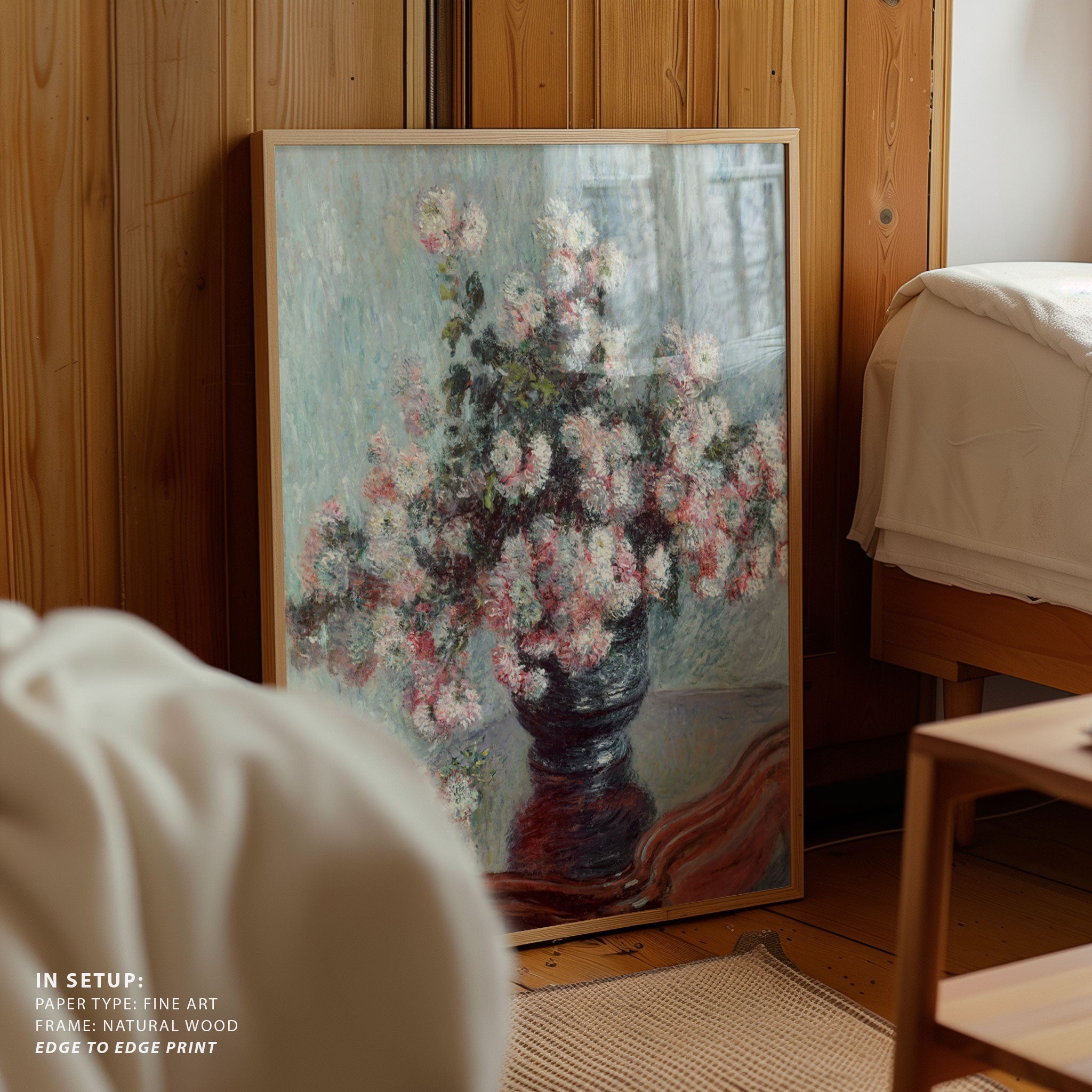 Elevate your space with the serene beauty of nature’s blooms. This art print, A Chrysanthemums, from our Botanical Art Print Collection celebrates organic forms and botanical grace, layering lush floral tones in a carefully curated palette that brings a calm, natural vibrancy to any room. Bring the gentle elegance of nature into your space with this captivating art print.