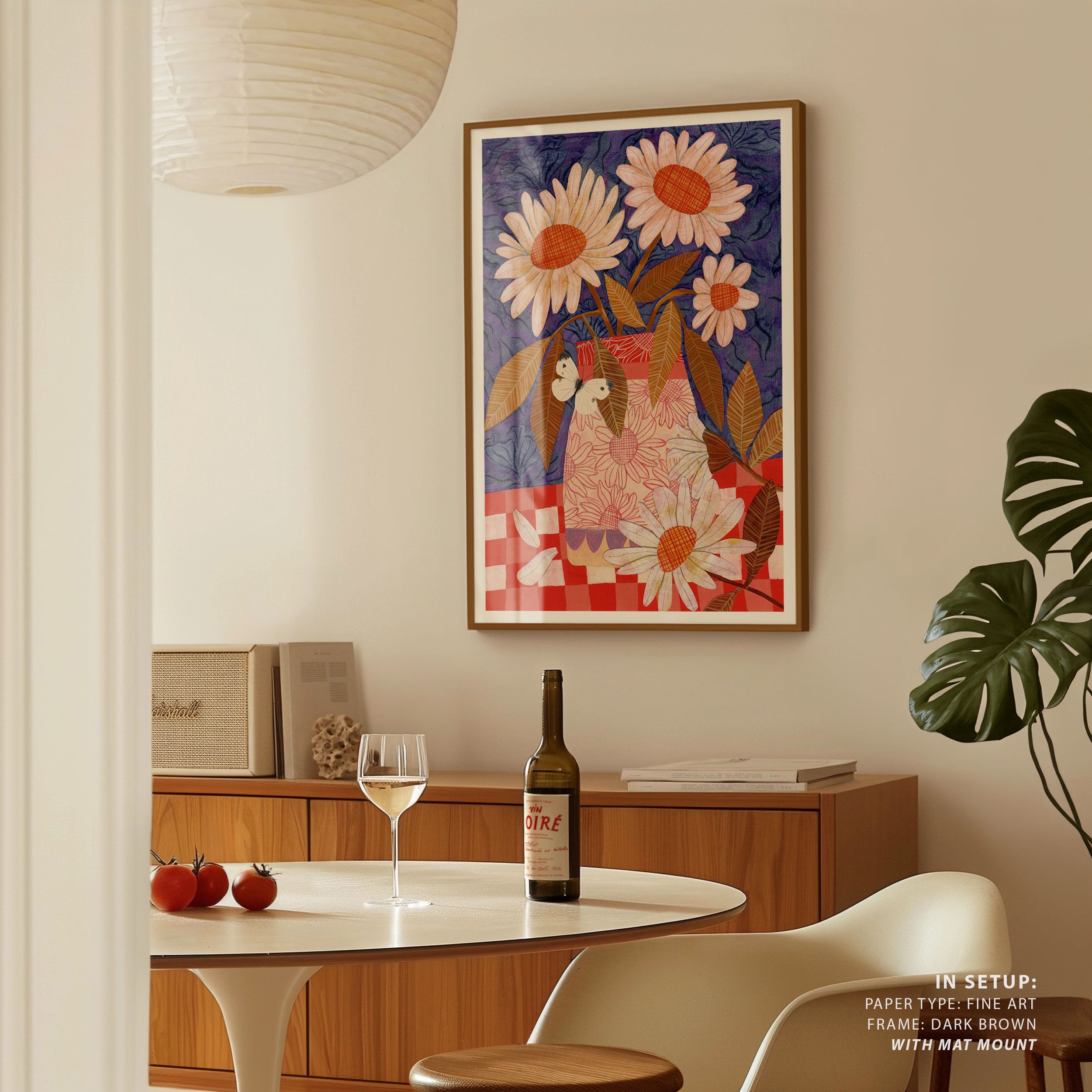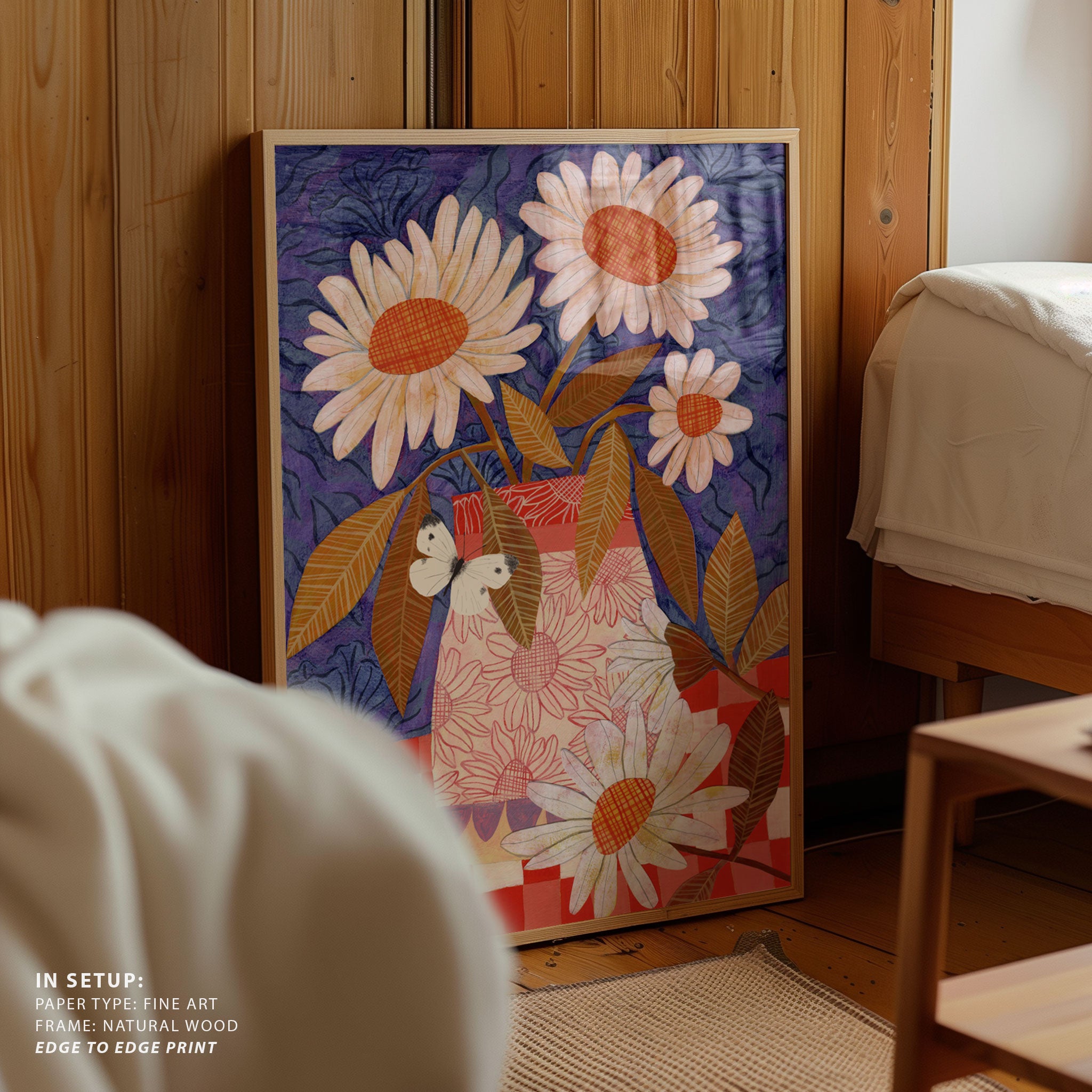 Elevate your space with the serene beauty of nature’s blooms. This art print, A Daisies In A Patterned Vase, from our Botanical Art Print Collection celebrates organic forms and botanical grace, layering lush floral tones in a carefully curated palette that brings a calm, natural vibrancy to any room. Bring the gentle elegance of nature into your space with this captivating art print.