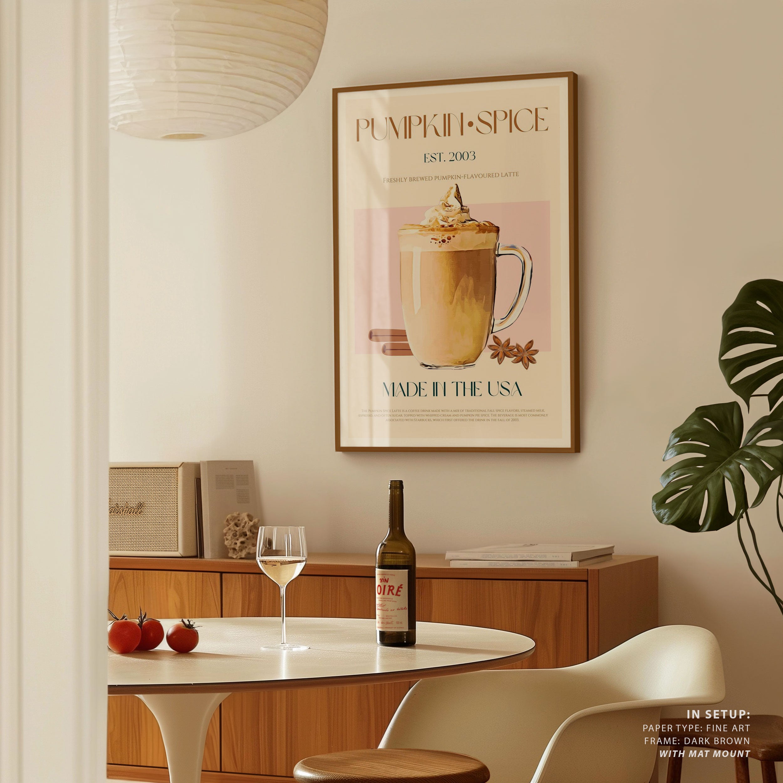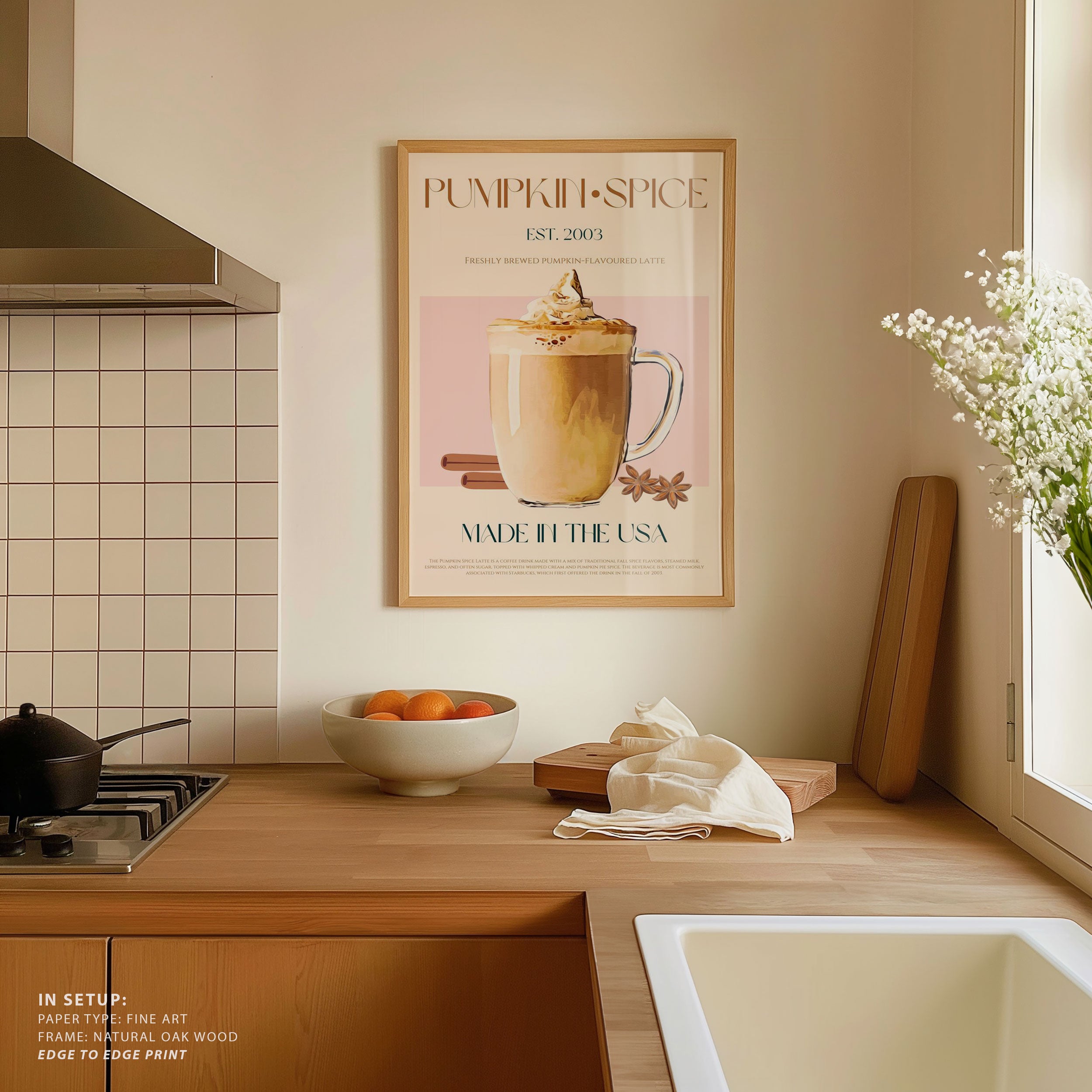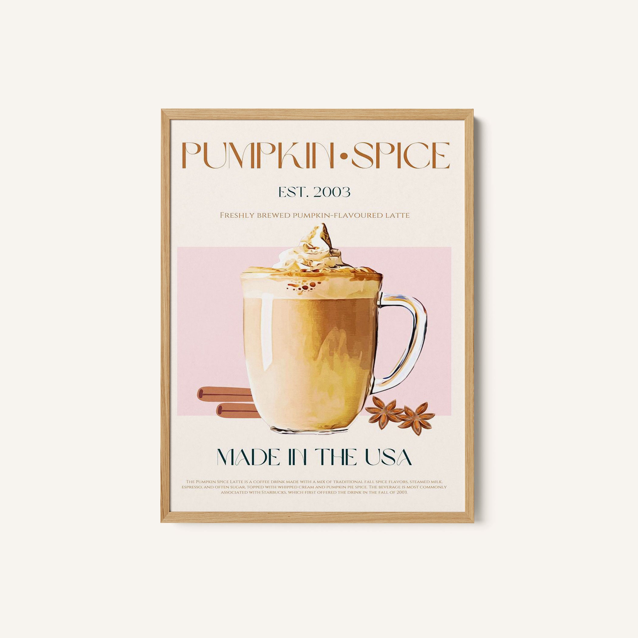 Turn your kitchen or café into a haven of slow mornings and gentle ambiance with this trendy wall art print. Autumn Latte Delight from our Kitchen and Café Art Prints Collection, featuring clean, pop-art‑style typography. The playful yet graphic design tone fits right in with today’s trending food‑and‑drink decor, matching lines of witty kitchen quotes and minimal illustrations that instantly tell you this is all about coffee, tea or juice.