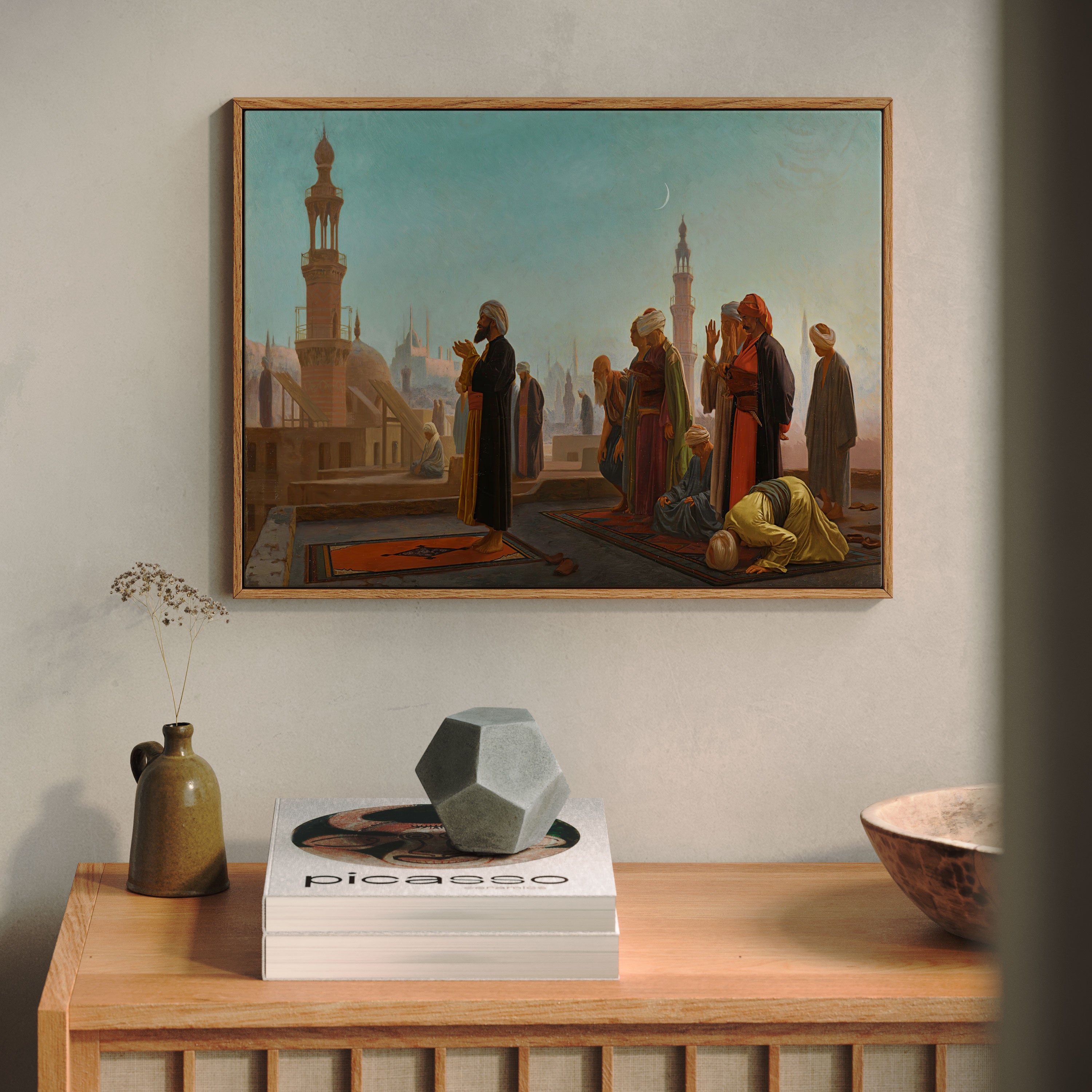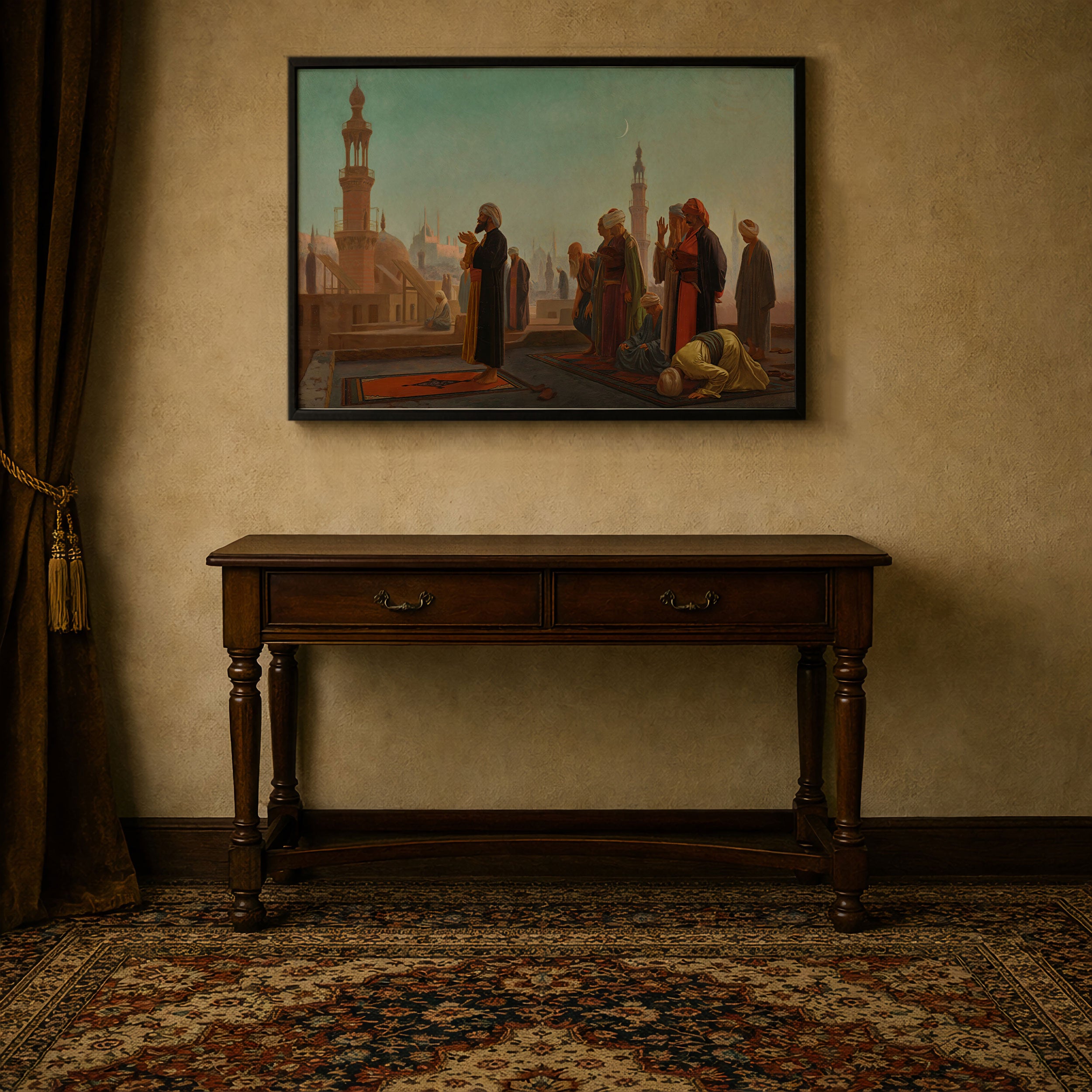 Bring elegance and harmony into your space with this beautiful artwork, Evening Prayer, Cairo, from our Jean Leone Gerome Art Prints Collection. This piece reveals a quiet yet compelling interplay of deep tones, soft contours, and expressive brushwork that conveys both intimacy and strength. Subtle painting details, classic art textures, and refined color layering enhance its timeless appeal. Its gentle contrasts and inviting atmosphere bring a refined and contemplative touch to any interior, enriching your space with the timeless poetry of this iconic artistic style.