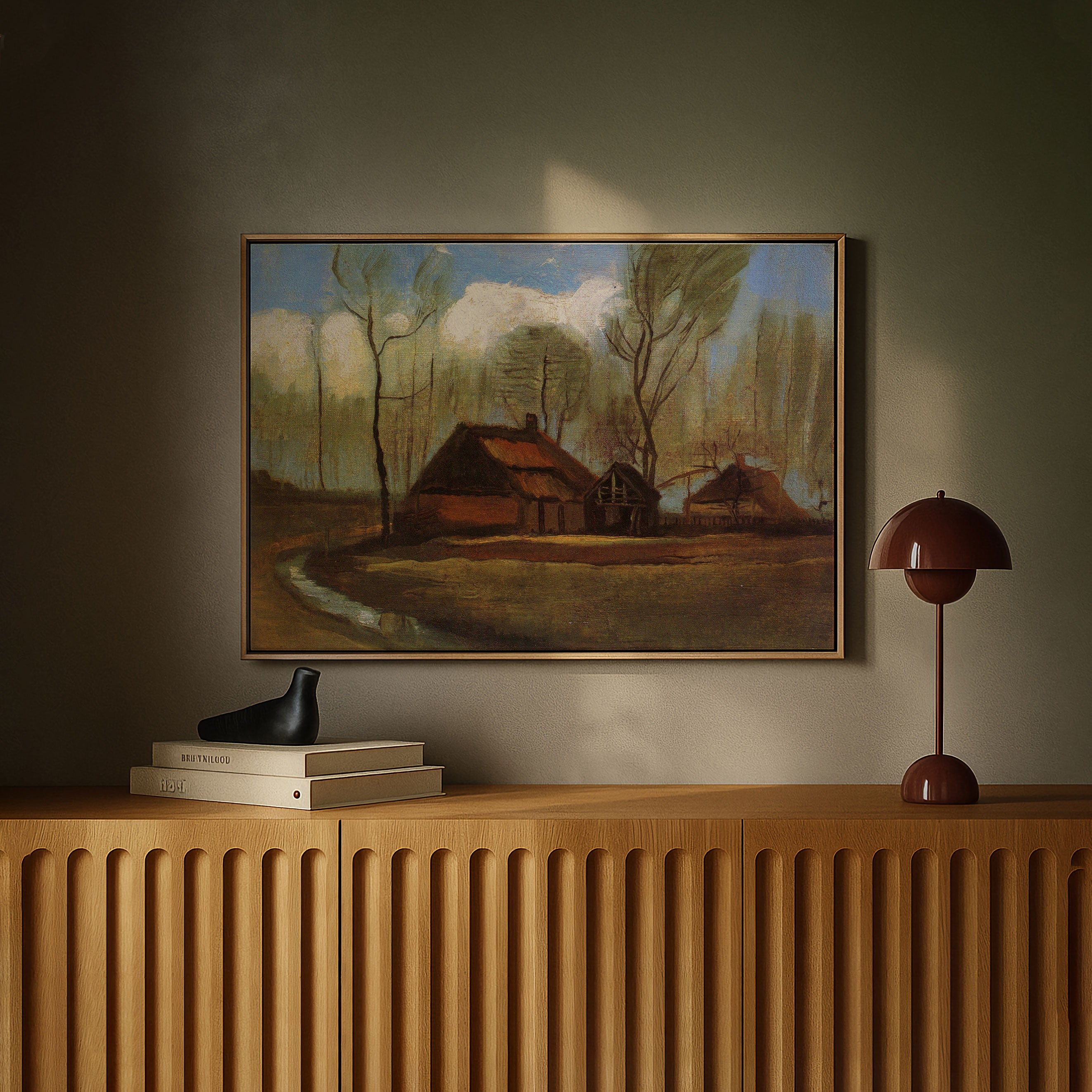 Bring elegance and harmony into your space with this beautiful artwork, Farmhouses Among Trees, from our Vincent Van Gogh Art Prints Collection. This piece reveals a quiet yet compelling interplay of rich tones, gentle shapes, and expressive brushwork that captures both warmth and depth. Subtle painting details, classic art textures, and refined color transitions enhance its enduring charm. Its balanced contrasts and serene atmosphere introduce a thoughtful and artistic presence to any interior, enriching your space with the timeless poetry of this iconic artistic style.