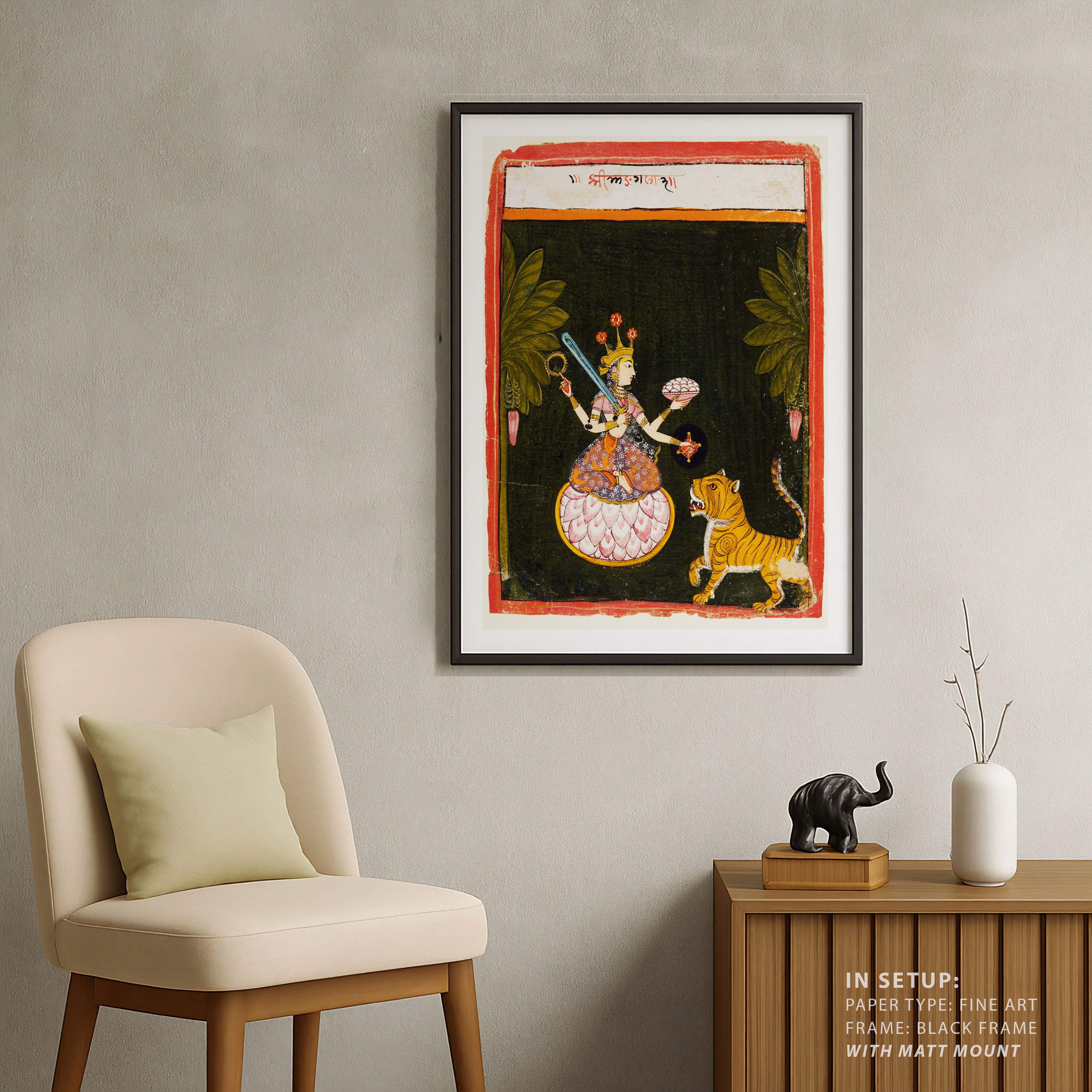 Bring elegance and cultural harmony into your space with this beautiful artwork, Goddess Mangala, from our Classical Indian Art Collection. This timeless artwork features expressive figures, symbolic motifs, intricate detailing, and harmonious compositions inspired by India’s rich artistic traditions. Perfect for traditional, heritage, eclectic, and contemporary interiors, Indian folk and classical wall art adds depth, warmth, and a sense of history and storytelling to every interior.