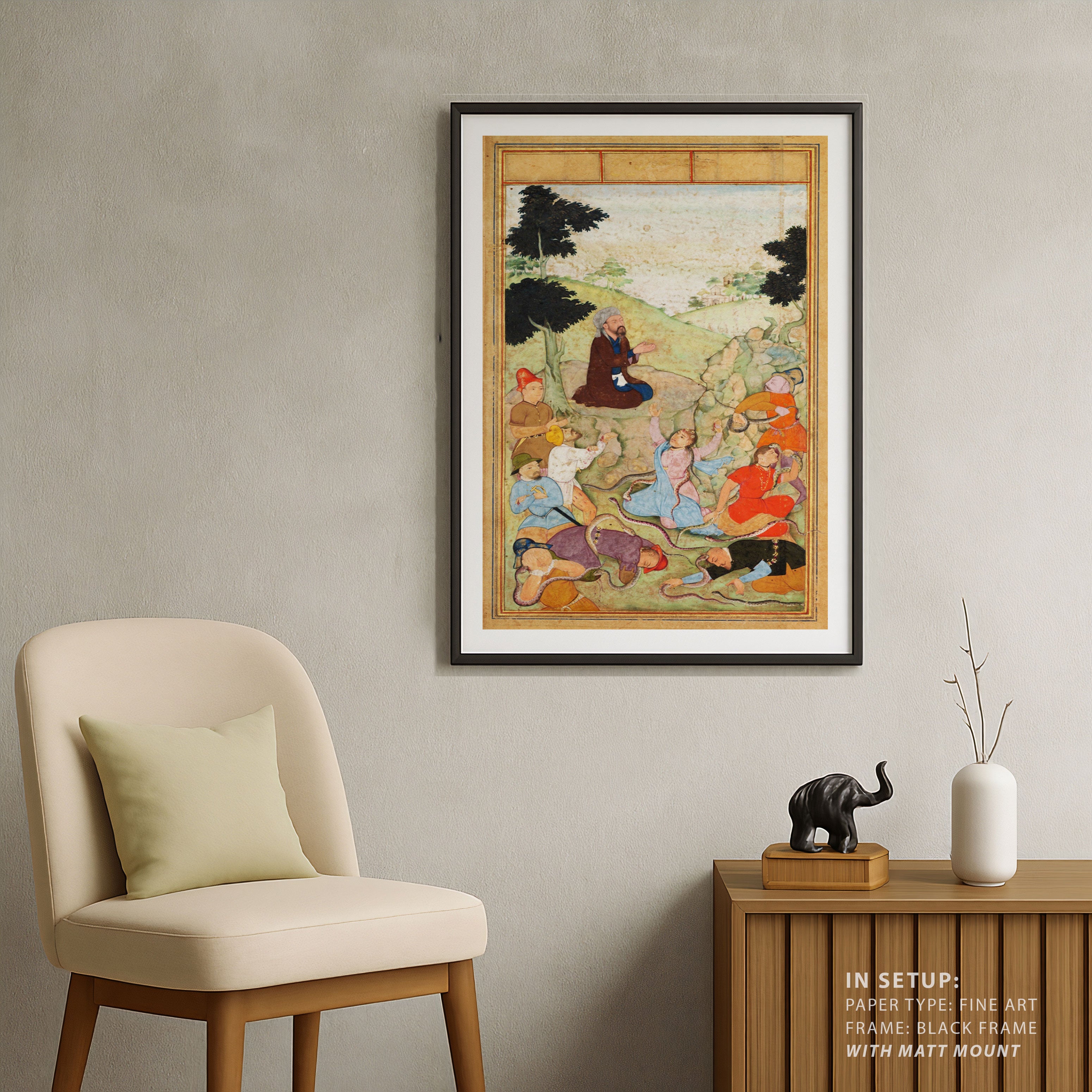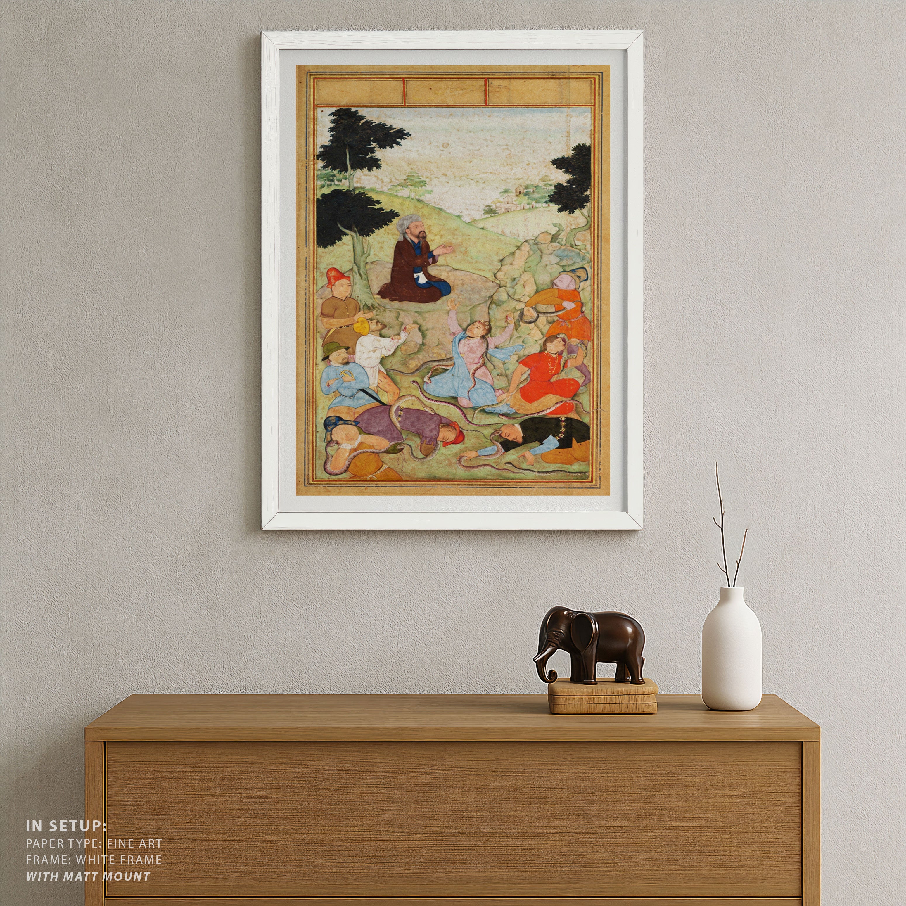 Bring elegance and cultural harmony into your space with this beautiful artwork, Moses Intercedes: Deliverance from the Serpents, from our Classical Indian Art Collection. This timeless artwork features expressive figures, symbolic motifs, intricate detailing, and harmonious compositions inspired by India’s rich artistic traditions. Perfect for traditional, heritage, eclectic, and contemporary interiors, Indian folk and classical wall art adds depth, warmth, and a sense of history and storytelling to every interior.