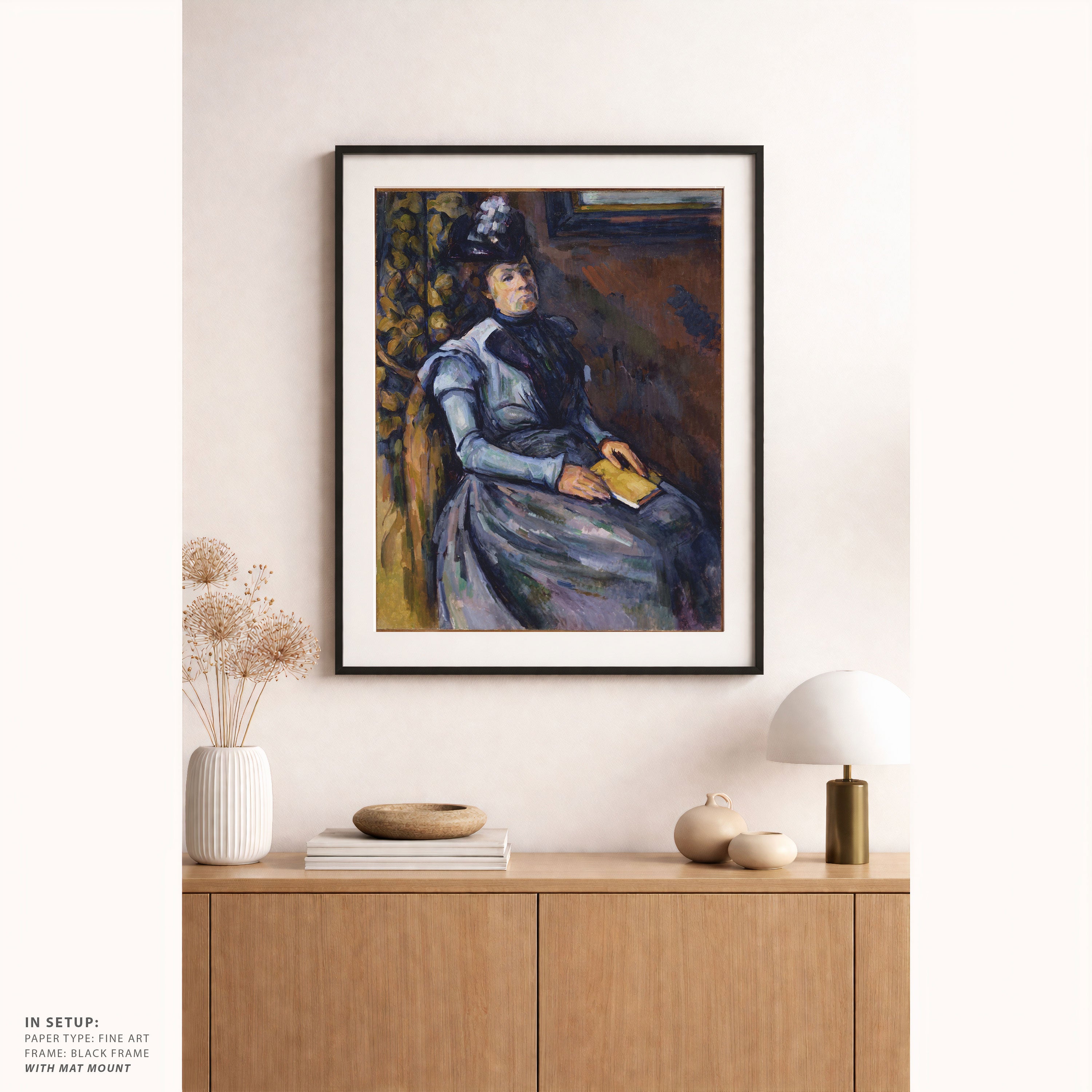 Bring elegance and harmony into your space with this beautiful artwork, Seated Woman in Blue, from our Paul Cézanne Painting Prints Collection. This piece reveals a quiet yet compelling interplay of rich tones, structured forms, and expressive brushwork that captures both warmth and depth. Subtle painting details, classic fine-art textures, and thoughtfully layered color transitions enhance its enduring charm. Its balanced composition and contemplative atmosphere introduce a refined and artistic presence to any interior, enriching your space with the timeless poetry and distinctive vision of this iconic Cézanne-inspired artistic style.