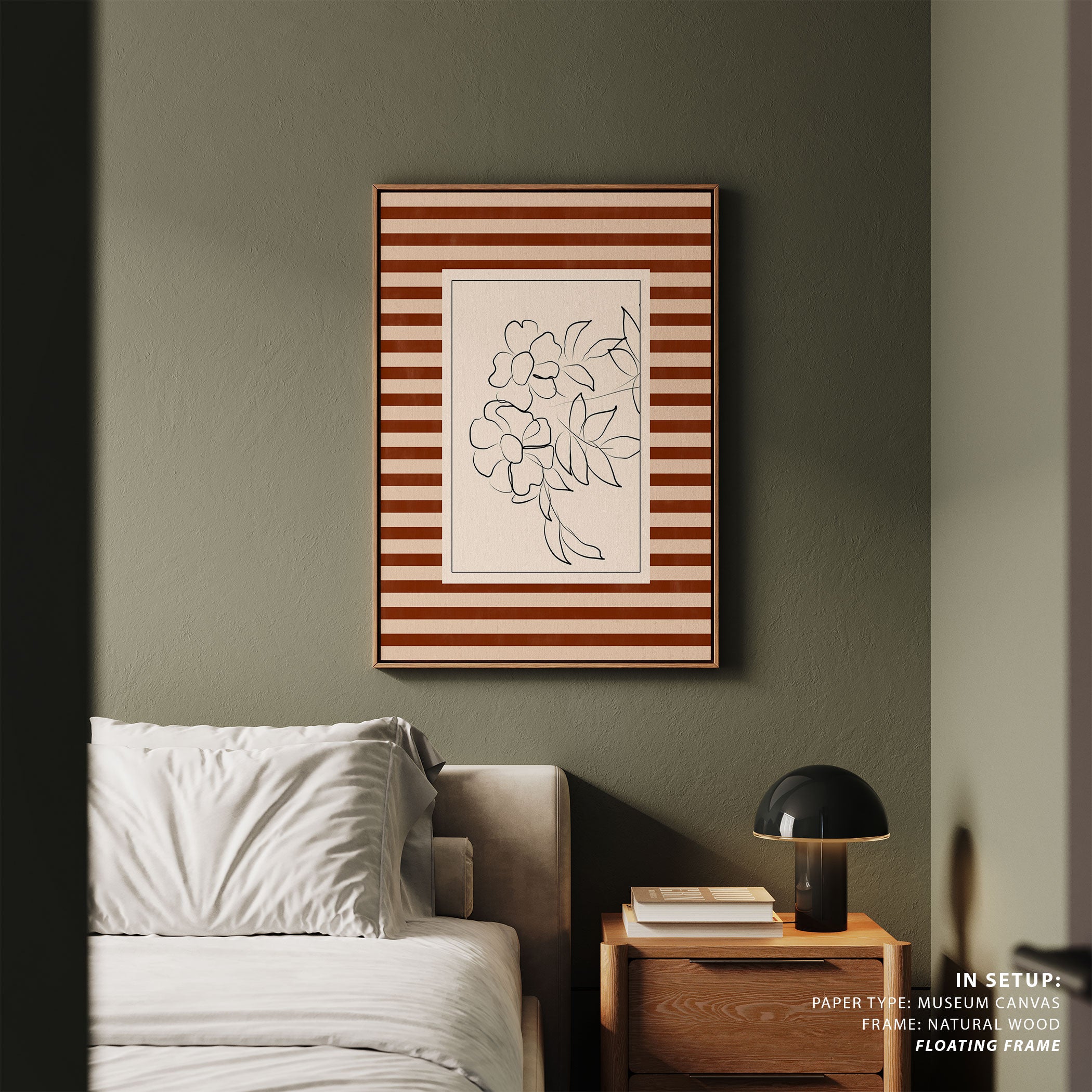 Introduce bold modern expression and imaginative visual storytelling into your space with this captivating artwork, Terracotta Stripe Botanical Line Art, from our Elena Ristova Art Prints Collection. Designed to celebrate bold illustration and imaginative narratives, this artwork blends expressive forms, dynamic shapes, and thoughtfully curated color palettes to create a striking yet balanced visual impact. Rooted in modern artistic aesthetics, it adds character, depth, and creative energy to modern, eclectic, and artistic interiors.