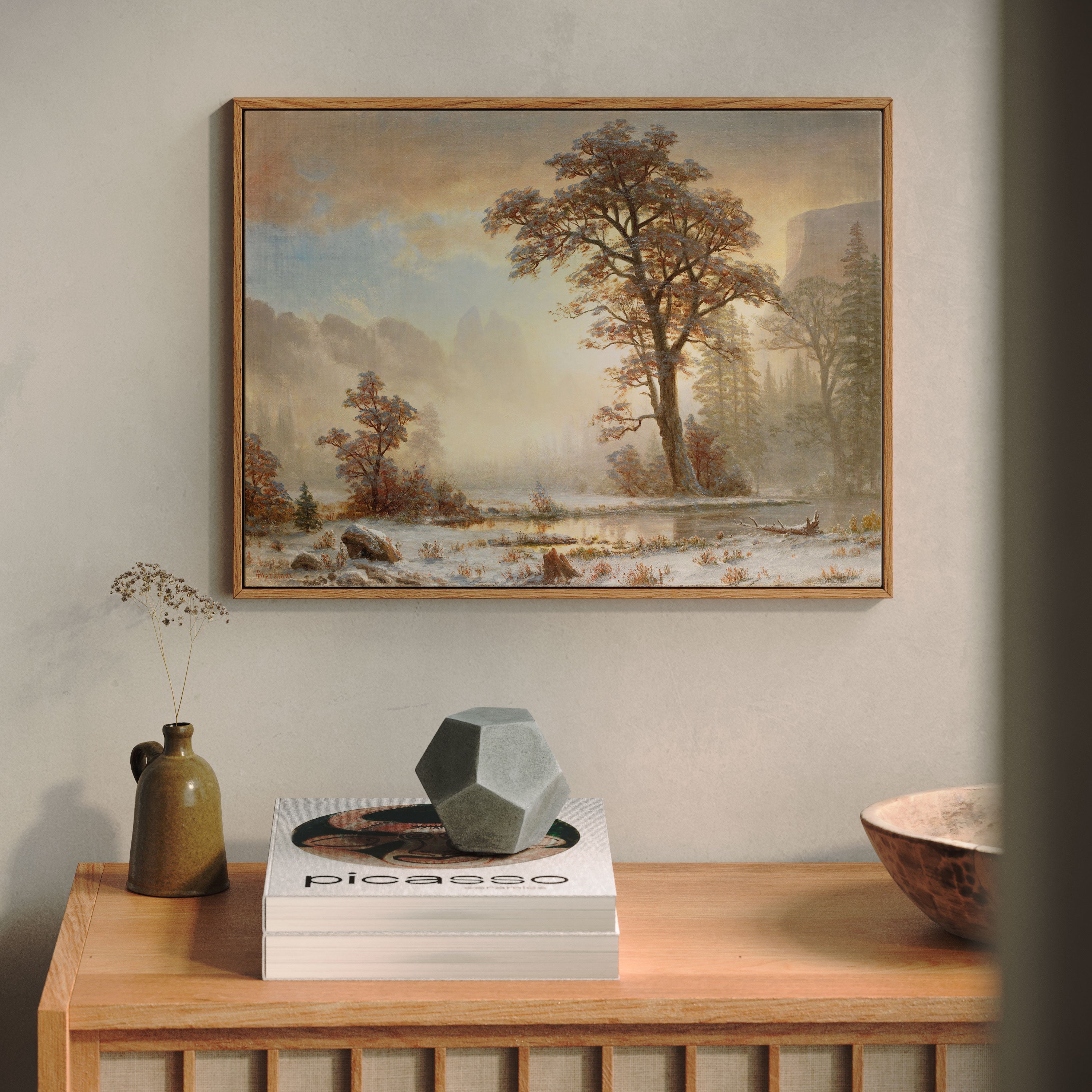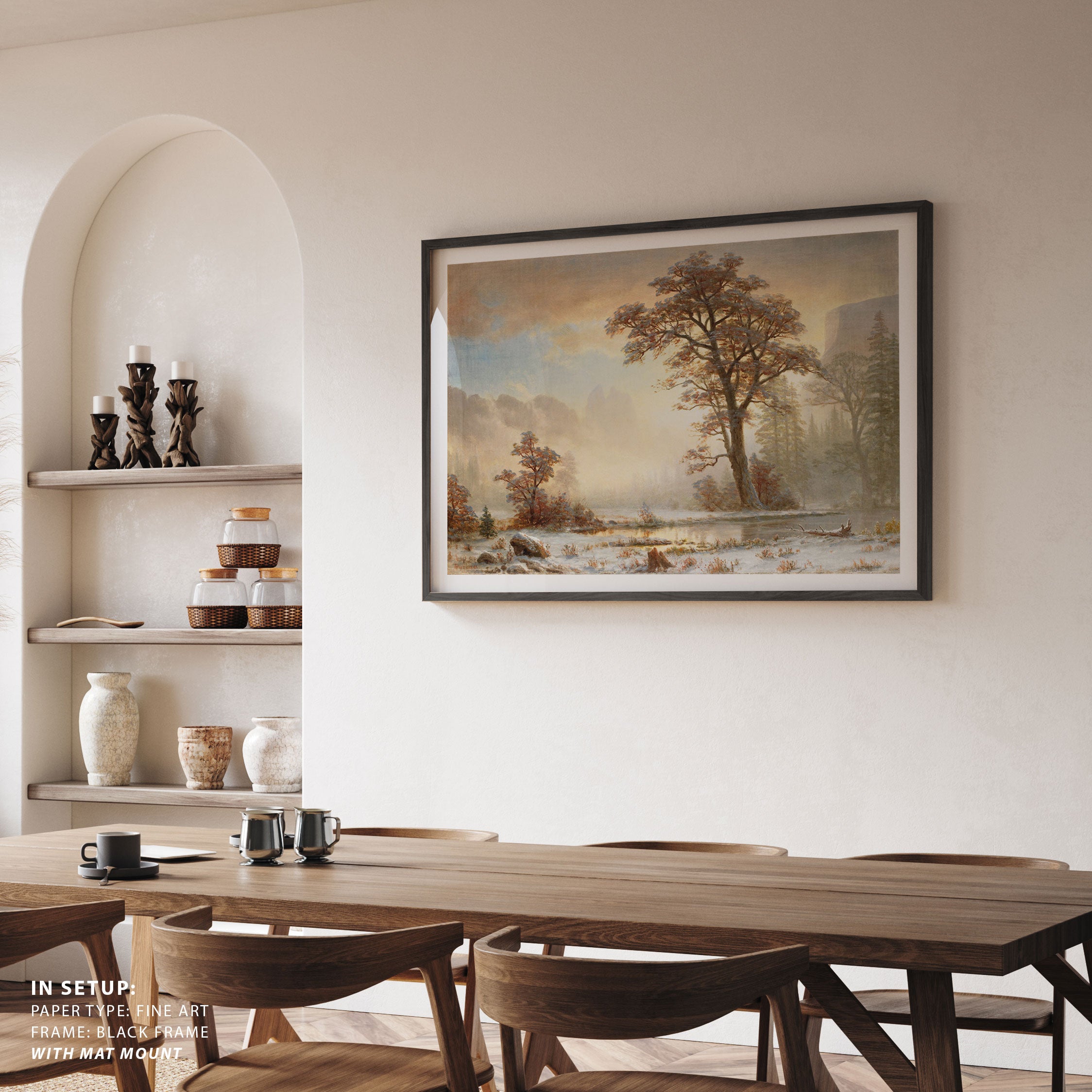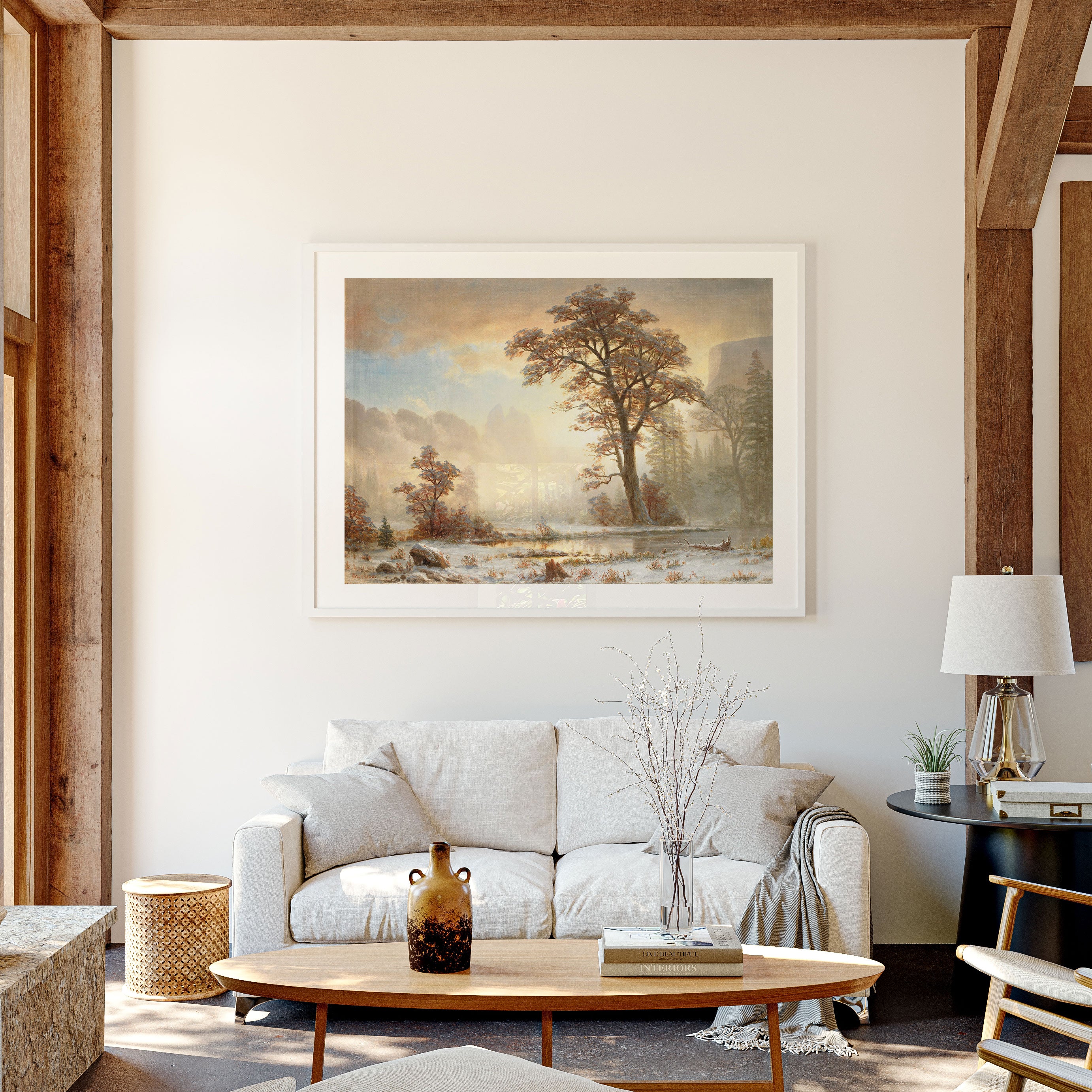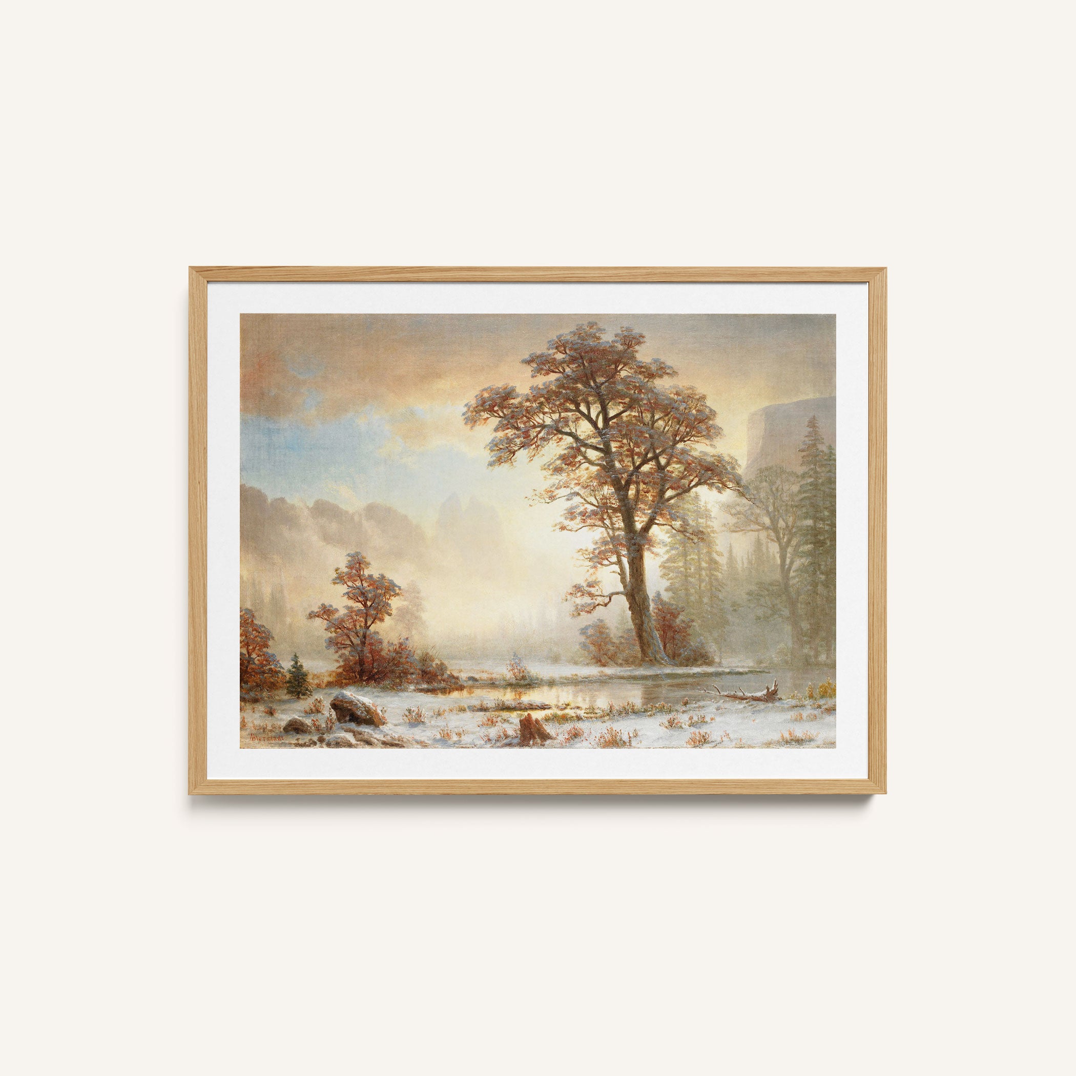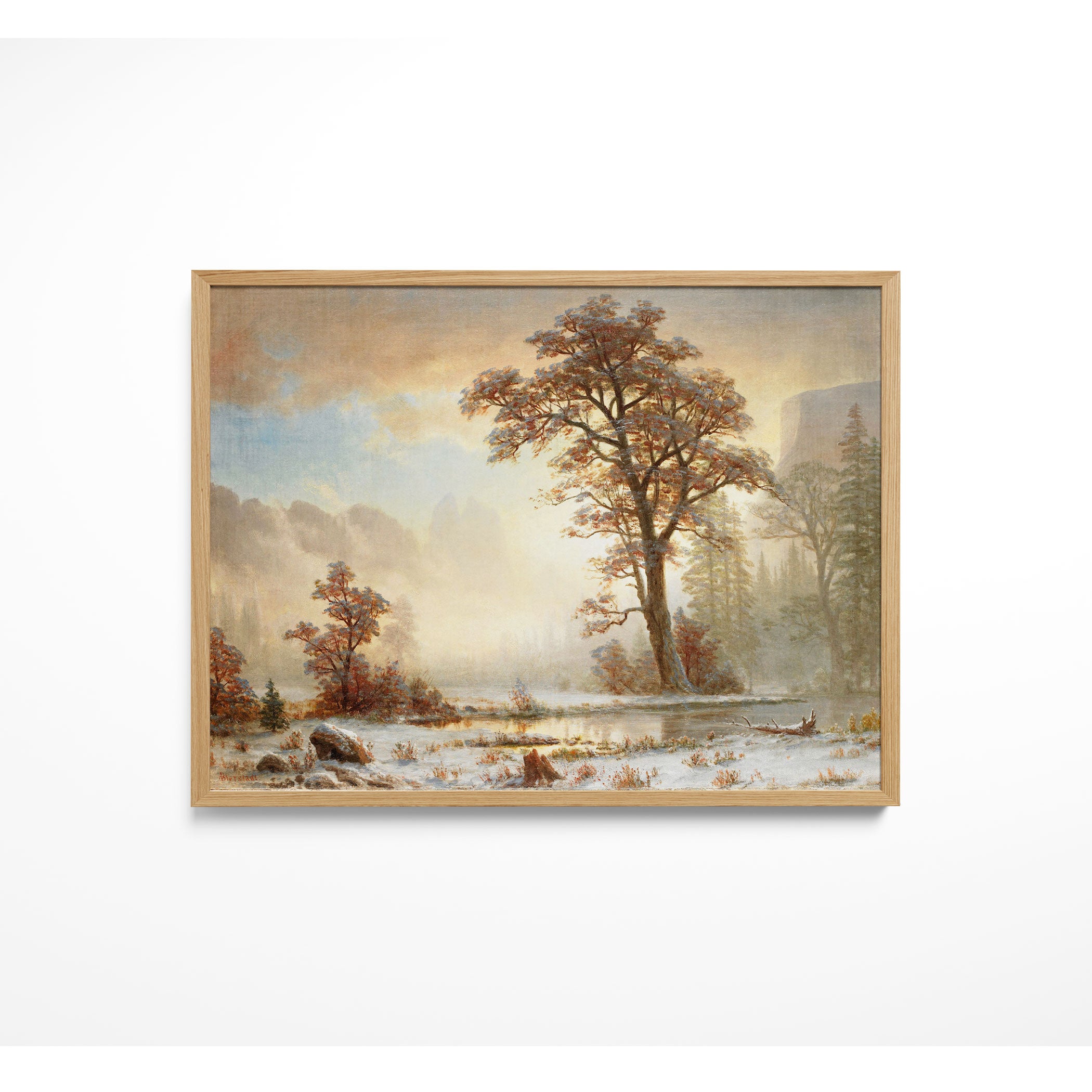 Bring elegance and harmony into your space with this beautiful artwork, Valley of the Yosemite-First Snowfall of the Year (About 1863), from our Art Prints Collection. Inspired by the majestic vision of Albert Bierstadt, each piece reveals the breathtaking grandeur of unspoiled landscapes through radiant light, sweeping horizons, and meticulously rendered natural detail. Whether capturing misty mountain passes, serene lakes glowing with reflected sky, or forests illuminated beneath dramatic clouds, these paintings fill any interior with a sense of tranquility, wonder, and timeless refinement perfect for creating an inviting, artful atmosphere in your home.