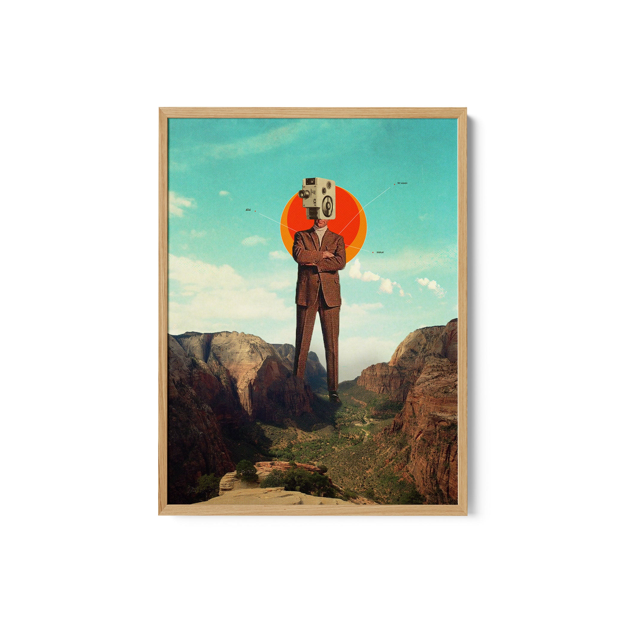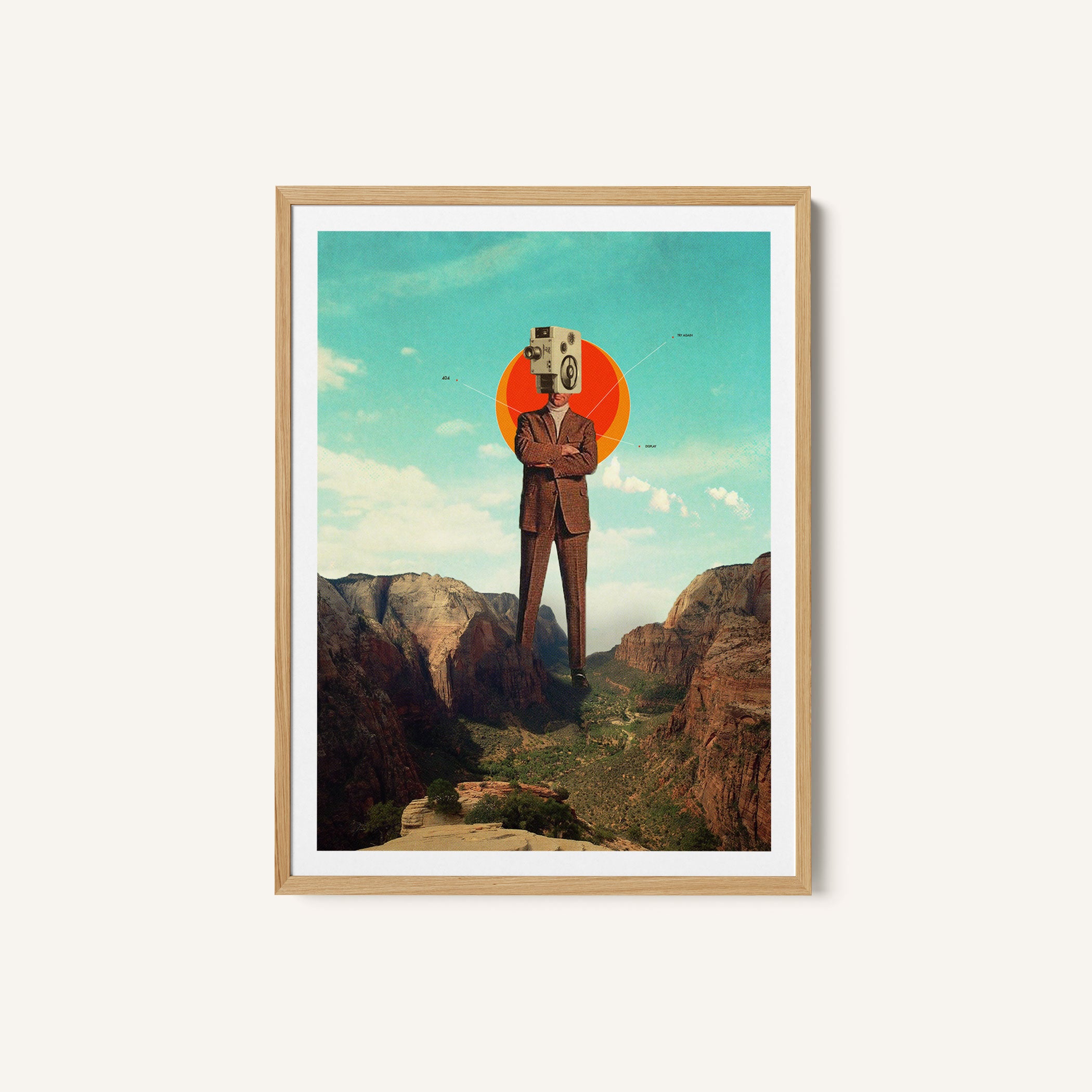 Introduce bold modern expression and imaginative visual storytelling into your space with this captivating artwork, Video404 by Frank Moth, from our Frank Moth Art Prints Collection. Designed to celebrate surreal visual art and contemporary collage aesthetics, this artwork blends dreamlike landscapes, symbolic human figures, and poetic contrasts to create a striking yet harmonious visual presence. Rooted in modern artistic expression, it adds depth, emotion, and creative intrigue to modern, eclectic, and art-inspired interiors.