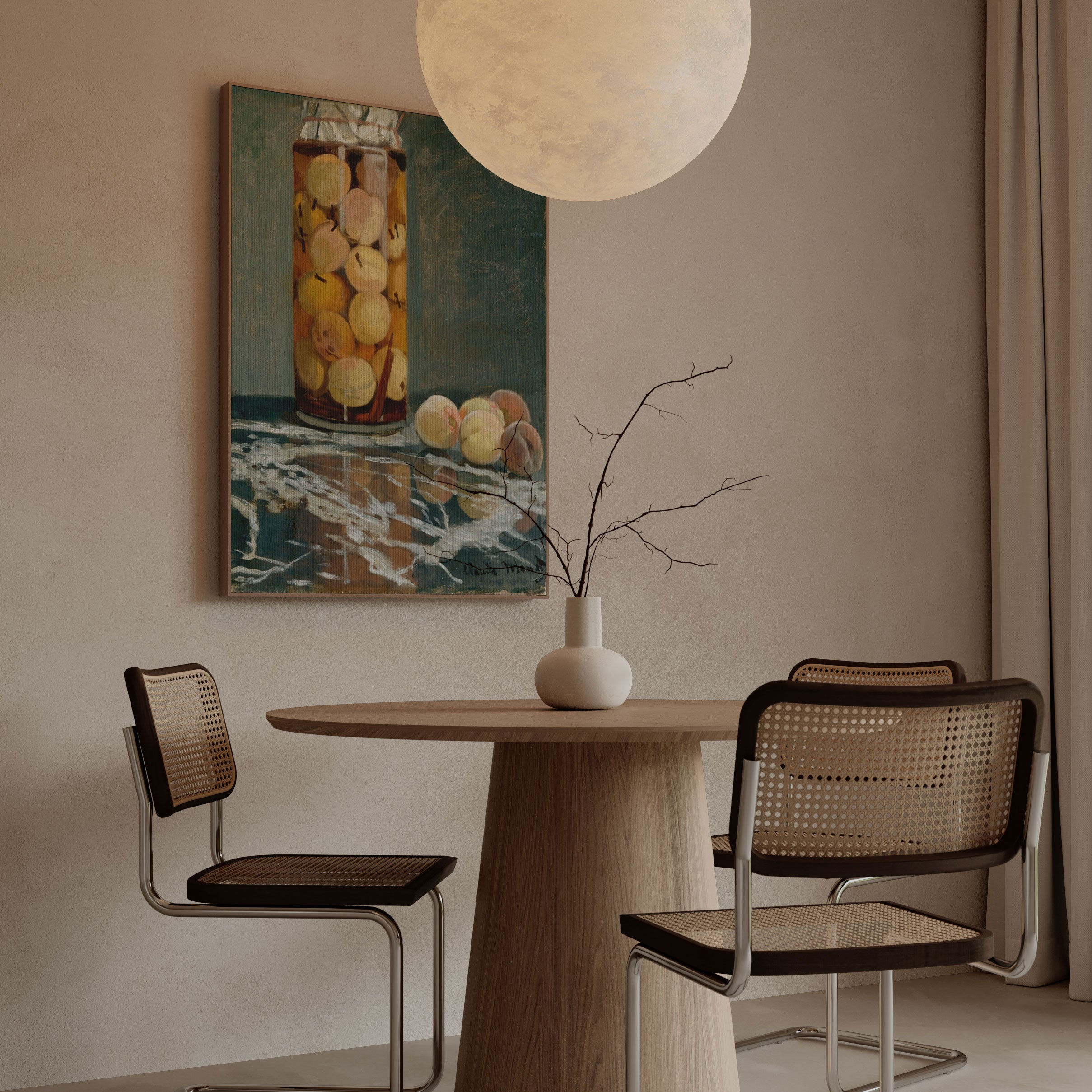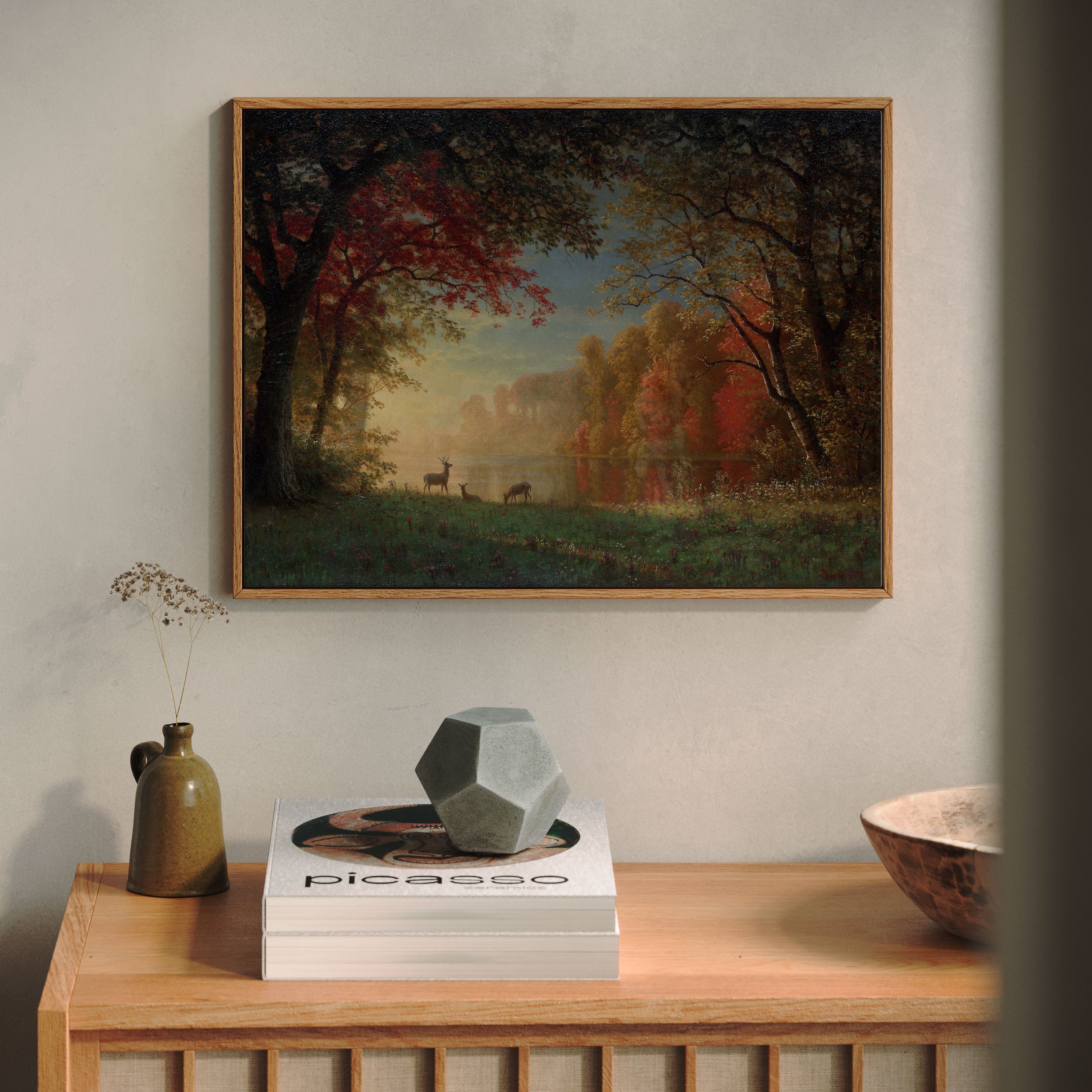 Brown is associated with stability, warmth, and nature. In wall art, brown adds texture and depth while maintaining a calming presence. It works especially well with natural materials such as wood, linen, stone, and leather, making it a staple colour in Scandinavian and earthy interiors.