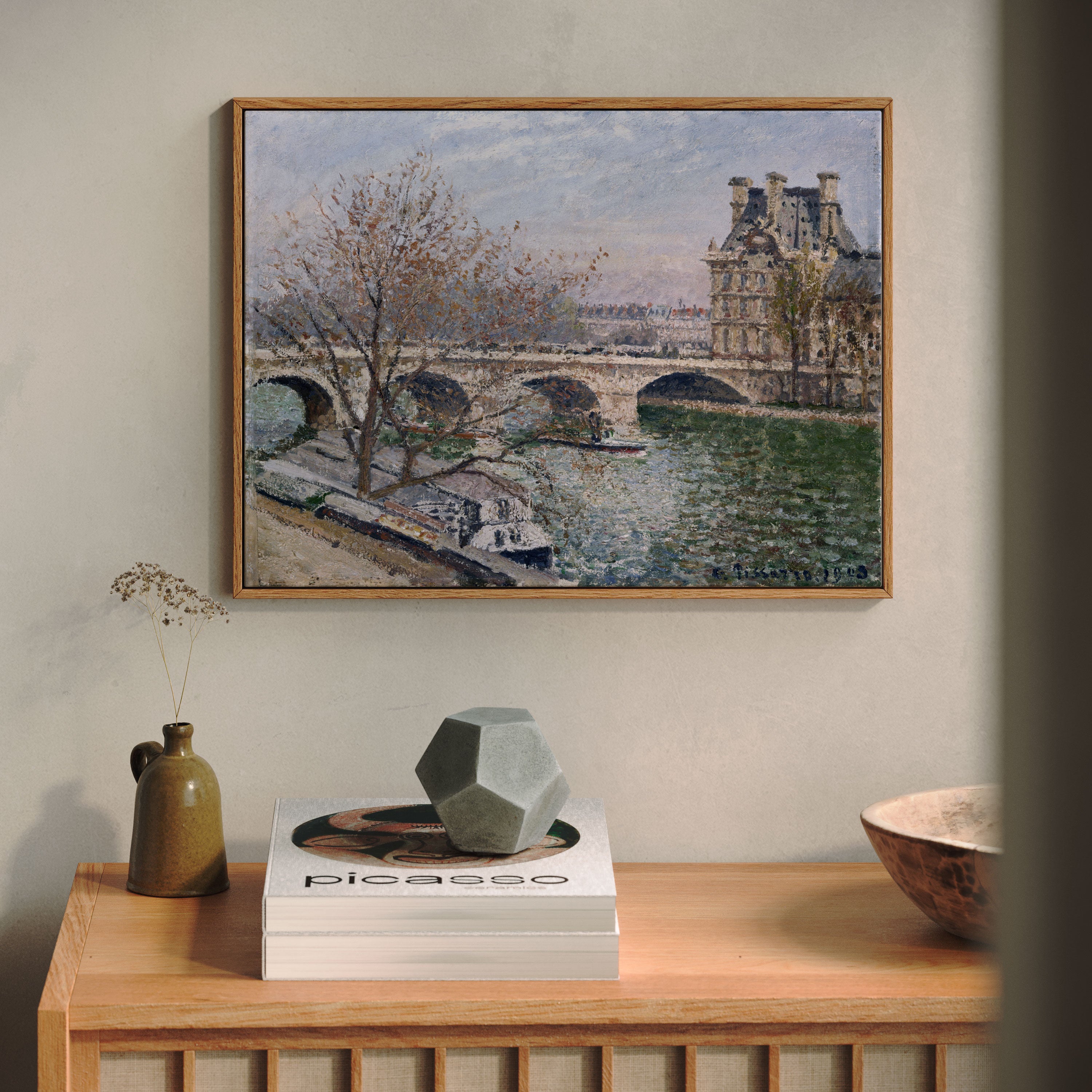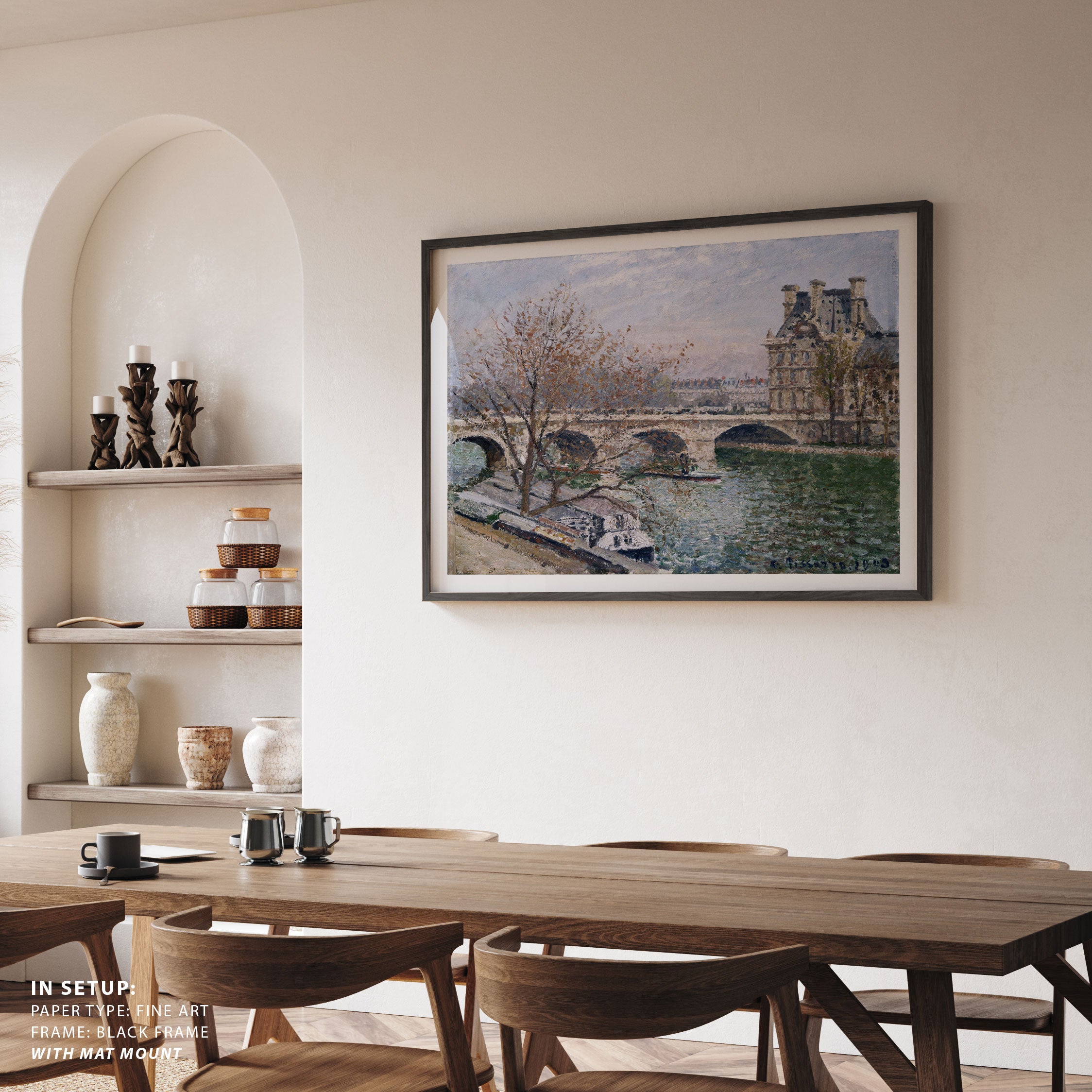 Bring elegance and harmony into your space with this beautiful artwork, The Pont Royal and the Pavillon De Flore, from our Camille Pissarro Art Prints Collection. Inspired by the gentle vision of Camille Pissarro, each piece captures the poetic rhythms of everyday life through luminous color, natural light, and delicate yet expressive brushwork. Whether depicting peaceful countryside paths, sun-drenched harvest scenes, or lively city boulevards, these paintings infuse any interior with a sense of serenity, warmth, and timeless sophistication perfect for creating an inviting, artful atmosphere in your home.