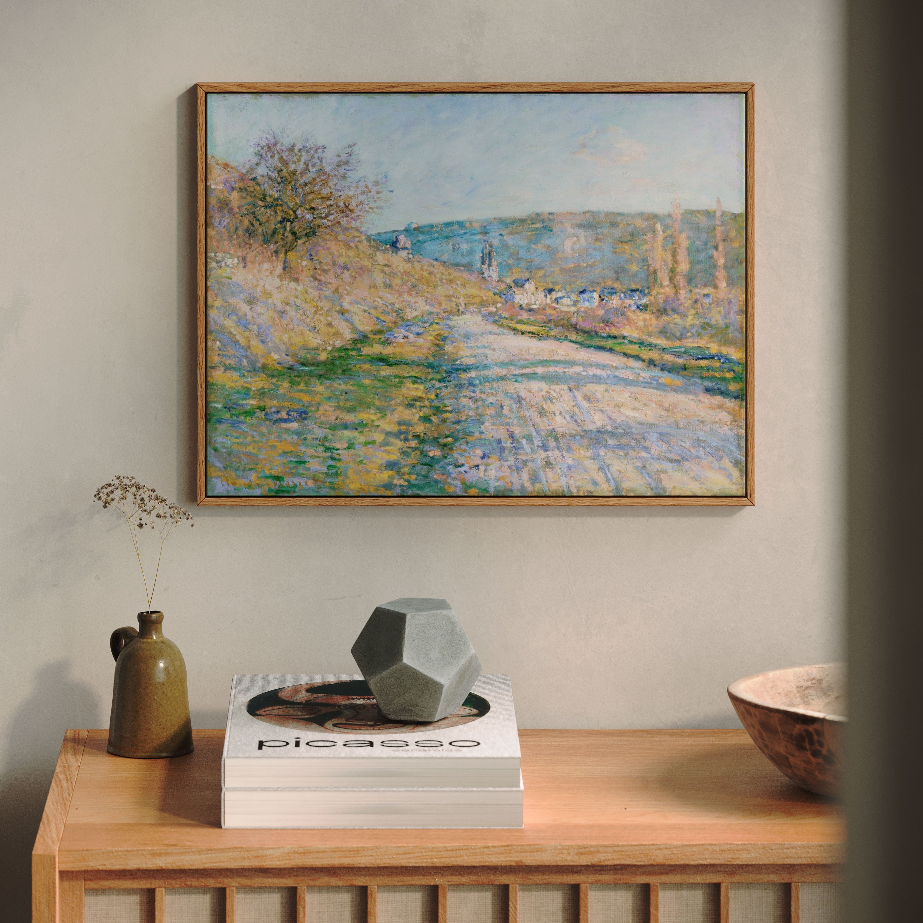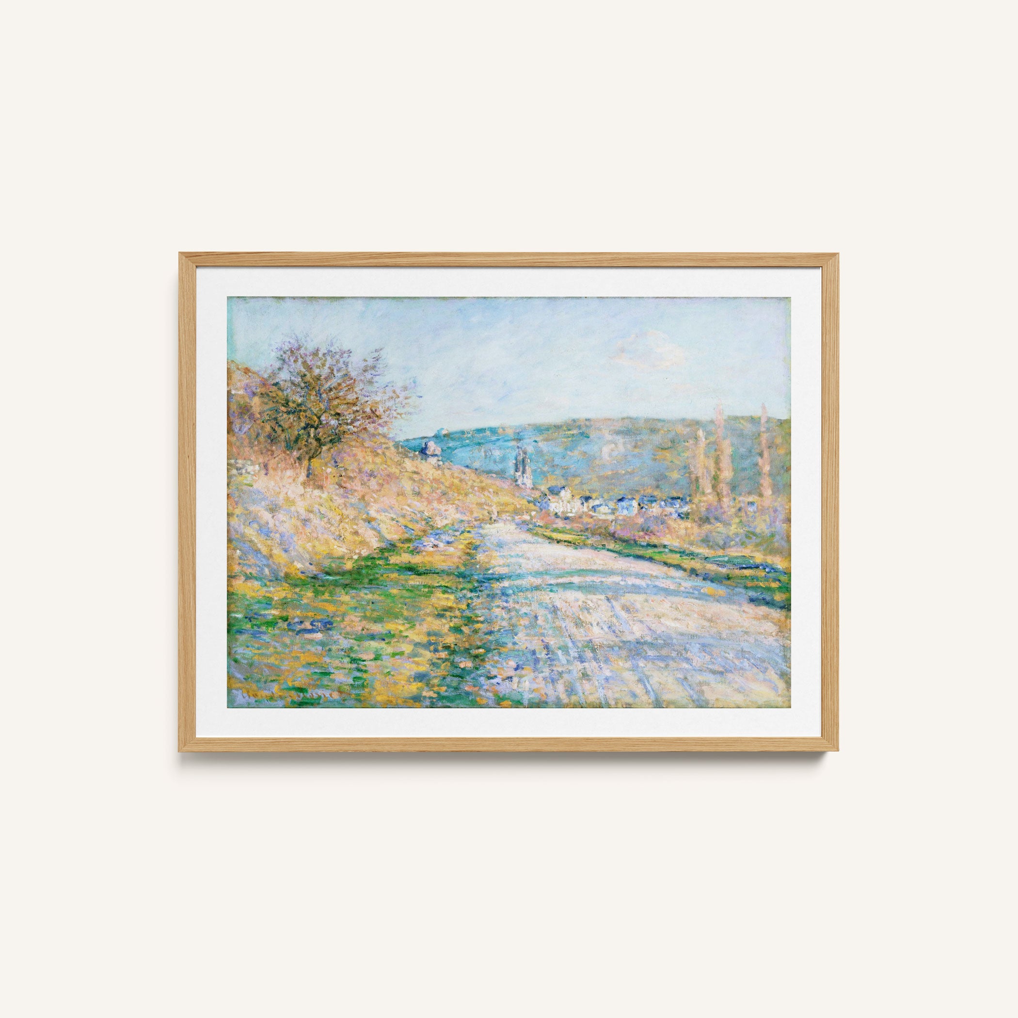 Bring elegance and harmony into your space with this beautiful artwork, The The Road to Vetheuilt, from our Impressionist Fine Art collection. Inspired by the timeless vision of Claude Monet, this piece features a serene blend of natural light, soft colors, and expressive brushstrokes adding a peaceful and sophisticated touch to any interior.