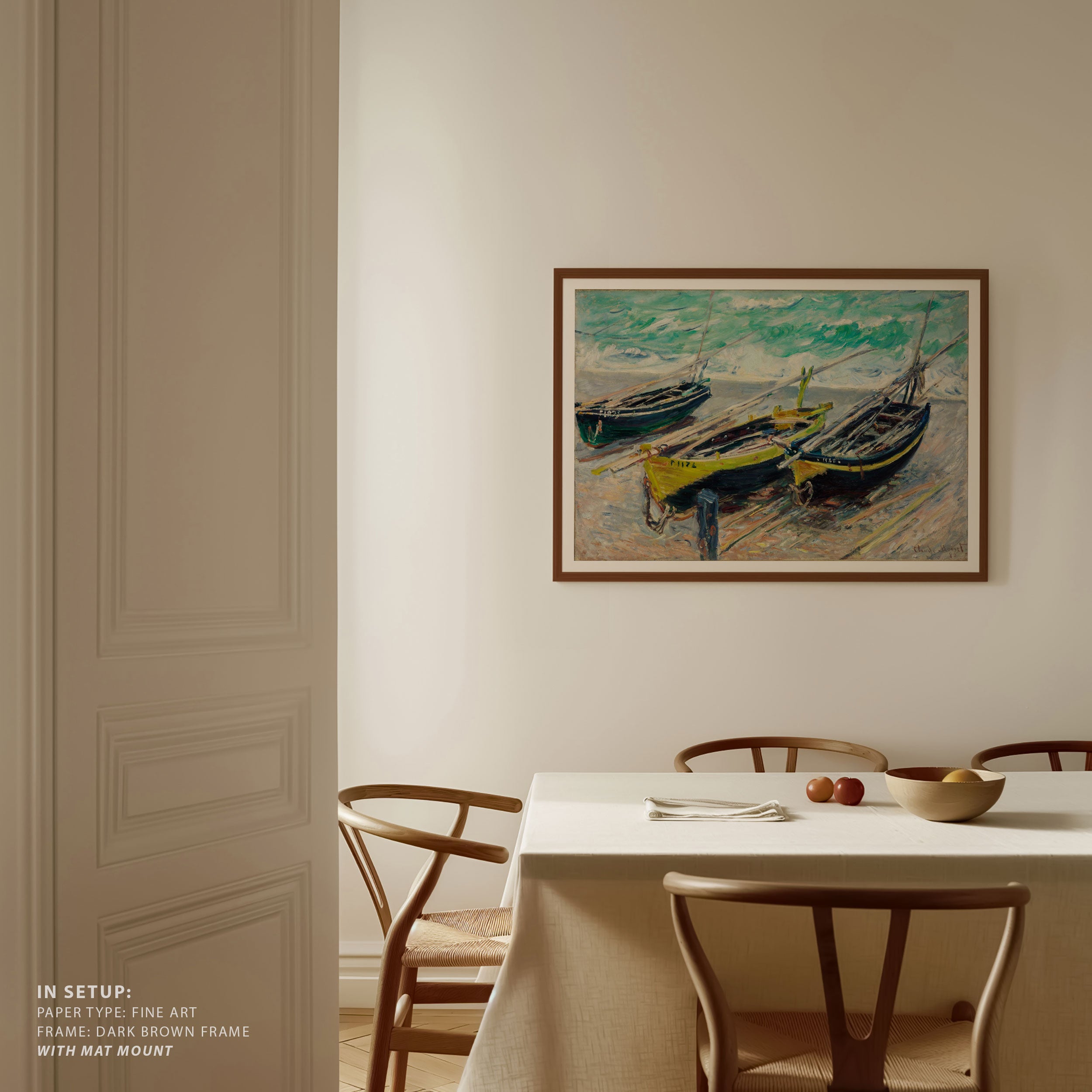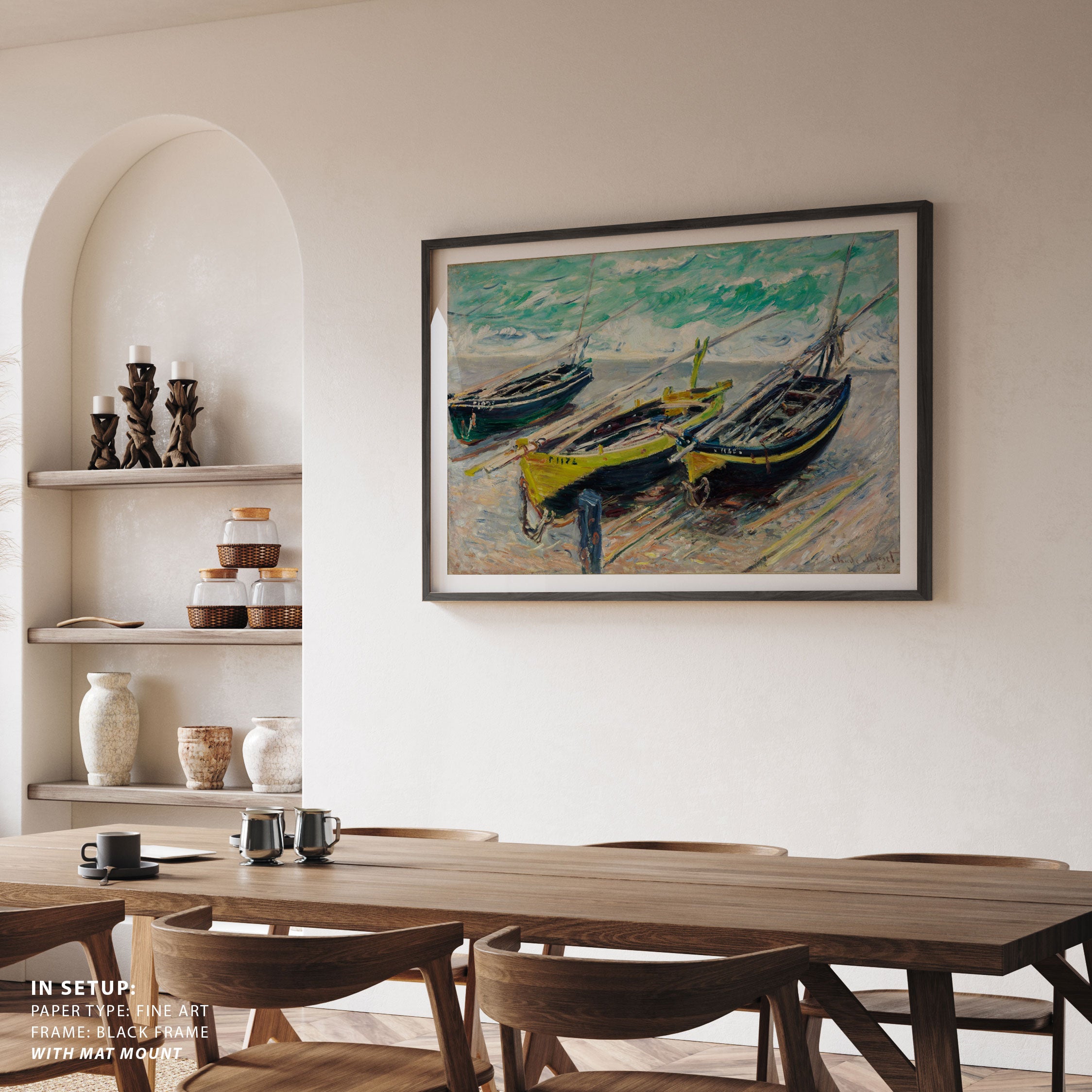 Bring elegance and harmony into your space with this beautiful artwork, The Three Fishing Boatst, from our Impressionist Fine Art collection. Inspired by the timeless vision of Claude Monet, this piece features a serene blend of natural light, soft colors, and expressive brushstrokes adding a peaceful and sophisticated touch to any interior.