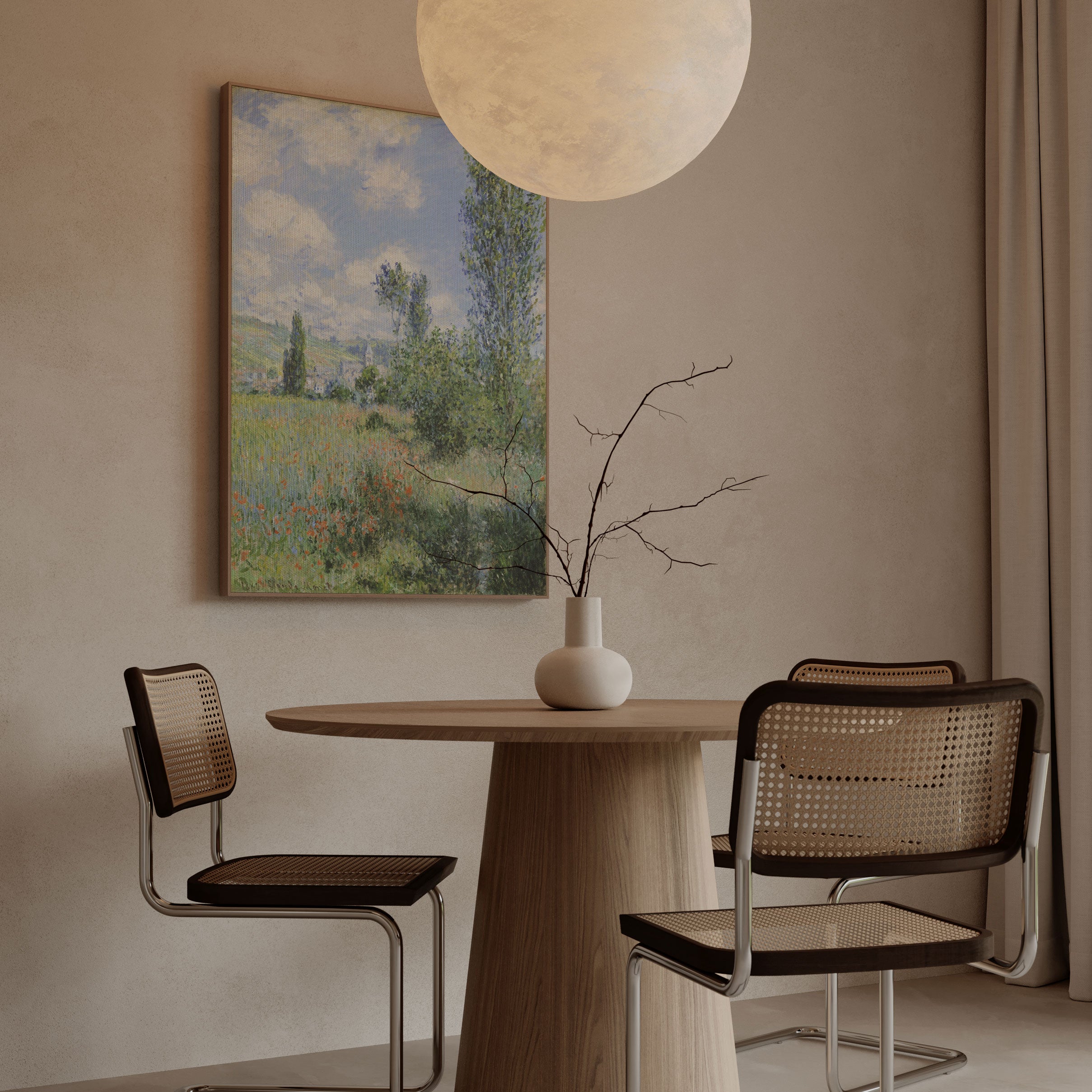 Bring elegance and harmony into your space with this beautiful artwork, The View of Vétheuil 01, from our Fine Art collection. Inspired by the timeless vision of Monet, this piece reveals a serene interplay of natural light, soft color transitions, and expressive brushstrokes that capture the essence of a fleeting moment. Its gentle textures and luminous atmosphere add a peaceful and sophisticated touch to any interior, enriching your space with the quiet poetry of this iconic artistic style.