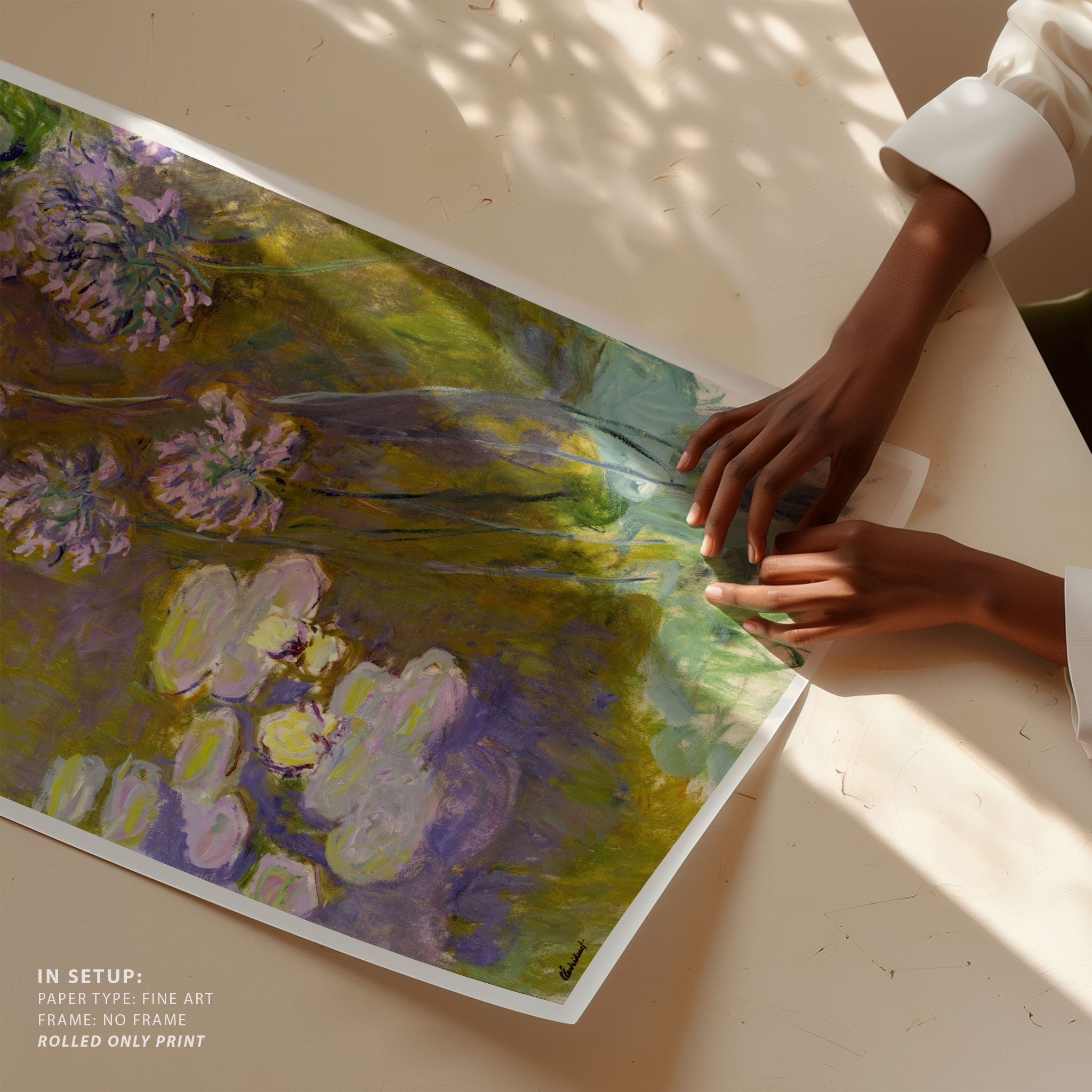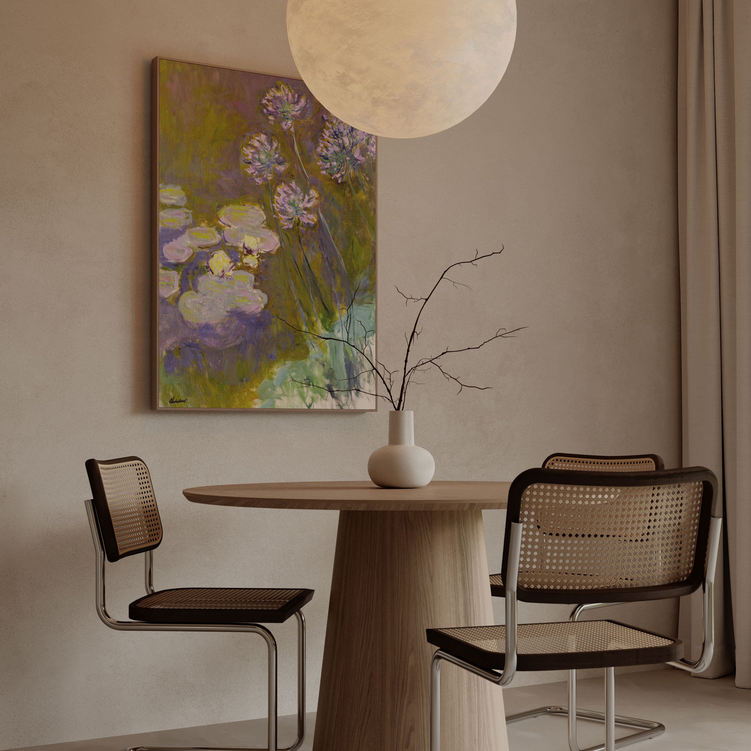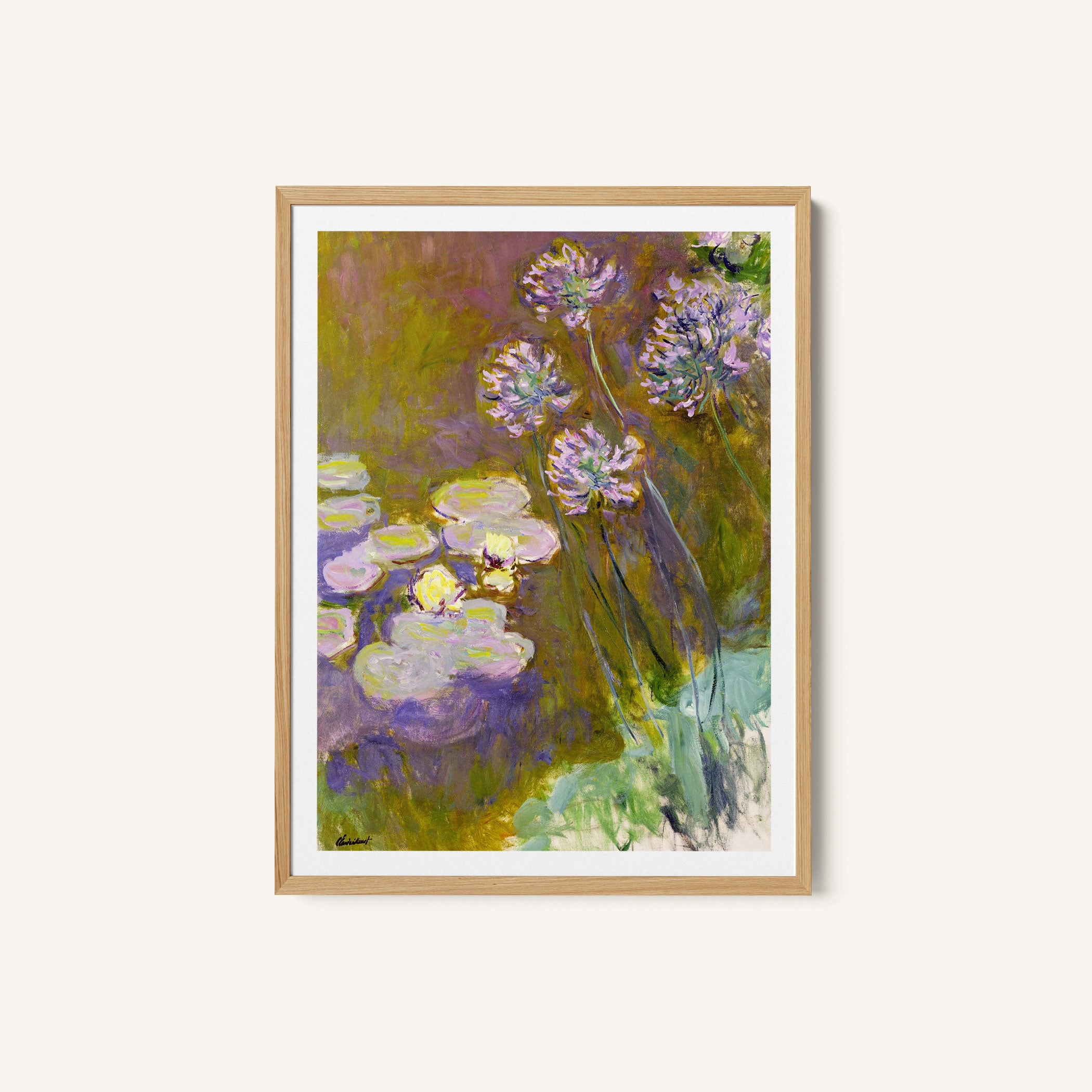 Bring elegance and harmony into your space with this beautiful artwork, The Water Lilies and Agapanthus 1923, from our Fine Art collection. Inspired by the timeless vision of Monet, this piece reveals a serene interplay of natural light, soft color transitions, and expressive brushstrokes that capture the essence of a fleeting moment. Its gentle textures and luminous atmosphere add a peaceful and sophisticated touch to any interior, enriching your space with the quiet poetry of this iconic artistic style.
