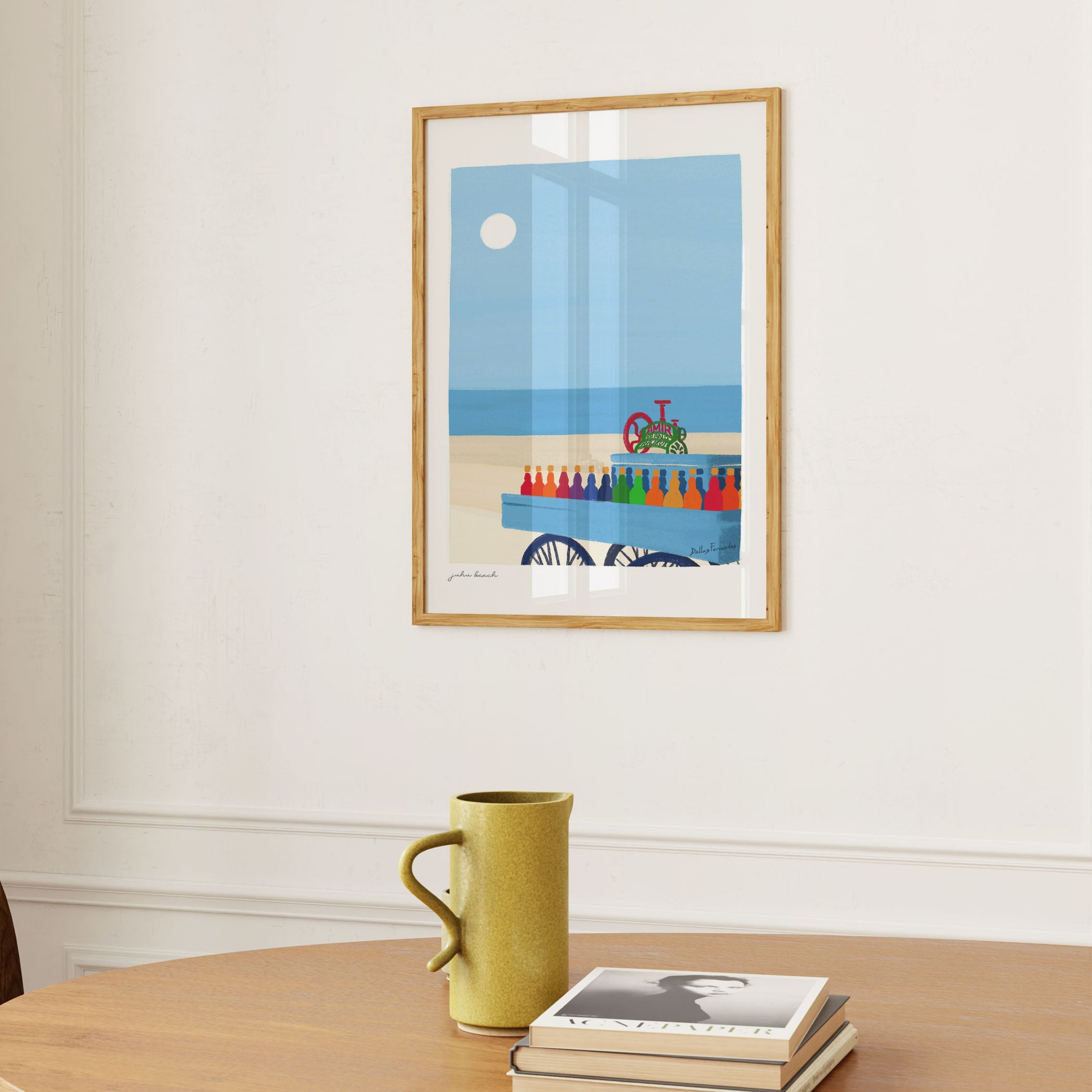 Bring refined nostalgia and urban elegance into your space with this beautiful artwork, Bombay Postcards Juhu Beach 02, from our Dallas Fernandes Art Prints Collection. This distinctive art style highlights iconic cityscapes, celebrated landmarks, coastal views, architectural marvels, and everyday urban moments through balanced compositions, muted yet expressive color palettes, and a refined vintage poster aesthetic. Blending modern illustration with classic travel-art charm, each piece captures the spirit of the city, evoking memories, movement, and visual storytelling. Perfect for living rooms, bedrooms, offices, studios, cafés, and contemporary interiors, this curated city-inspired wall art adds character, sophistication, and a timeless cultural narrative to any space.