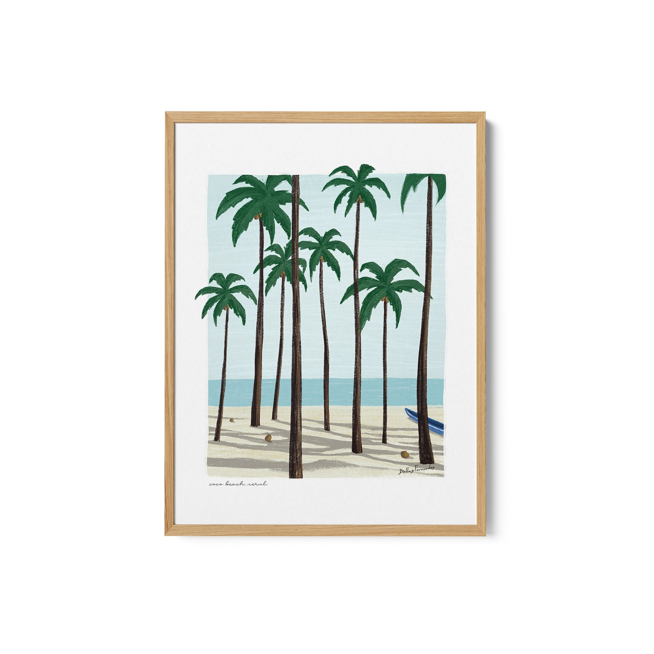 Bring refined nostalgia and urban elegance into your space with this beautiful artwork, Goa Postcards Coco Beach, from our Dallas Fernandes Art Prints Collection. This distinctive art style highlights iconic cityscapes, celebrated landmarks, coastal views, architectural marvels, and everyday urban moments through balanced compositions, muted yet expressive color palettes, and a refined vintage poster aesthetic. Blending modern illustration with classic travel-art charm, each piece captures the spirit of the city, evoking memories, movement, and visual storytelling. Perfect for living rooms, bedrooms, offices, studios, cafés, and contemporary interiors, this curated city-inspired wall art adds character, sophistication, and a timeless cultural narrative to any space.