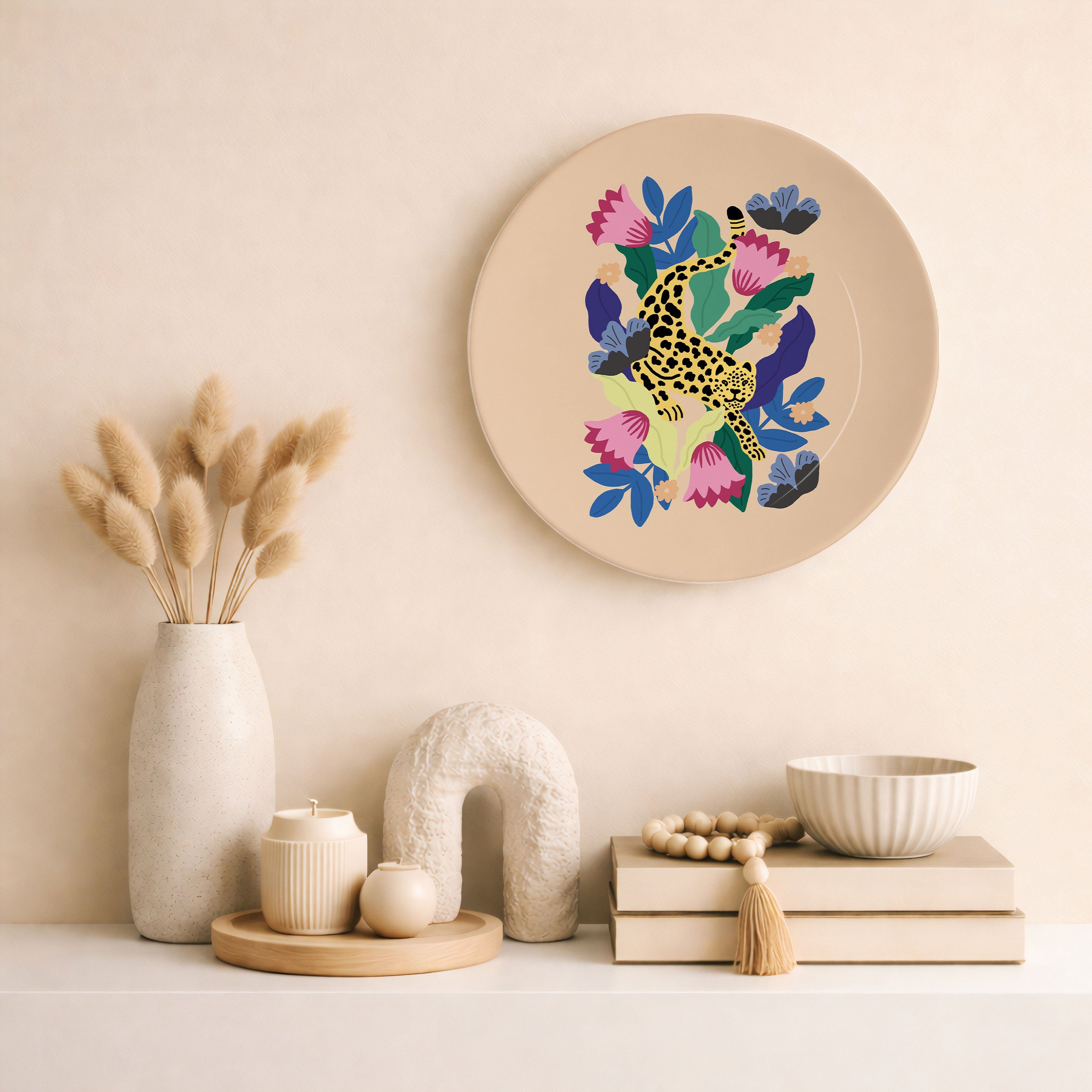 Add a bold and artistic vibe to your living space with this stylish decorative ceramic plate. Floral Leopard from our Decorative Art Plates Collection, features a striking, design-forward aesthetic with graphic detailing and vibrant color play. The bold yet elegant tone fits perfectly with today’s trending home and wall décor styles seamlessly blending into modern interiors, artful arrangements, or curated gallery walls.