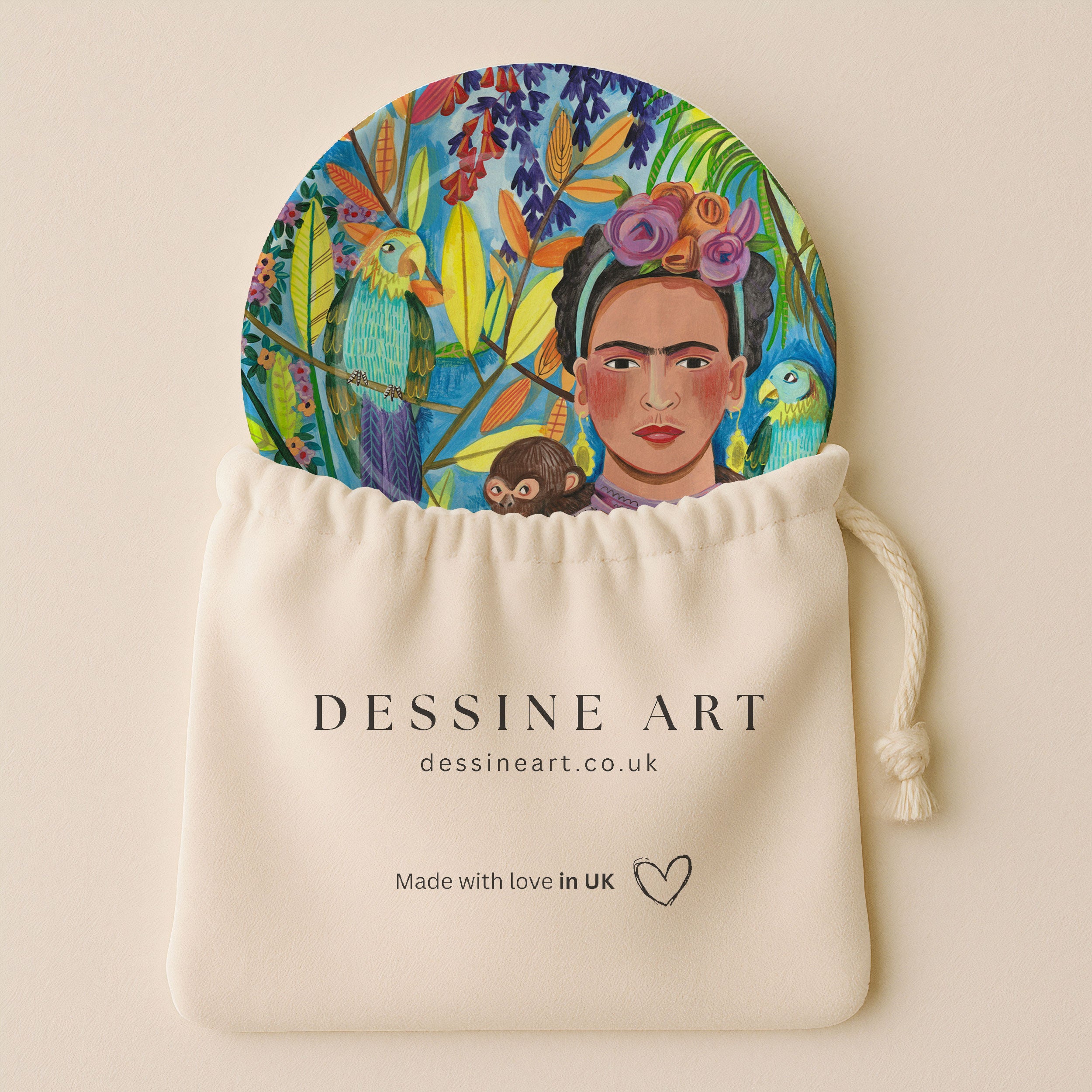 Add a bold and artistic vibe to your living space with this stylish decorative ceramic plate. Frida and her Parrots from our Decorative Art Plates Collection, features a striking, design-forward aesthetic with graphic detailing and vibrant color play. The bold yet elegant tone fits perfectly with today’s trending home and wall décor styles seamlessly blending into modern interiors, artful arrangements, or curated gallery walls.