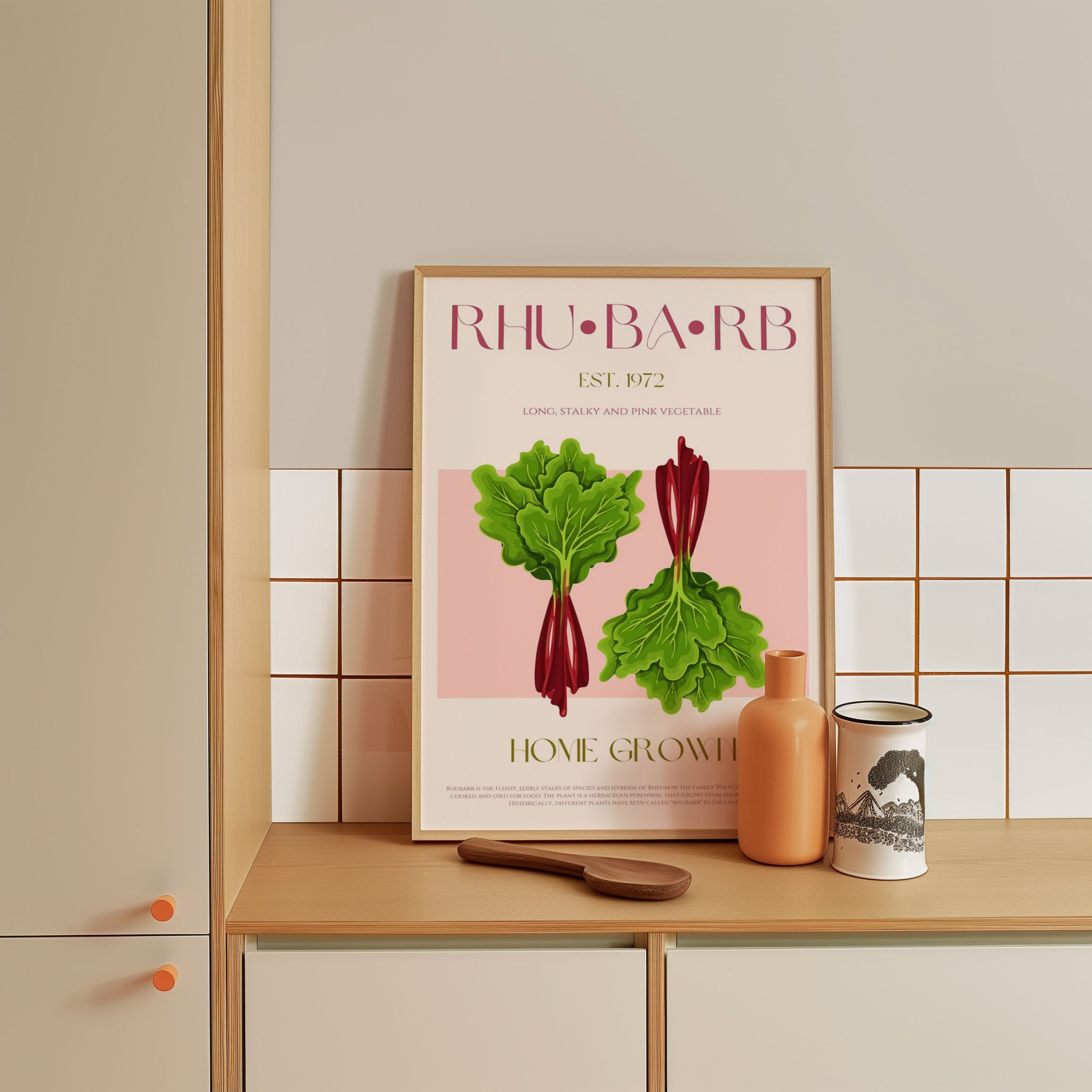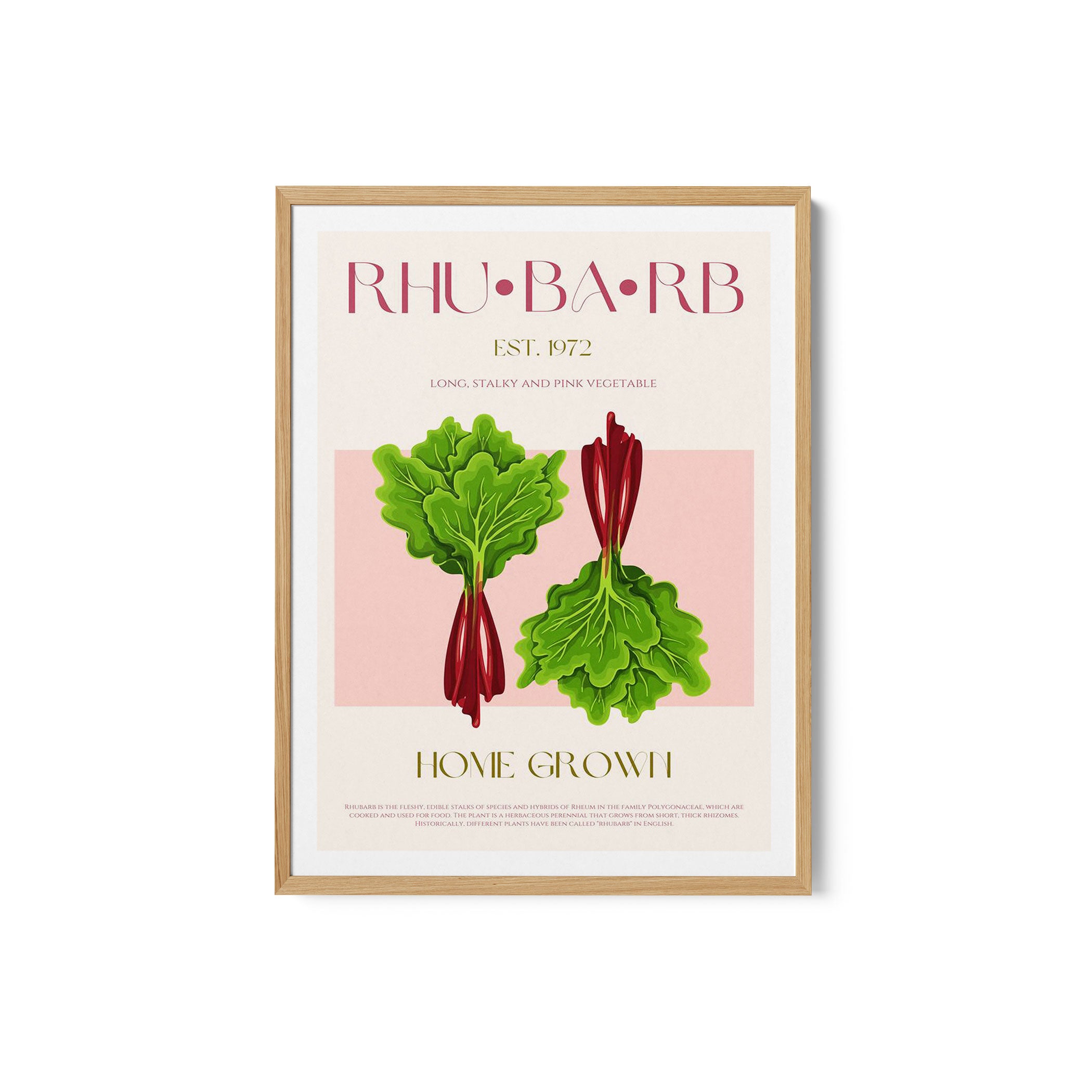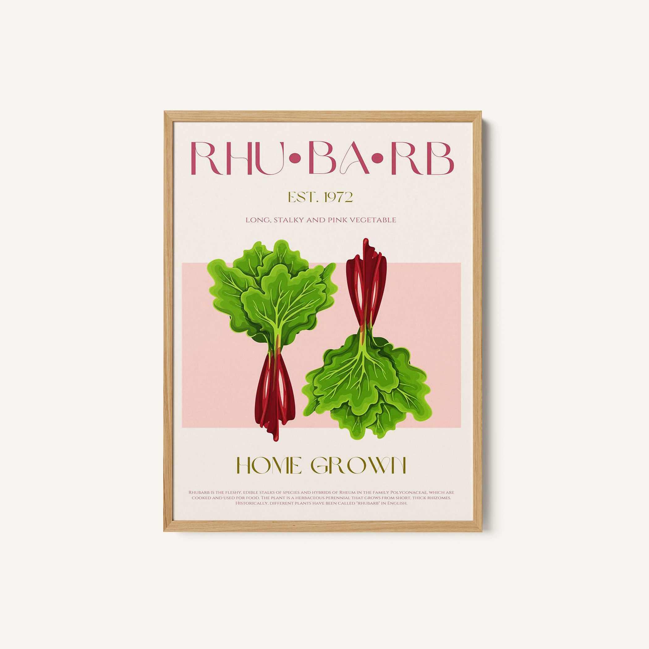 Illustrated Rhubarb With Vibrant Pink Stalks