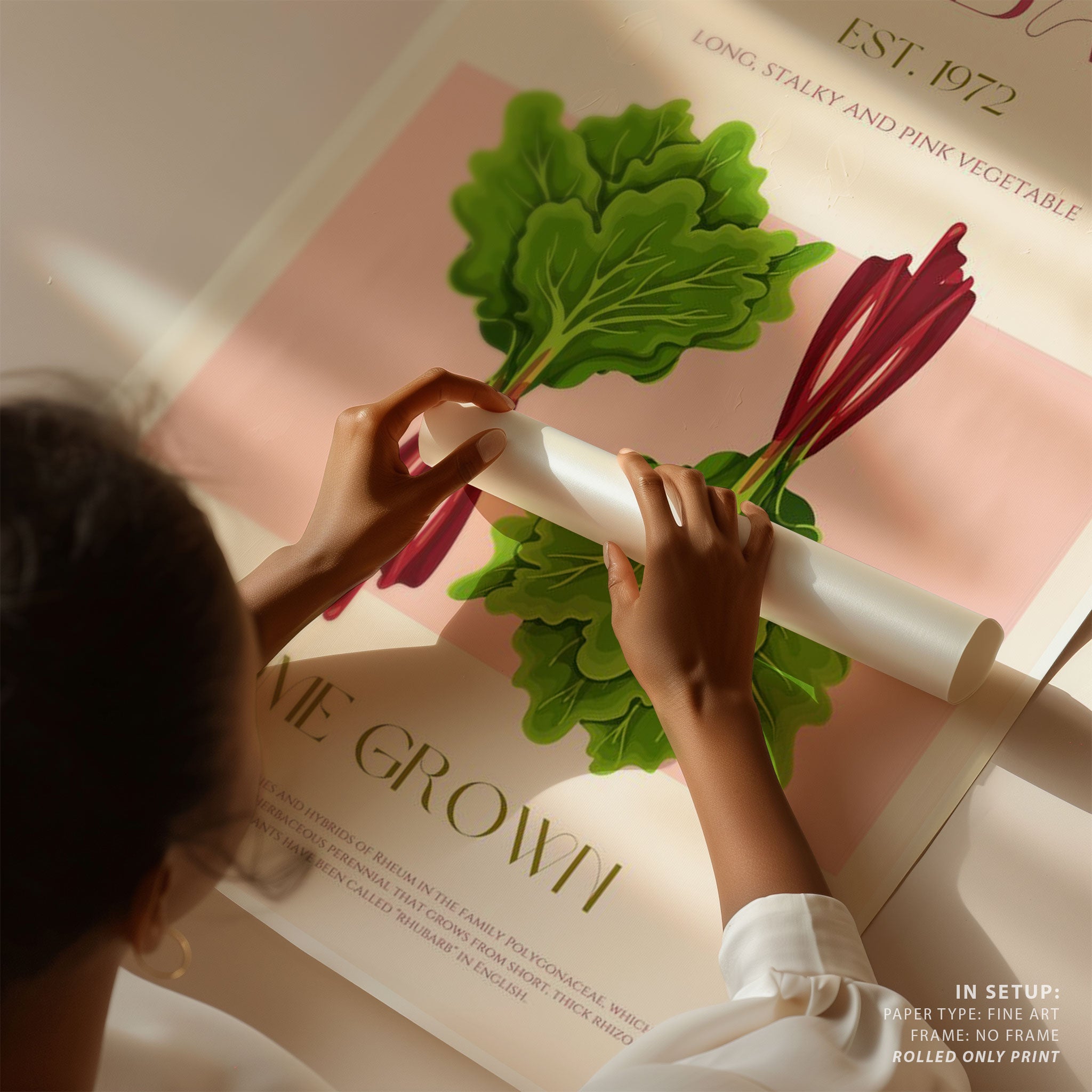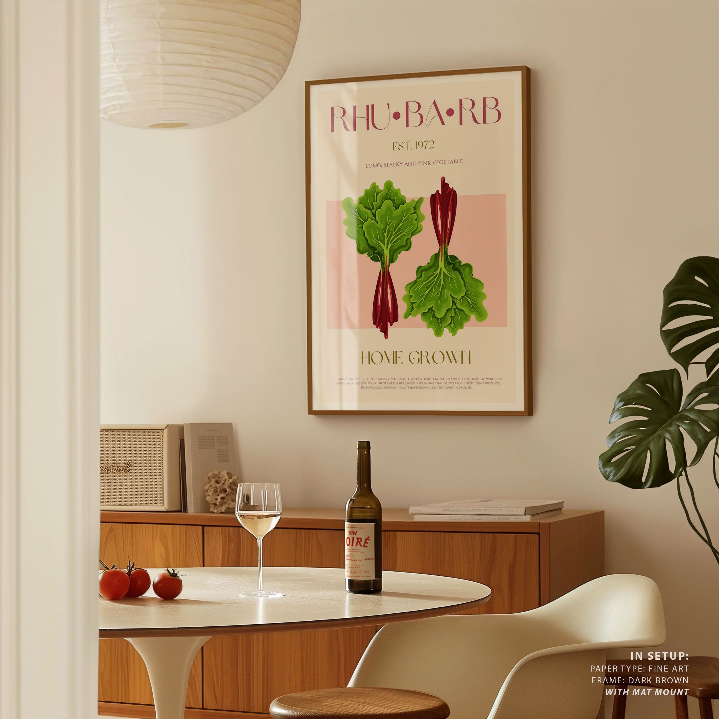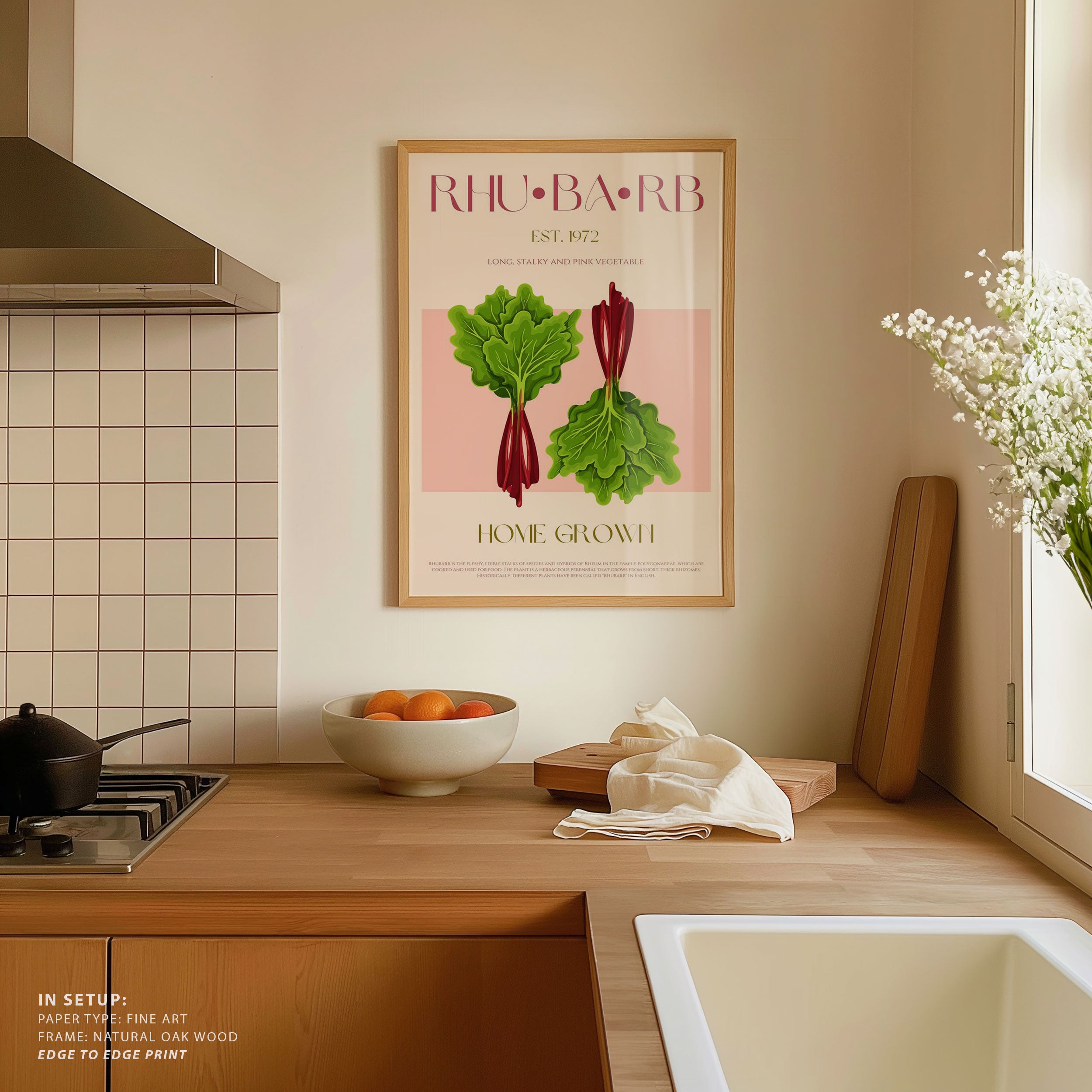 Illustrated Rhubarb With Vibrant Pink Stalks