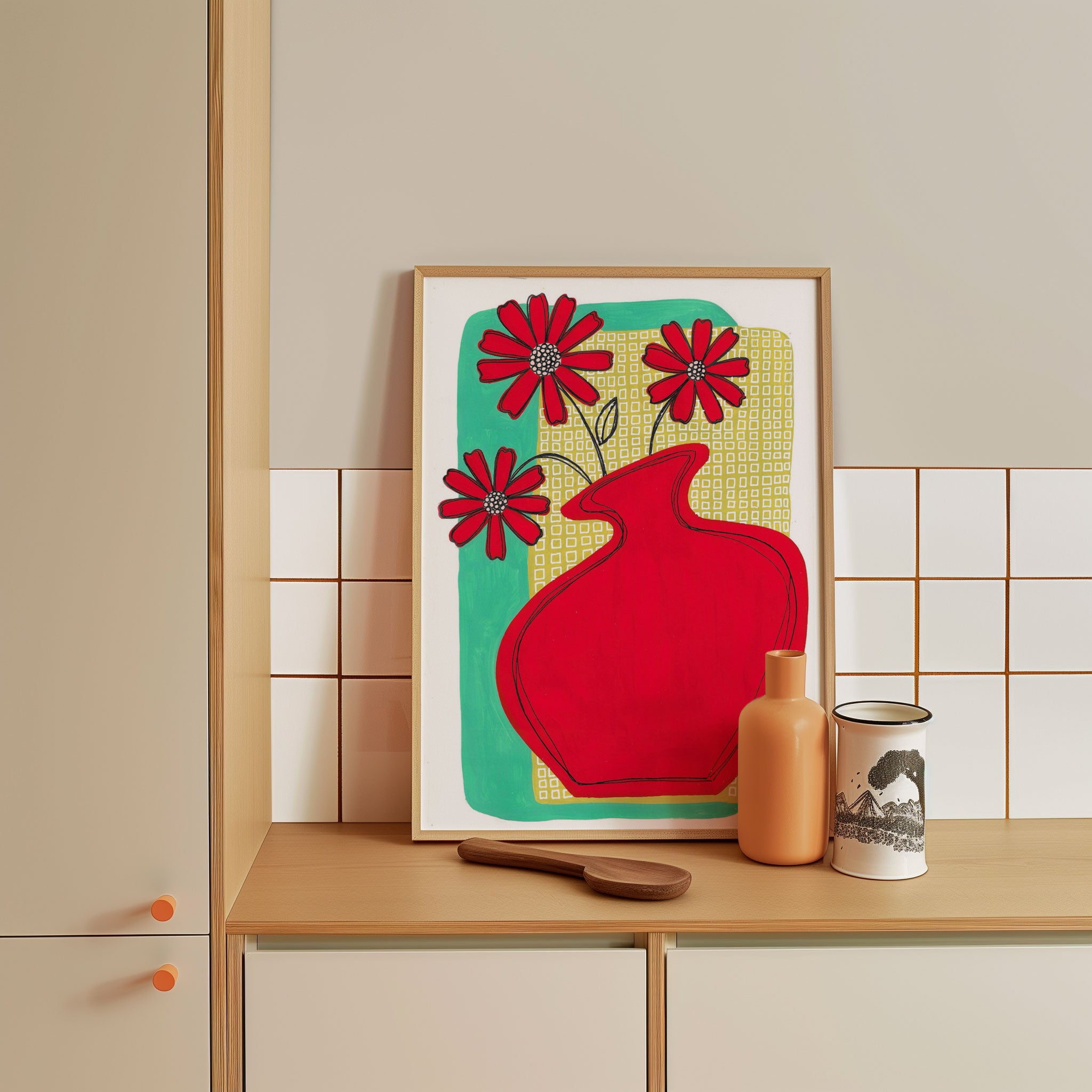 Abstract art prints use the visual language of colour, form, line, and shape to create striking artworks that go beyond realism. Free from literal representation, dining room abstract art prints invite you and your guests to connect emotionally and interpret meaning in a personal way.