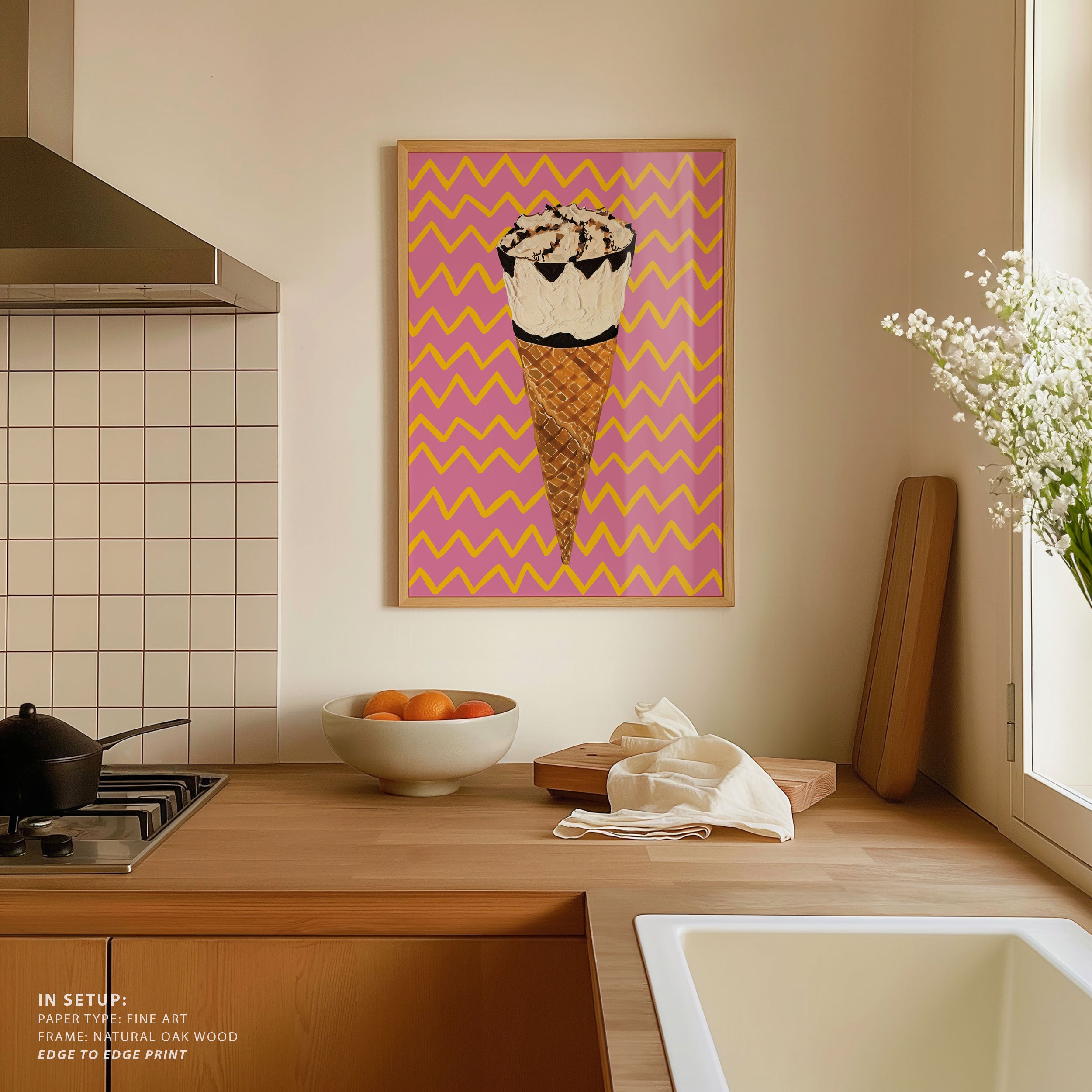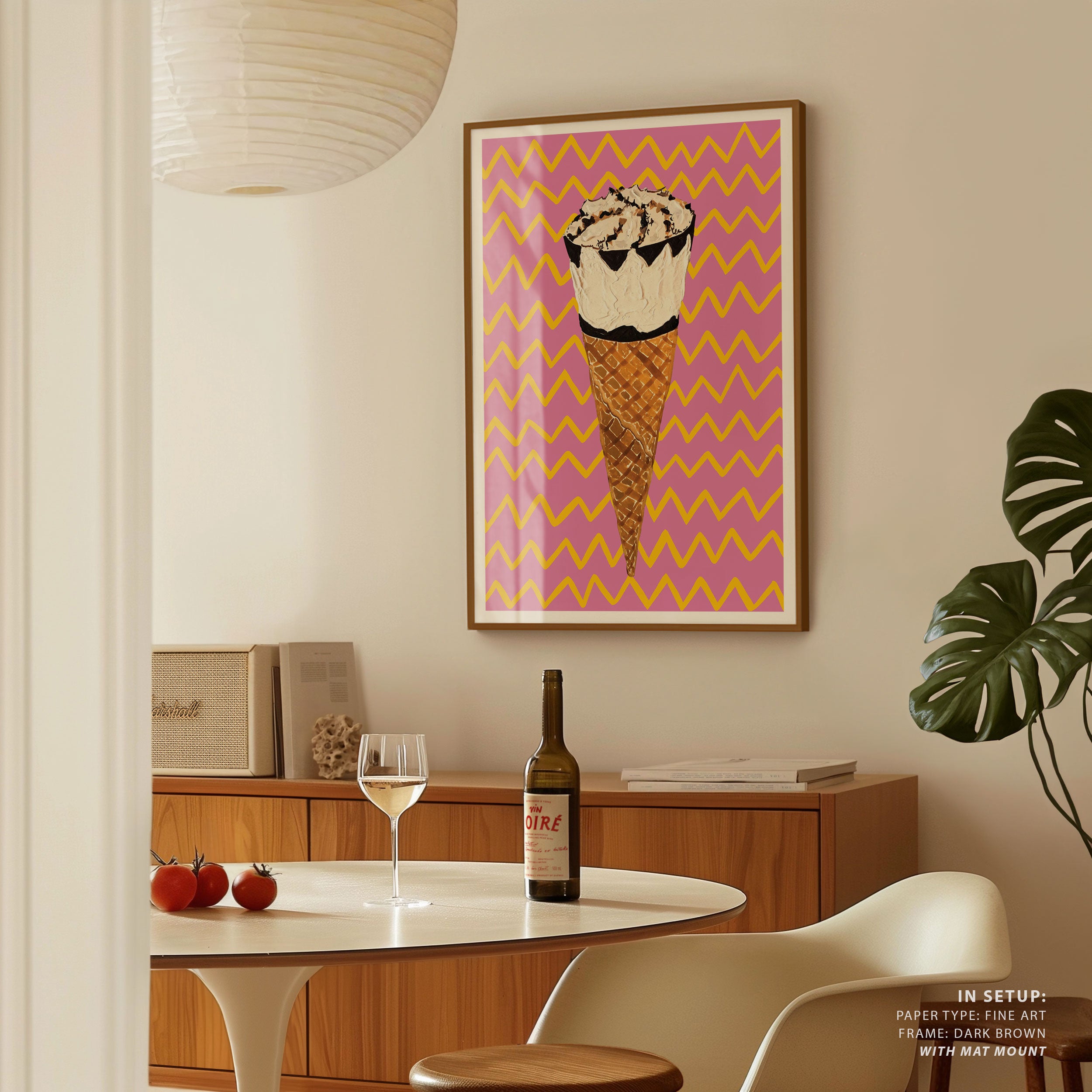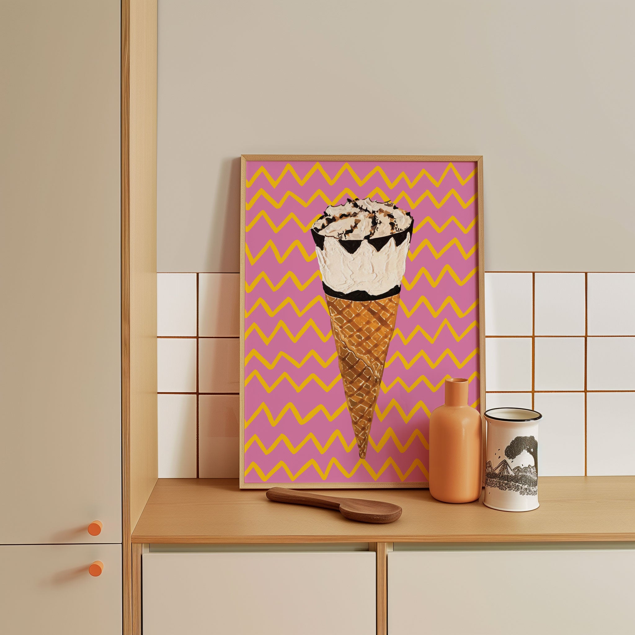 Turn your kitchen or café into a haven of slow mornings and gentle ambiance with this trendy wall art print. Cornetto Pink from our Kitchen and Café Art Prints Collection, featuring clean, pop-art‑style typography. The playful yet graphic design tone fits right in with today’s trending food‑and‑drink decor, matching lines of witty kitchen quotes and minimal illustrations that instantly tell you this is all about coffee, tea or juice.