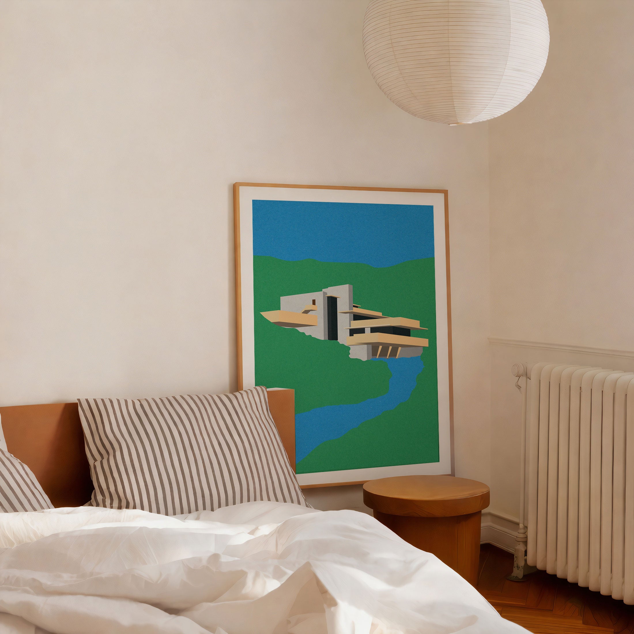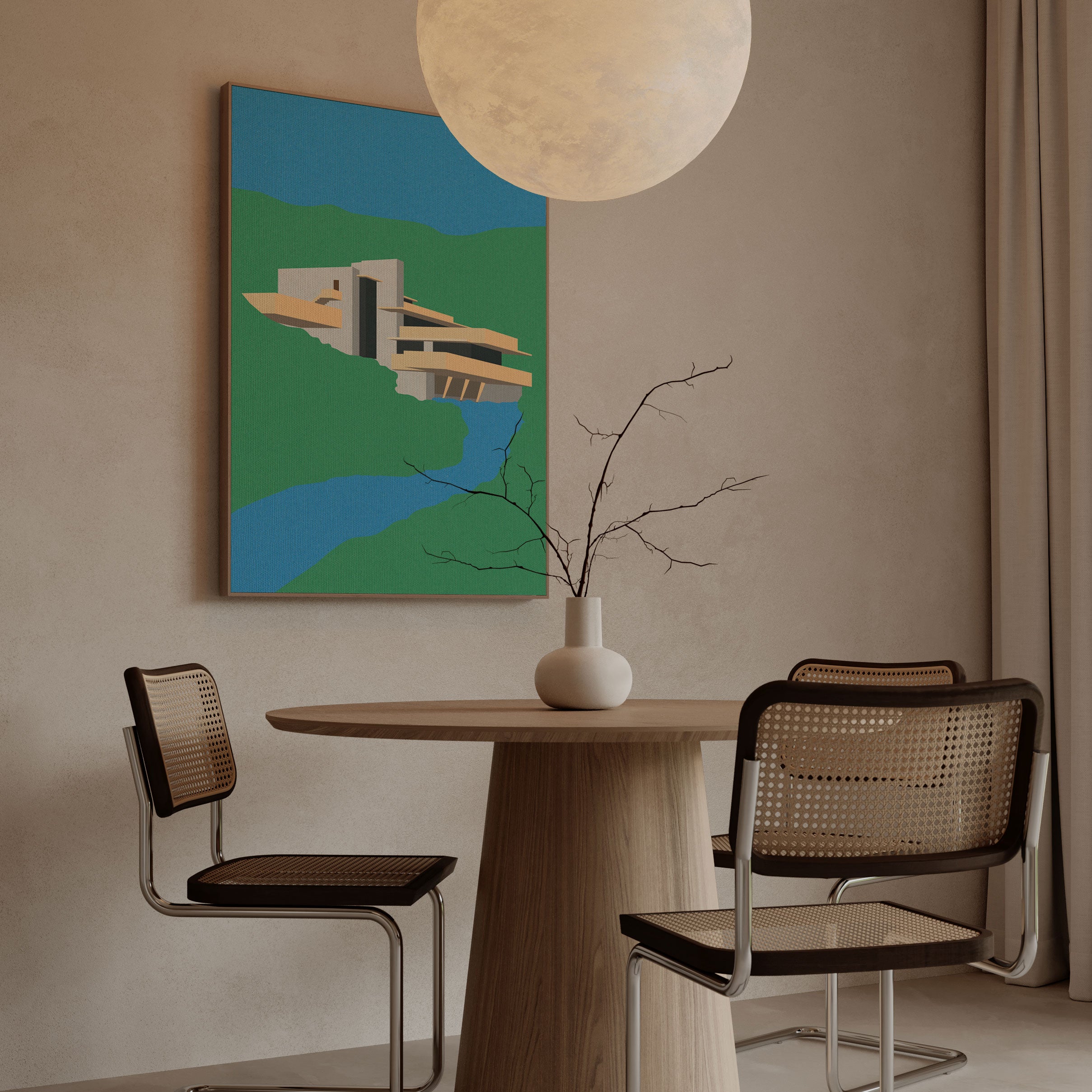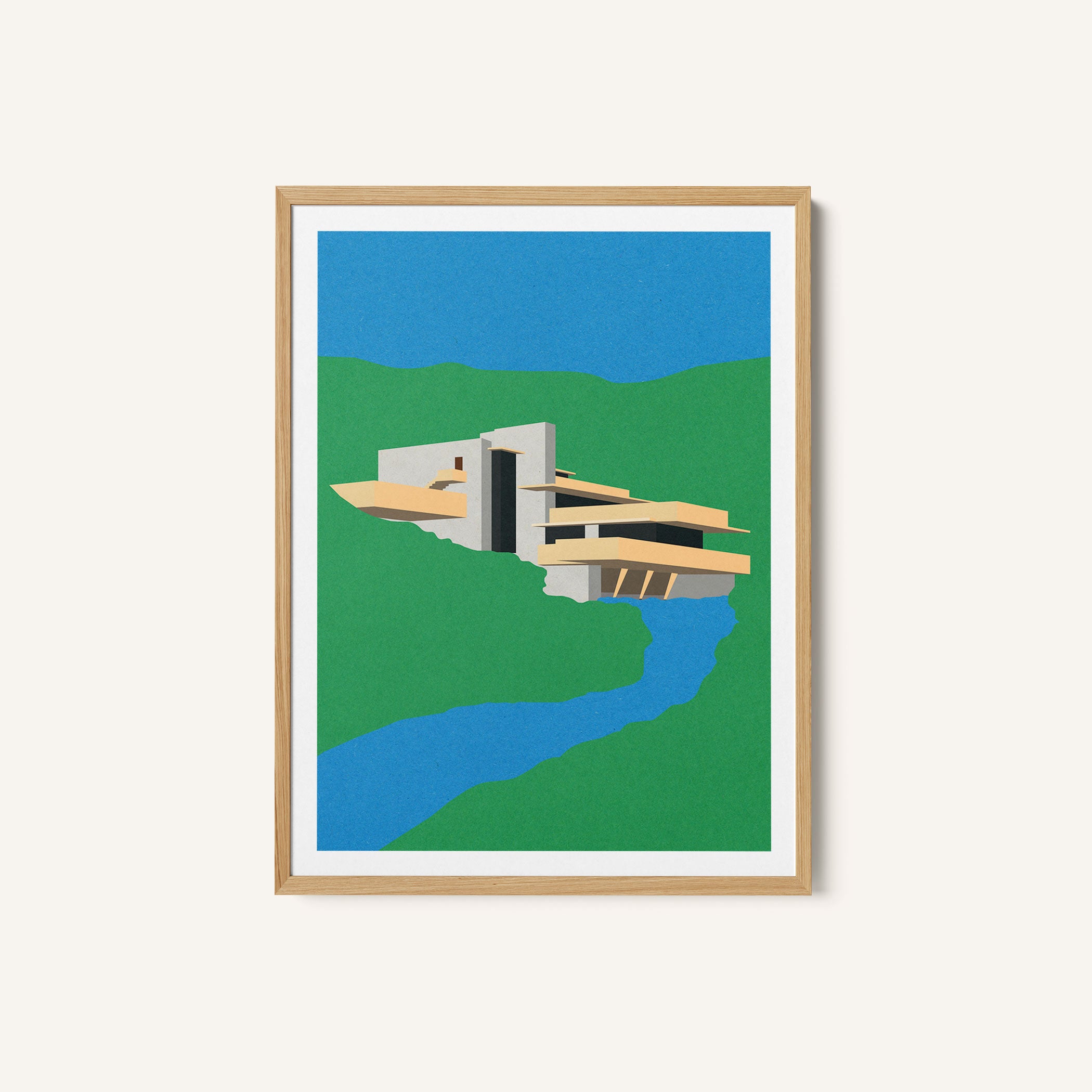 Elevate modern interiors with refined visual storytelling and bold artistic expression in this captivating artwork, Frank Loyd Wright Falling Water, from our Rosi Feist Art Prints Collection. Designed to celebrate surreal visual art and contemporary collage aesthetics, this artwork blends dreamlike landscapes, symbolic human figures, and poetic contrasts to create a striking yet harmonious visual presence. Rooted in modern artistic expression, it adds depth, emotion, and creative intrigue to modern, eclectic, and art-inspired interiors.