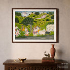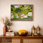 Bring elegance and cultural harmony into your space with this beautiful artwork, Homecoming of Krishna to Braj, from our Classical Indian Art Collection. Rooted in India’s rich classical and miniature painting traditions, this artwork showcases expressive figures, symbolic motifs, ornate architectural details, and serene natural landscapes, all rendered with refined craftsmanship and thoughtful precision. Its narrative depth and decorative richness make it ideal for traditional, heritage, eclectic, and contemporary interiors, adding warmth, character, and a timeless sense of history and storytelling to every interior.