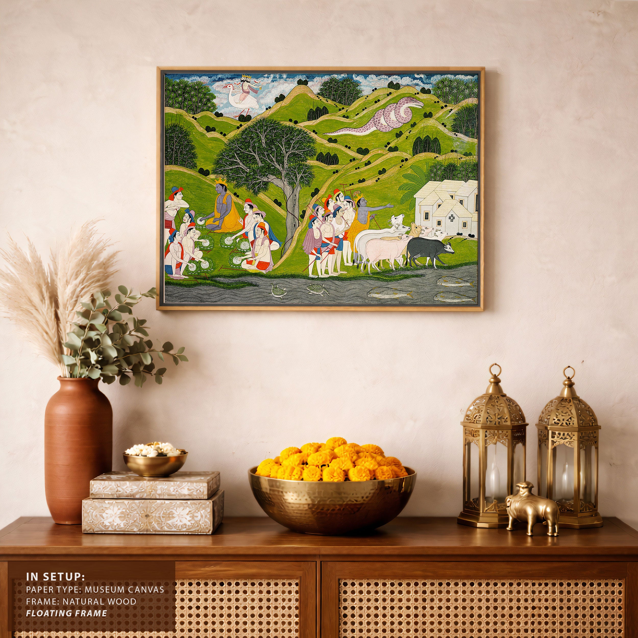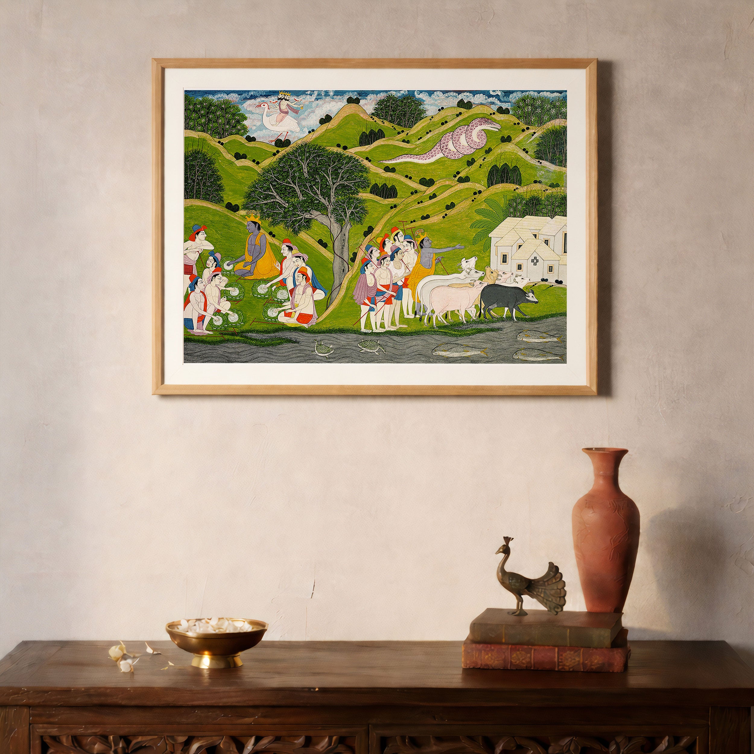 Through meticulous brushwork, balanced composition, and a sophisticated interplay of color and form, Indian Tales artworks convey emotion, rhythm, and layered narratives inspired by mythology, folklore, and everyday life. Each piece invites mindful contemplation, encouraging viewers to pause and engage with subtle expressions, gentle movement, and harmonious settings that celebrate presence, reflection, and the enduring poetry of India’s artistic legacy.