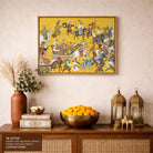 Bring elegance and cultural harmony into your space with this beautiful artwork, King Dasaratha Ramayana, from our Classical Indian Art Collection. Rooted in India’s rich classical and miniature painting traditions, this artwork showcases expressive figures, symbolic motifs, ornate architectural details, and serene natural landscapes, all rendered with refined craftsmanship and thoughtful precision. Its narrative depth and decorative richness make it ideal for traditional, heritage, eclectic, and contemporary interiors, adding warmth, character, and a timeless sense of history and storytelling to every interior.