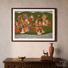 Bring elegance and cultural harmony into your space with this beautiful artwork, Krishna Painting Playing Music from Harivamsa, from our Classical Indian Art Collection. Rooted in India’s rich classical and miniature painting traditions, this artwork showcases expressive figures, symbolic motifs, ornate architectural details, and serene natural landscapes, all rendered with refined craftsmanship and thoughtful precision. Its narrative depth and decorative richness make it ideal for traditional, heritage, eclectic, and contemporary interiors, adding warmth, character, and a timeless sense of history and storytelling to every interior.