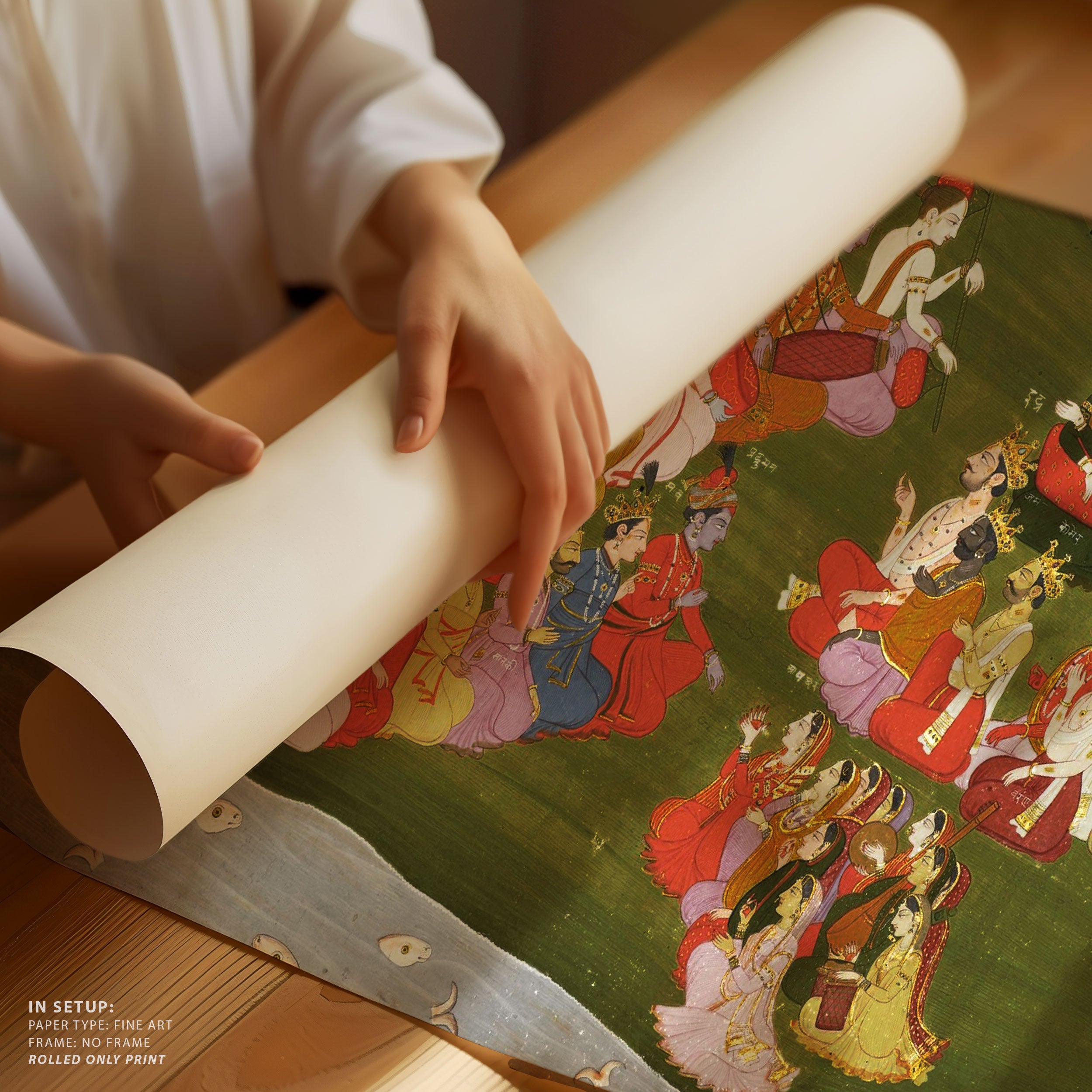Through meticulous brushwork, balanced composition, and a sophisticated interplay of color and form, Indian Tales artworks convey emotion, rhythm, and layered narratives inspired by mythology, folklore, and everyday life. Each piece invites mindful contemplation, encouraging viewers to pause and engage with subtle expressions, gentle movement, and harmonious settings that celebrate presence, reflection, and the enduring poetry of India’s artistic legacy.