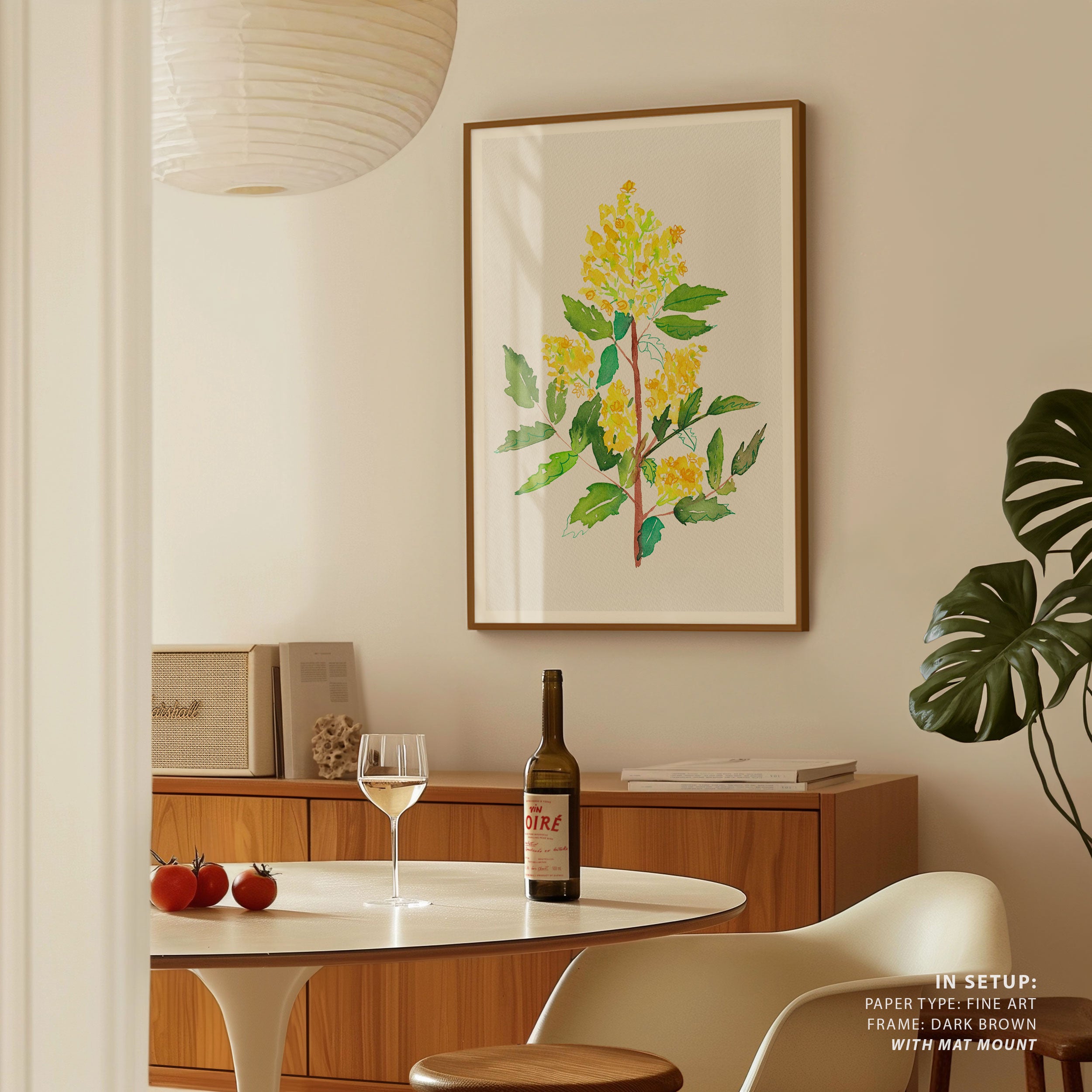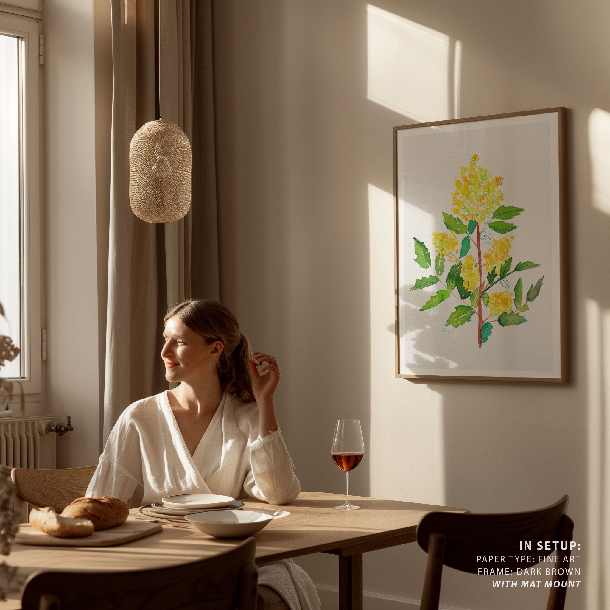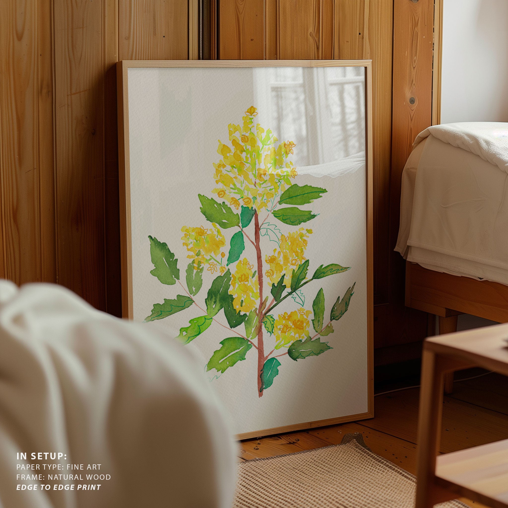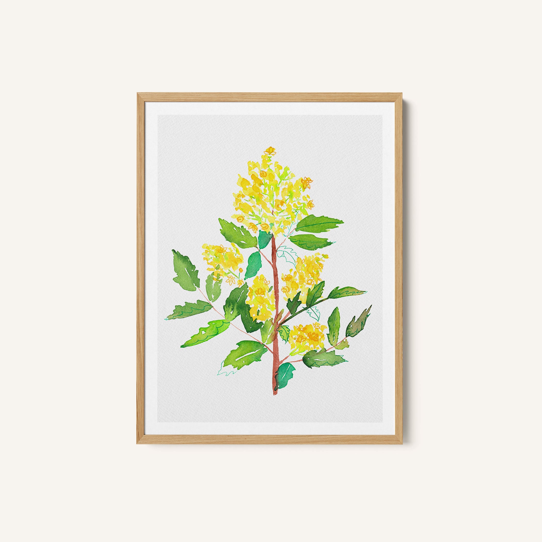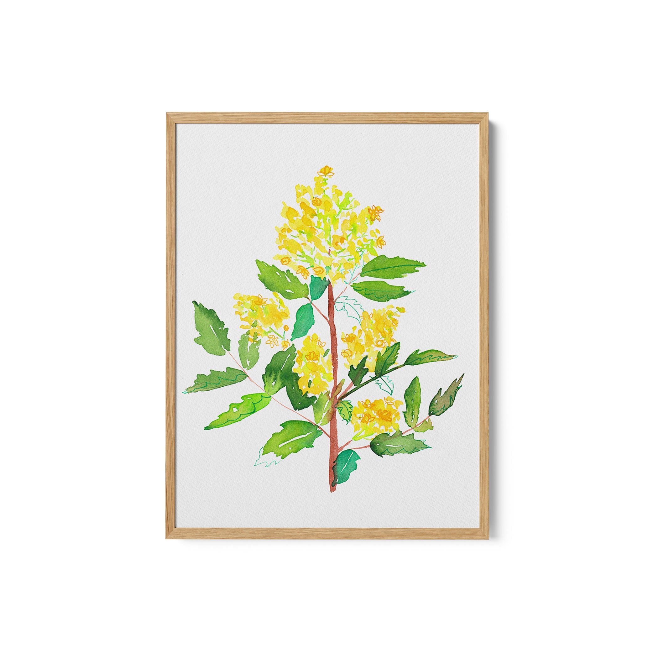 Elevate your space with the serene beauty of nature’s blooms. This art print, A Oregon Grape or Mahonia Aquifolium Botanical Painting 02, from our Botanical Art Print Collection celebrates organic forms and botanical grace, layering lush floral tones in a carefully curated palette that brings a calm, natural vibrancy to any room. Bring the gentle elegance of nature into your space with this captivating art print.