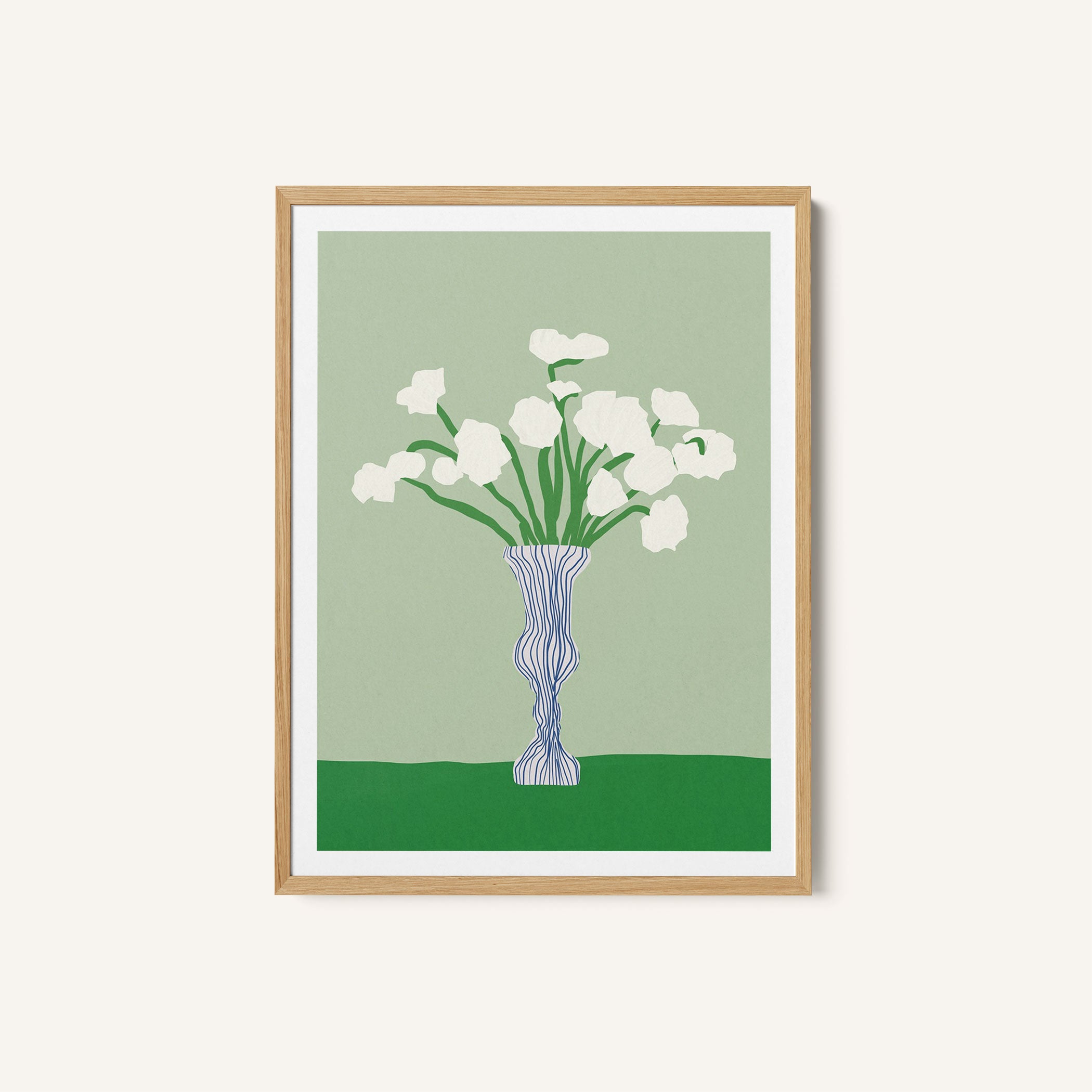 Green Background Porcelain White Flowers