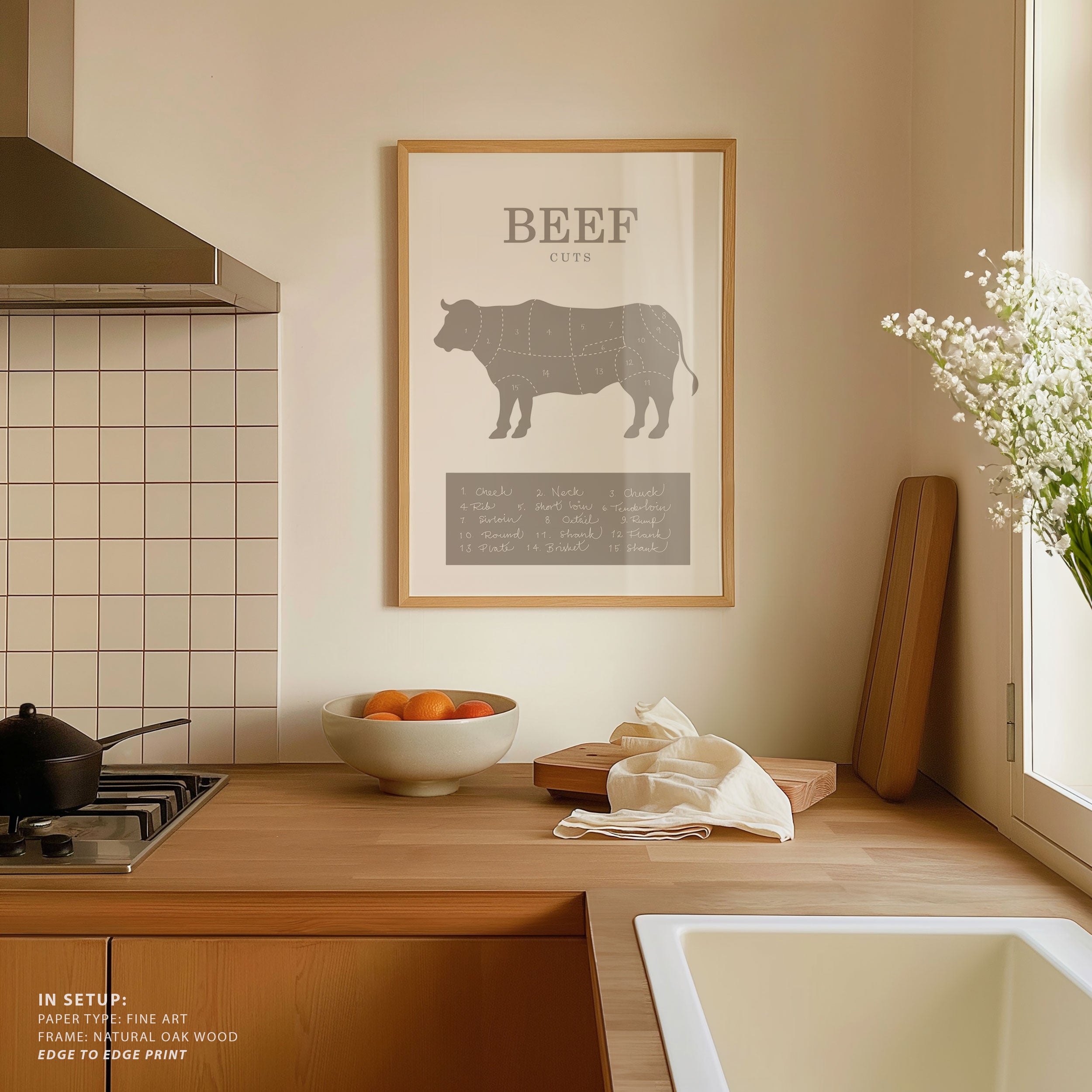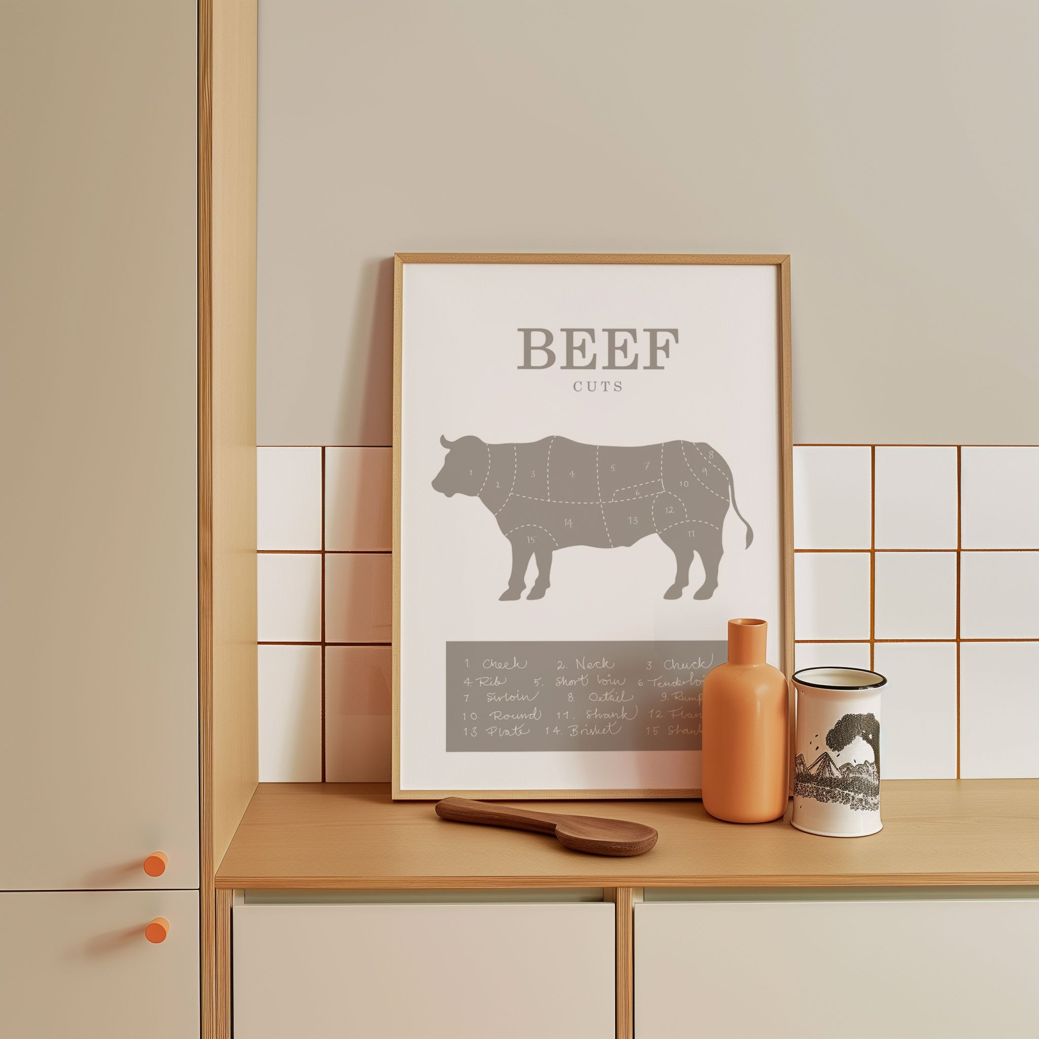 Turn your kitchen or café into a haven of slow mornings and gentle ambiance with this trendy wall art print. Beef Cuts from our Kitchen and Café Art Prints Collection, featuring clean, pop-art‑style typography. The playful yet graphic design tone fits right in with today’s trending food‑and‑drink decor, matching lines of witty kitchen quotes and minimal illustrations that instantly tell you this is all about coffee, tea or juice.