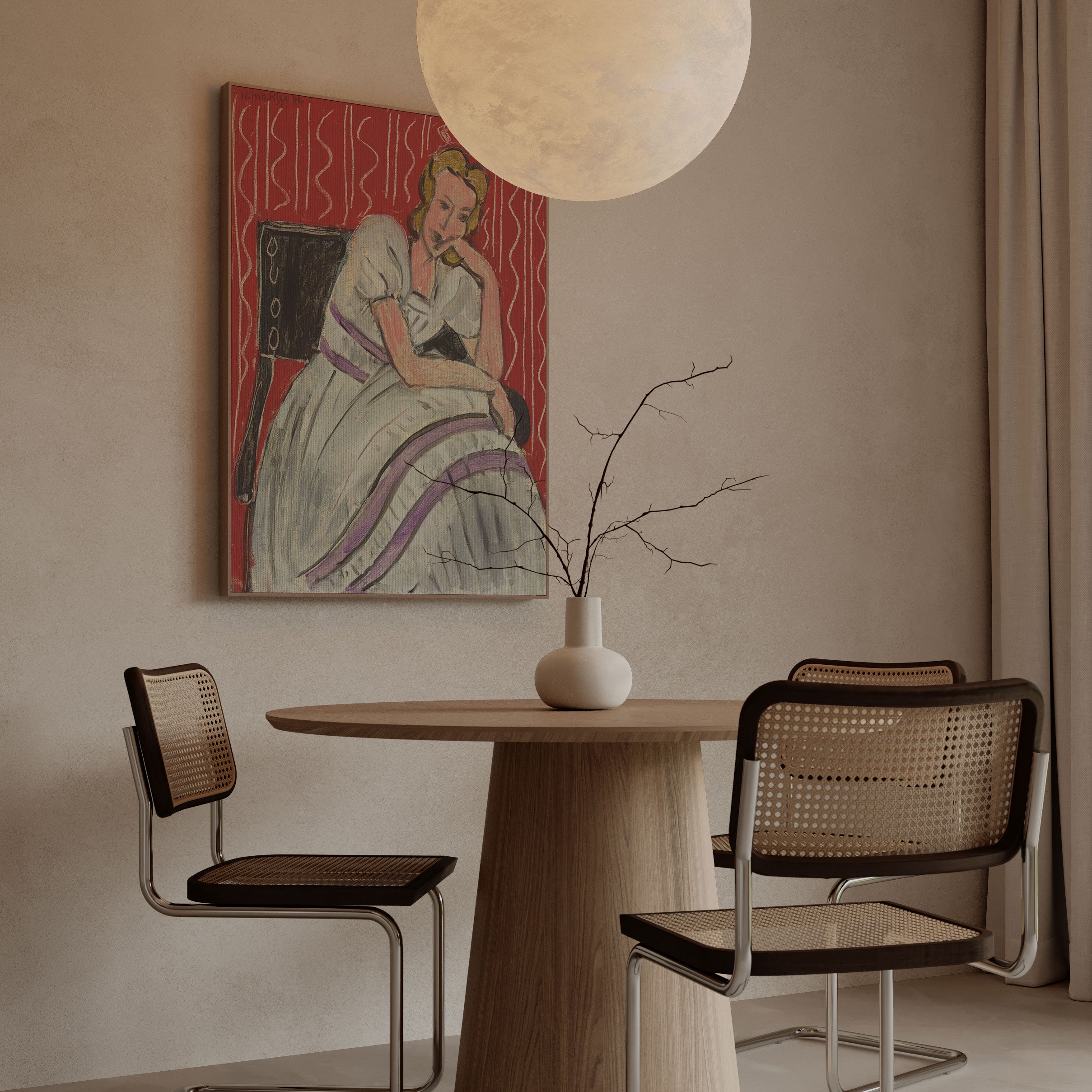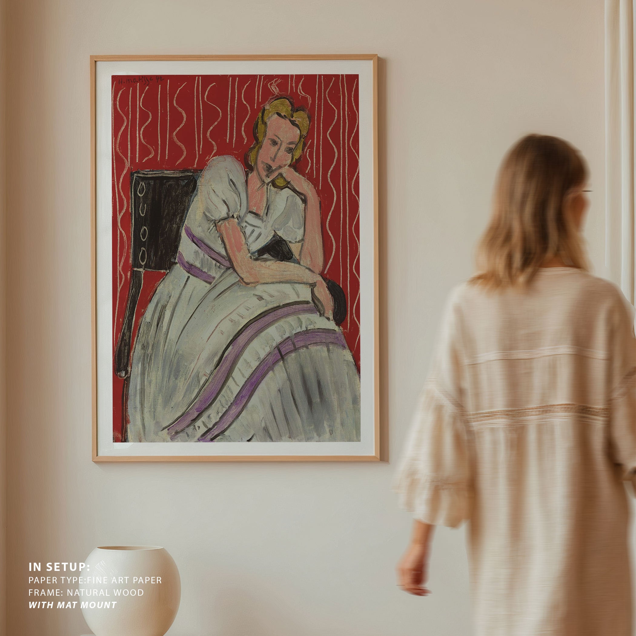 Bring elegance and harmony into your space with this beautiful artwork, Gray Dress with Violet Stripes 1942, from our Henri Matisse Art collection. This piece reveals a quiet yet compelling interplay of deep tones, soft contours, and expressive brushwork that conveys both intimacy and strength. Its gentle contrasts and inviting atmosphere bring a refined and contemplative touch to any interior, enriching your space with the timeless poetry of this iconic artistic style.