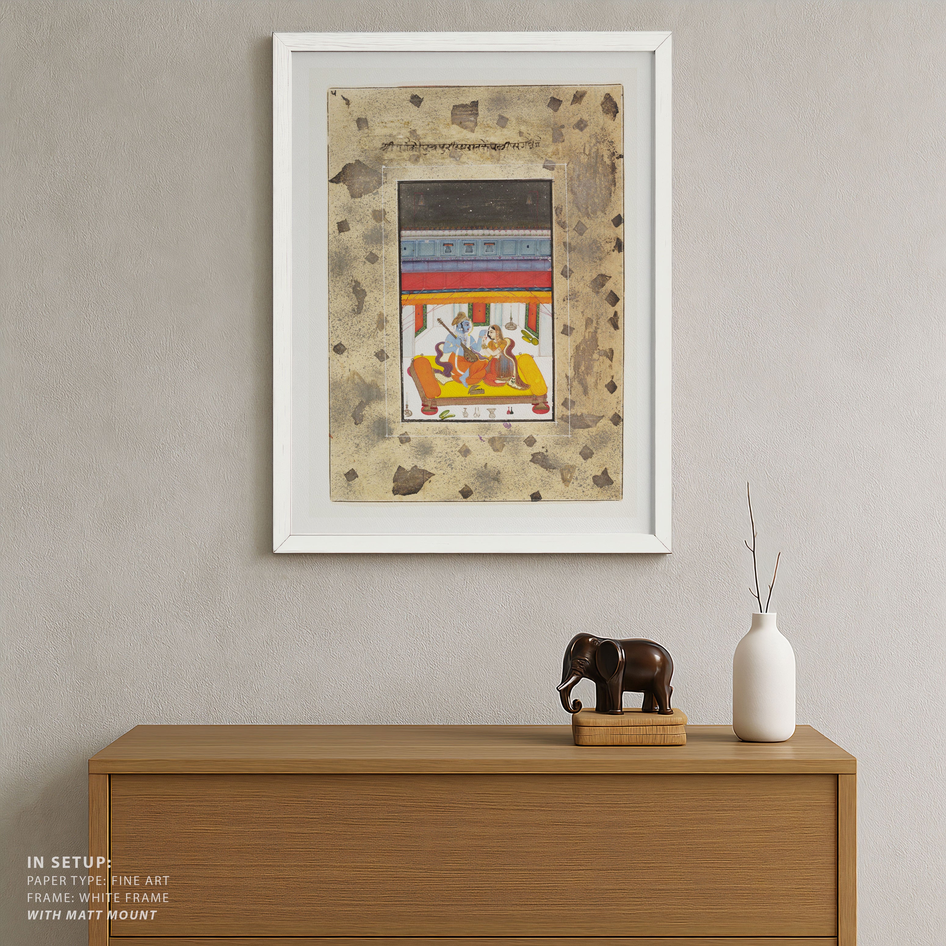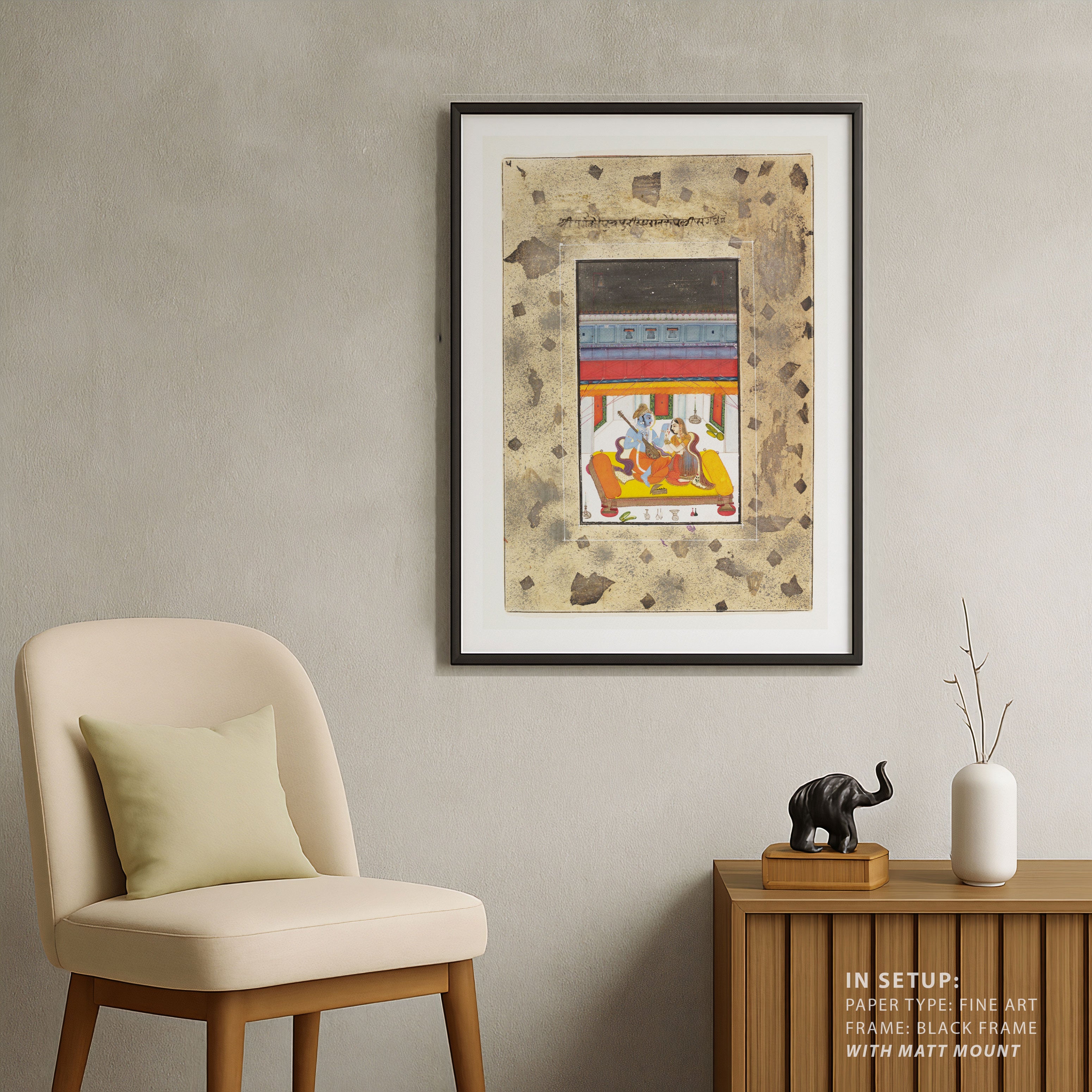 Bring elegance and cultural harmony into your space with this beautiful artwork, Puriya Ragaputra: Musical Raga Illustration, from our Classical Indian Art Collection. This timeless artwork features expressive figures, symbolic motifs, intricate detailing, and harmonious compositions inspired by India’s rich artistic traditions. Perfect for traditional, heritage, eclectic, and contemporary interiors, Indian folk and classical wall art adds depth, warmth, and a sense of history and storytelling to every interior.